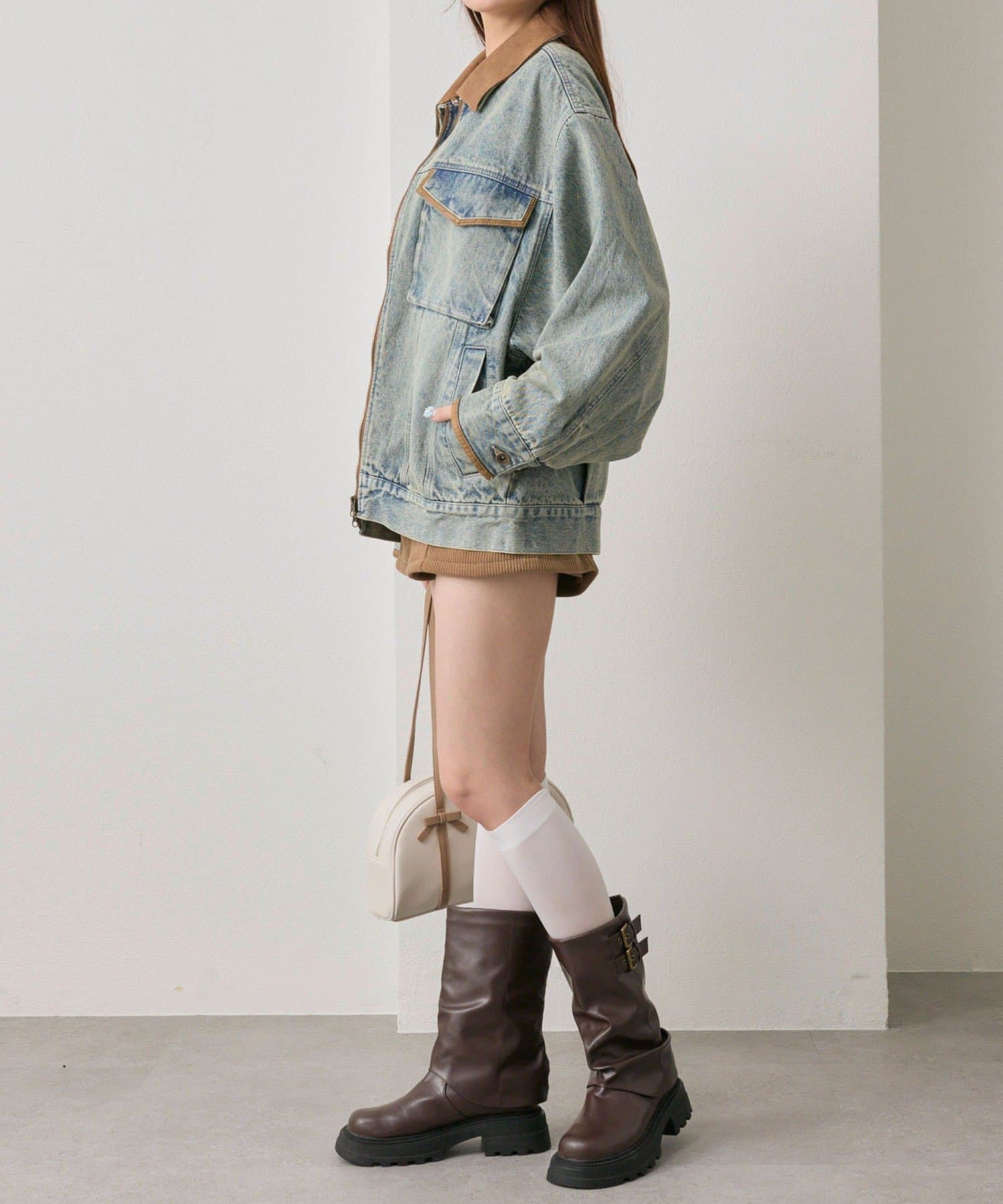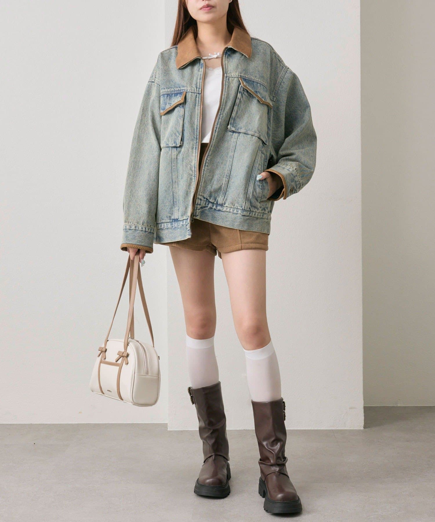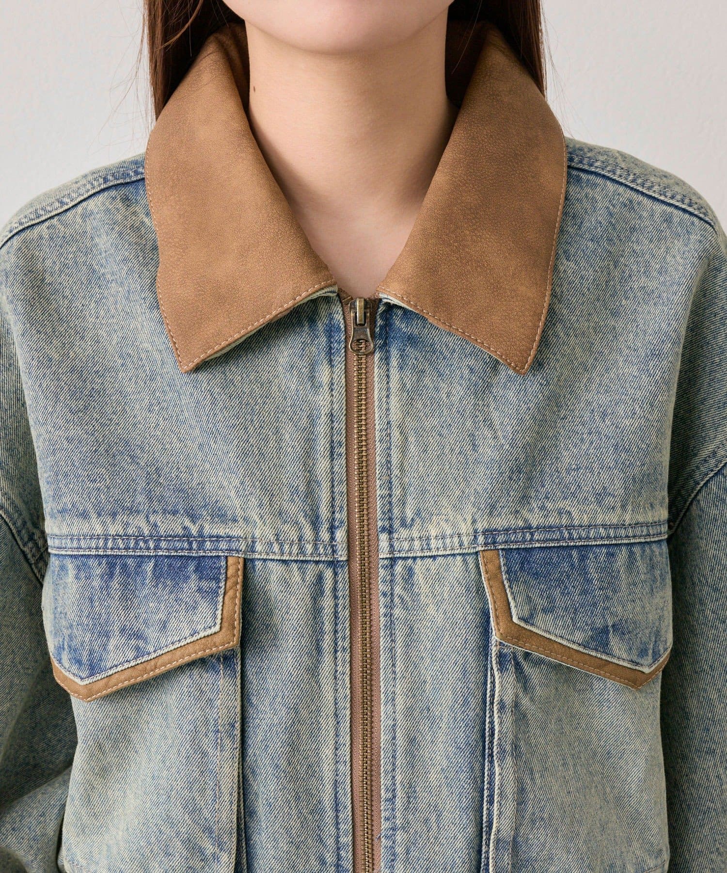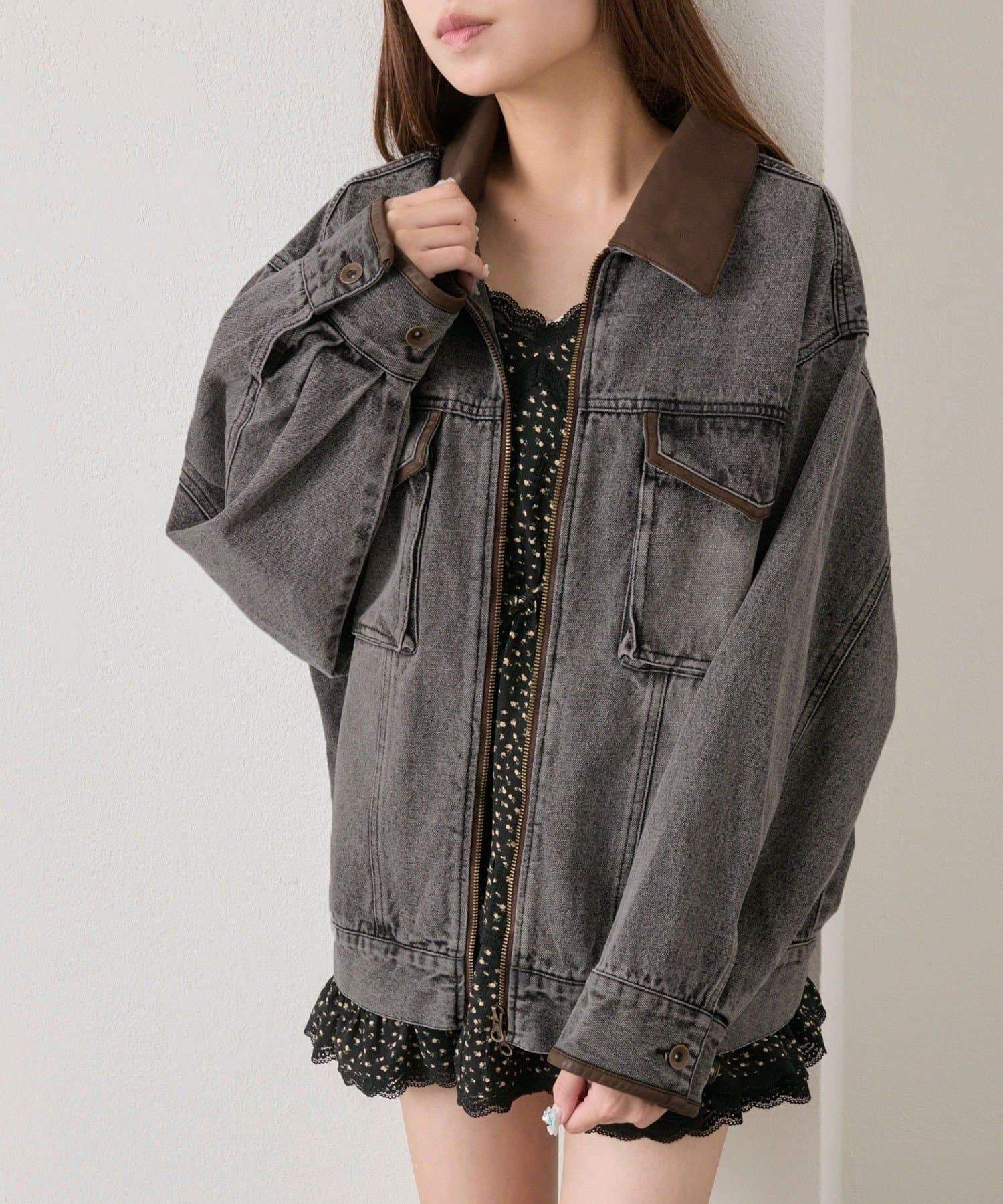 OLIVE des OLIVE(オリーブ デ オリーブ) 配色衿デニムブルゾン