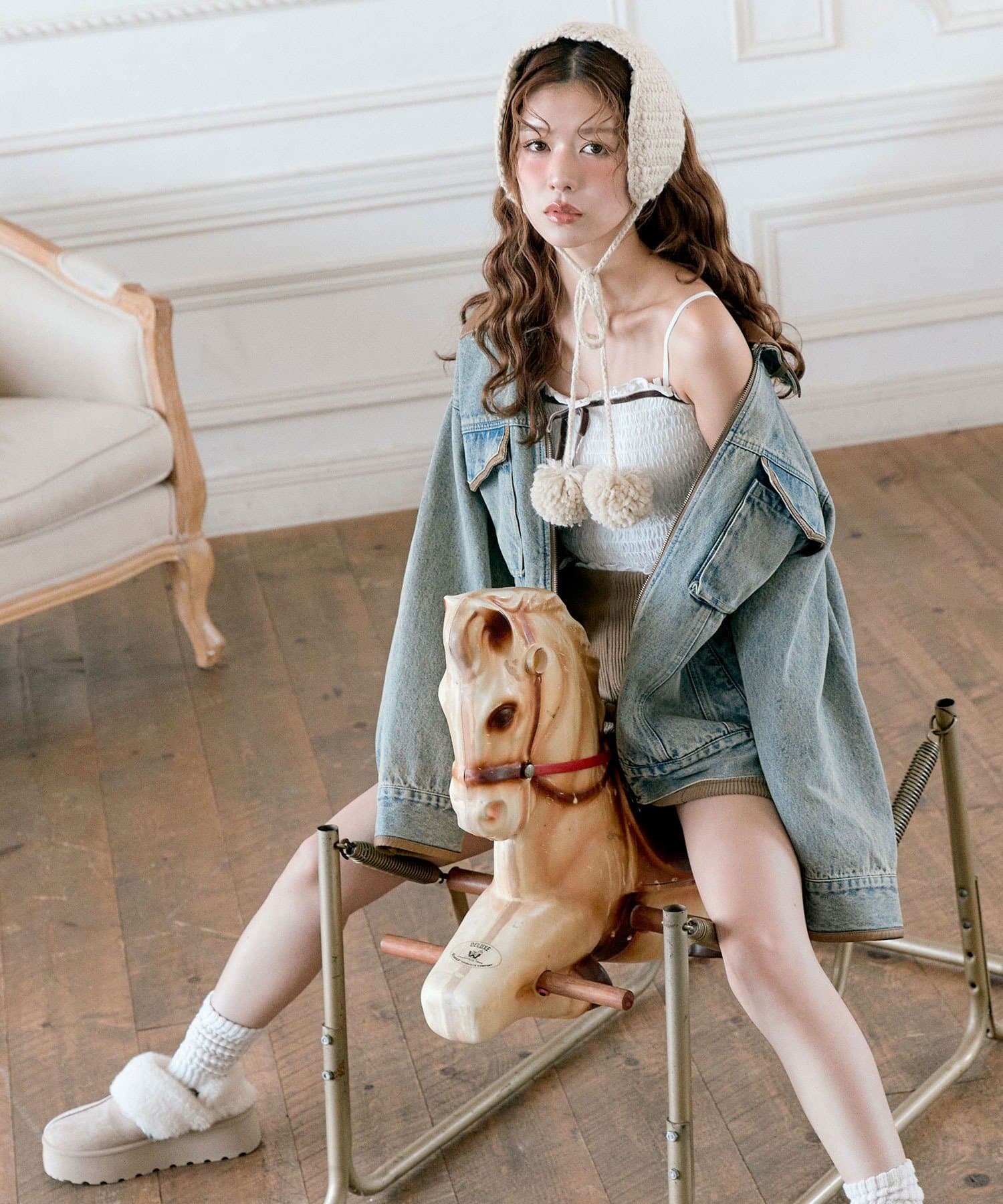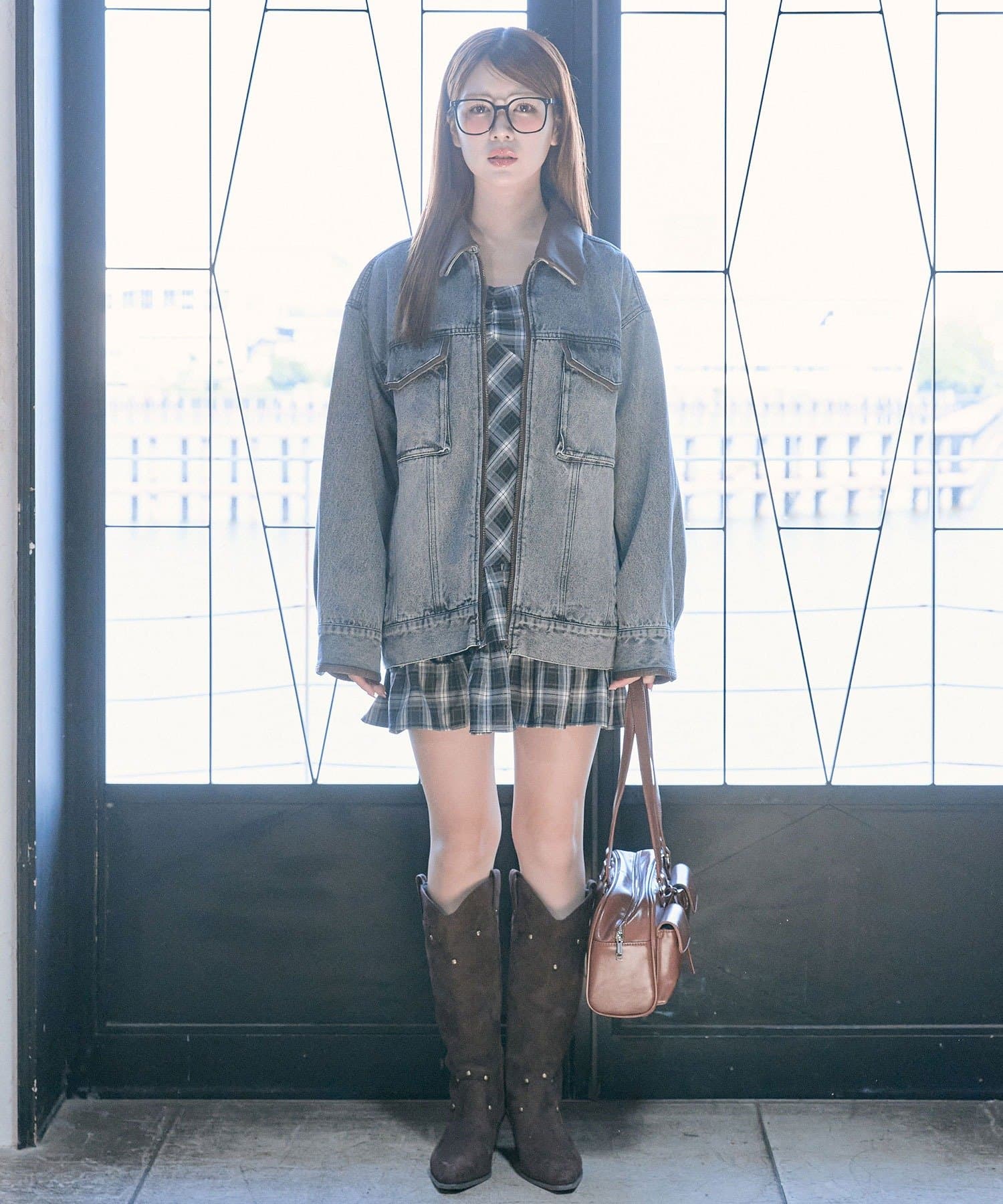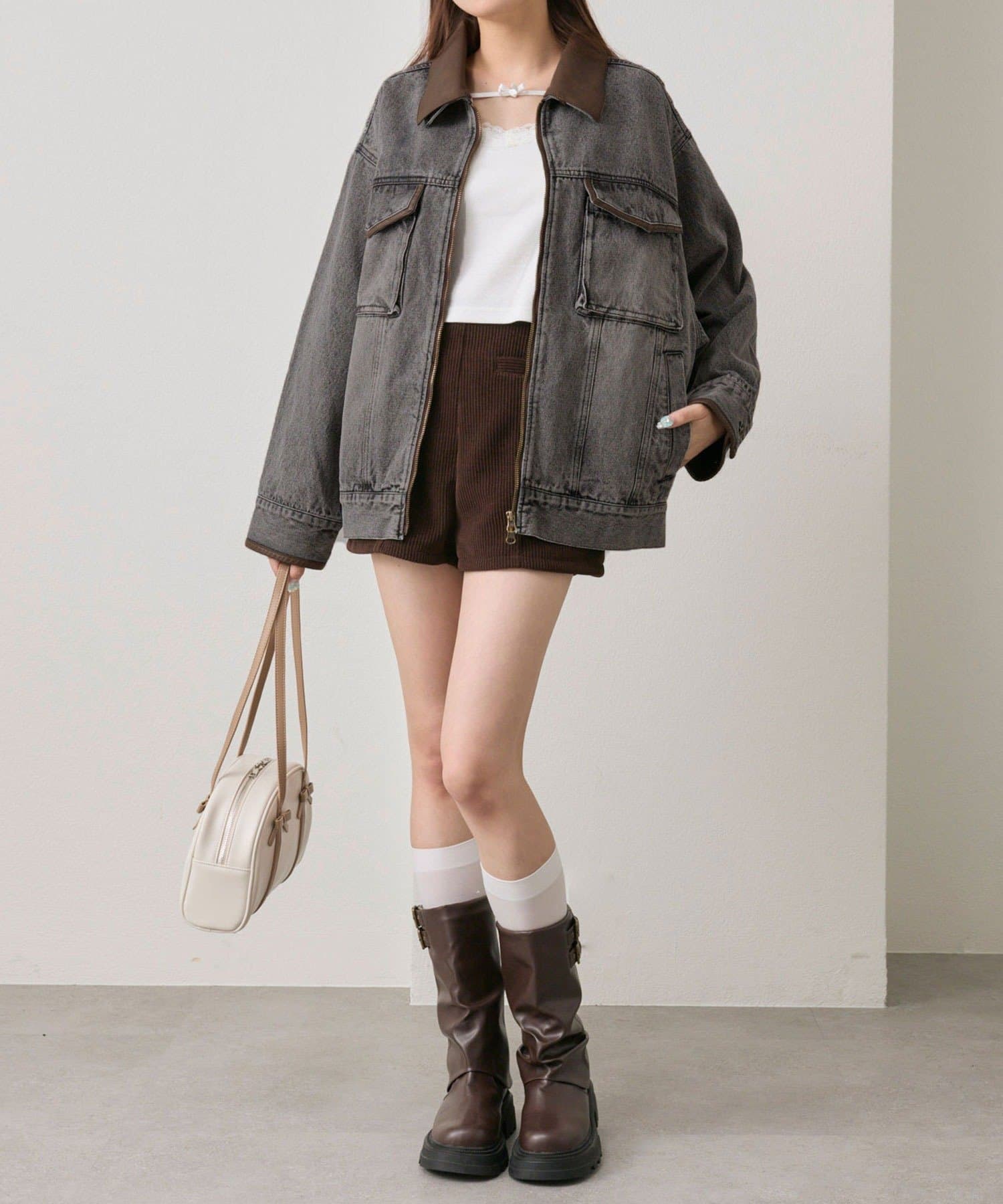 ・ミニボトム+カップ付きインナーにさらっと羽織ると、抜け感のあるカジュアルコーデに。