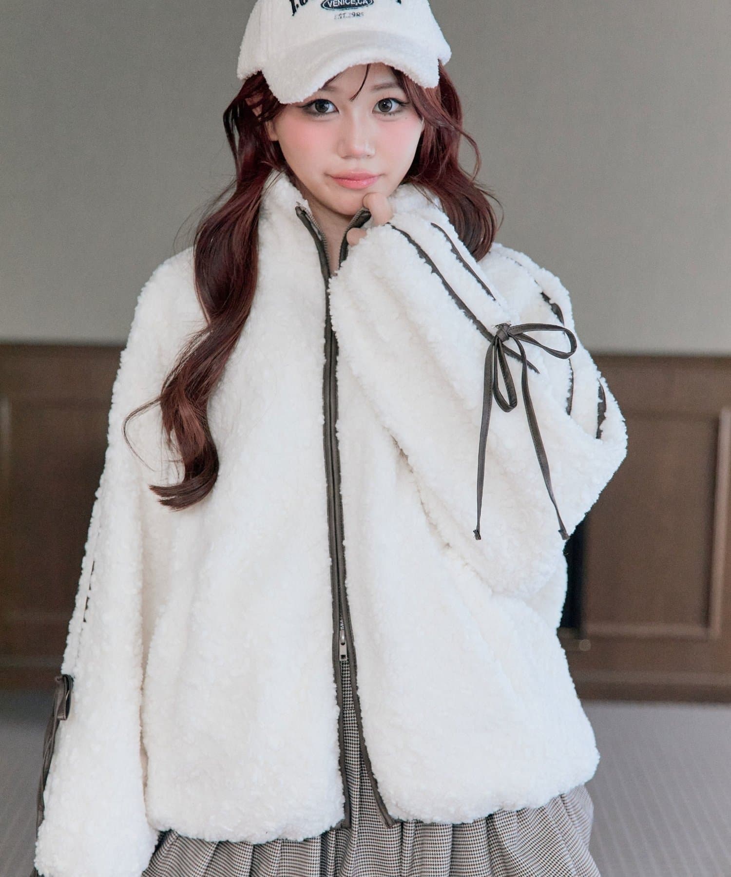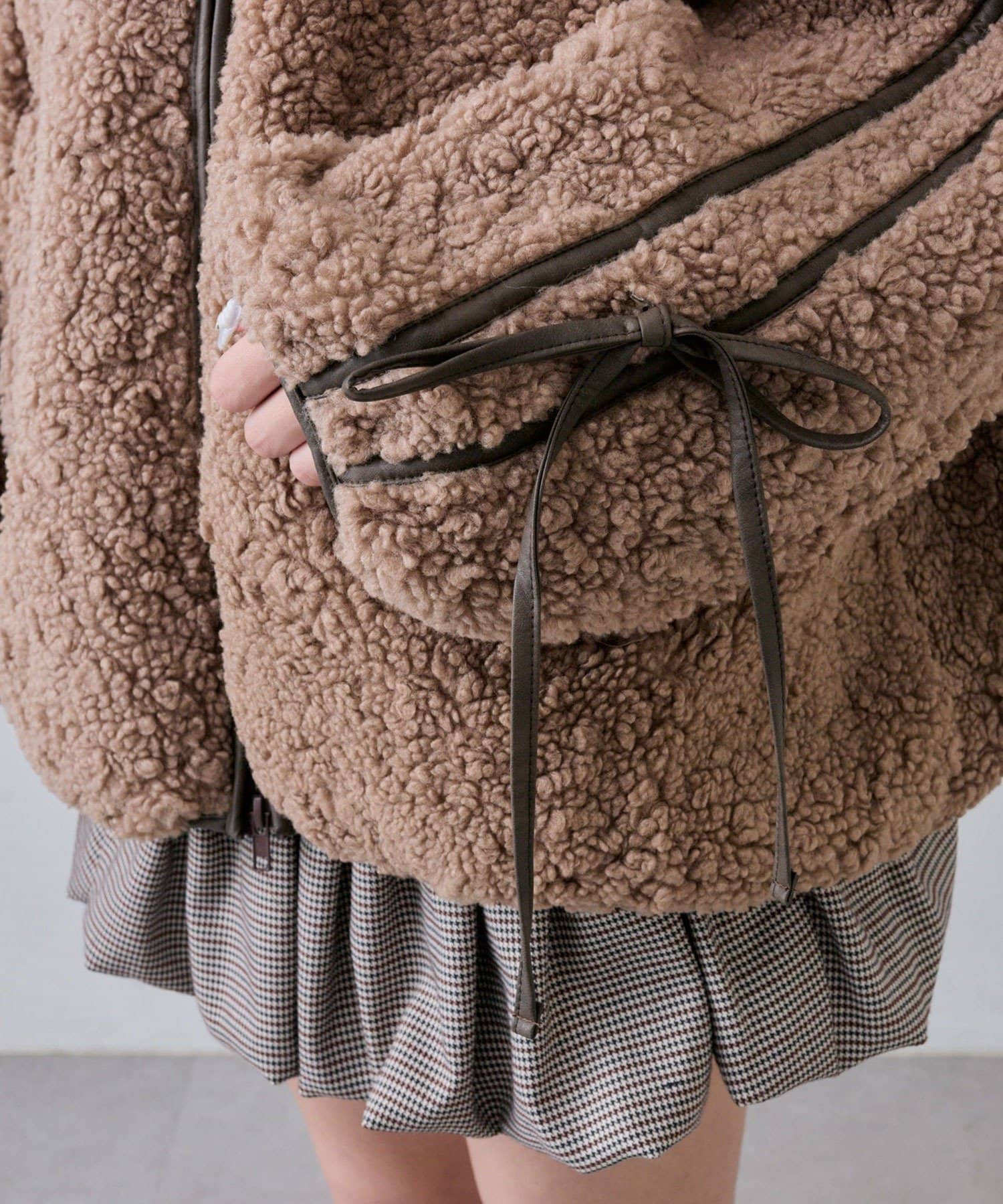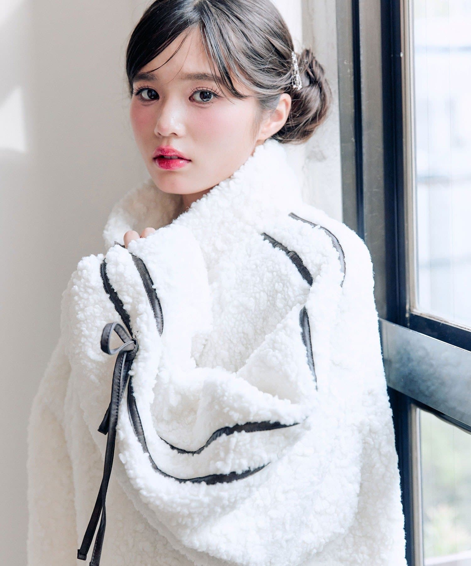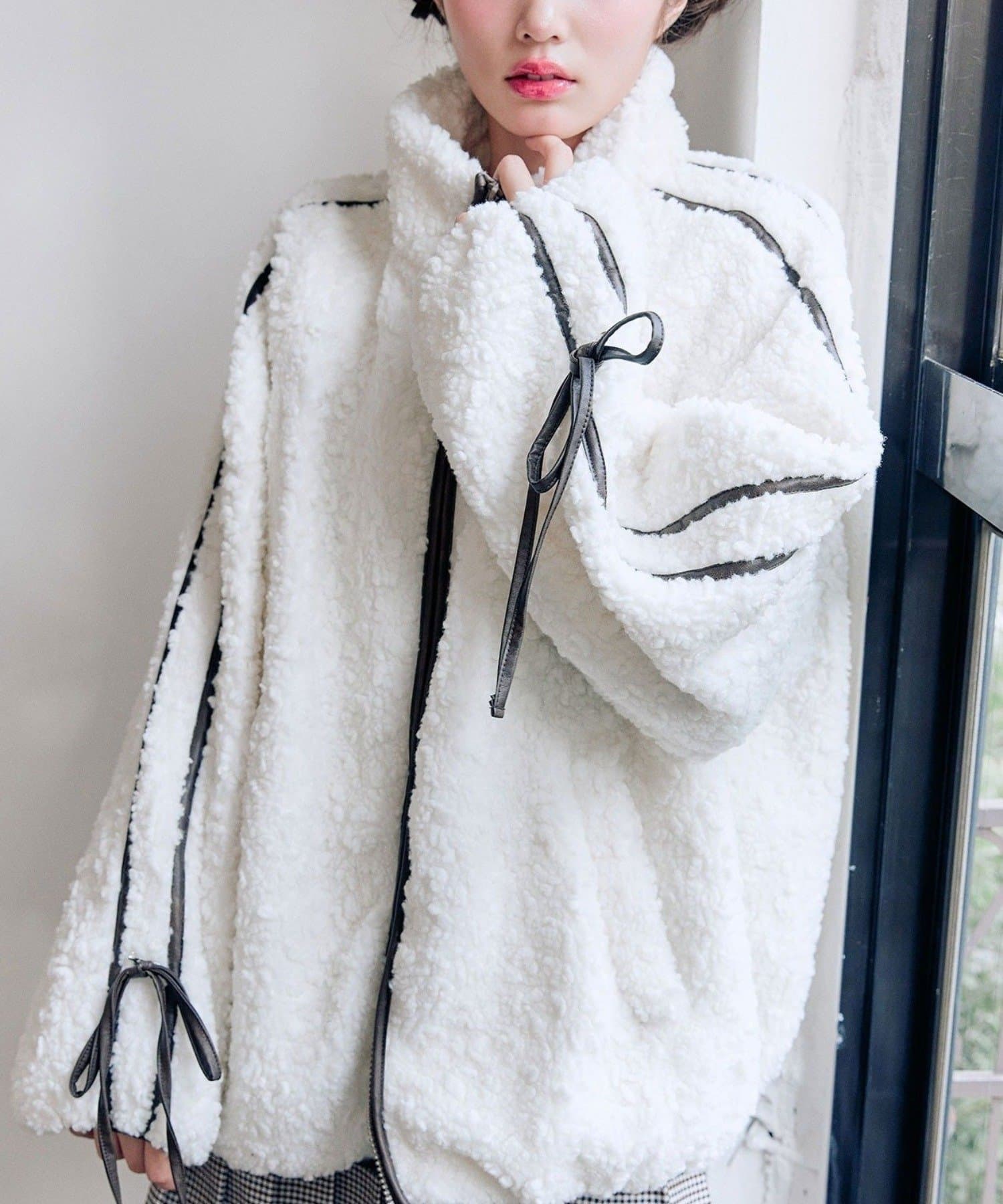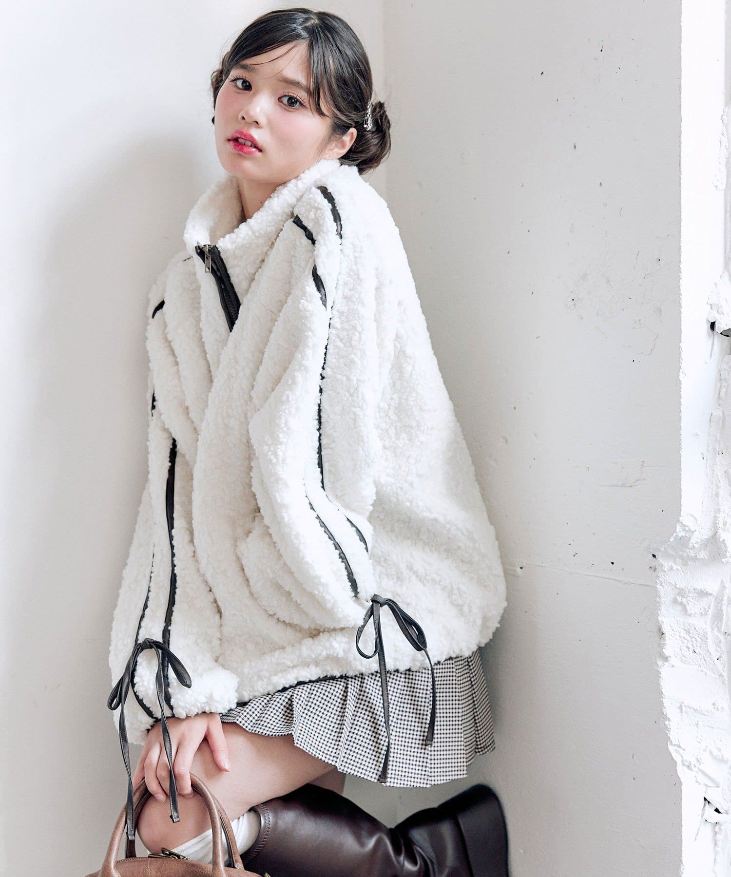 ・ふわふわボアに合皮のパイピングがポイントの、存在感たっぷりなデザイン。