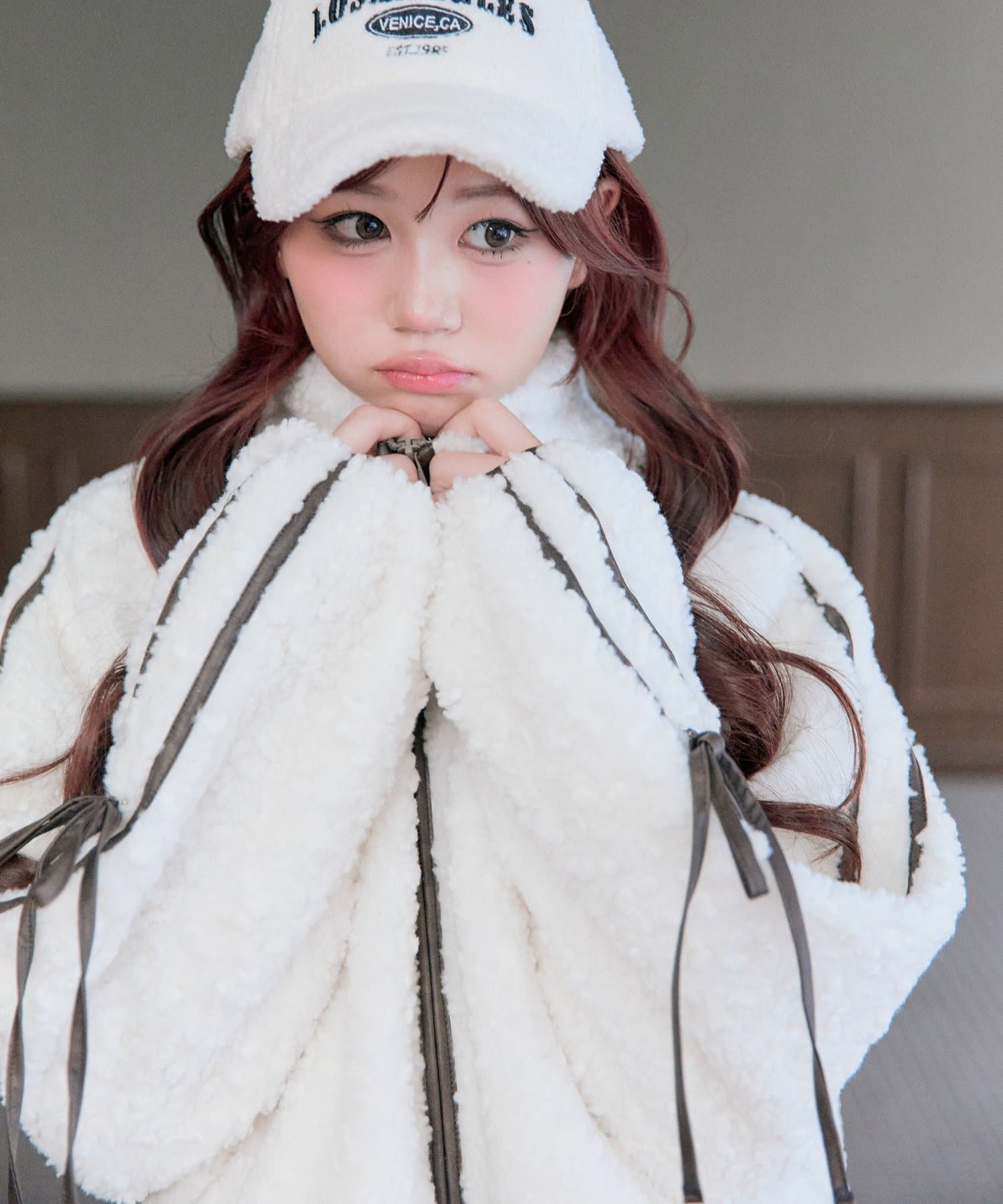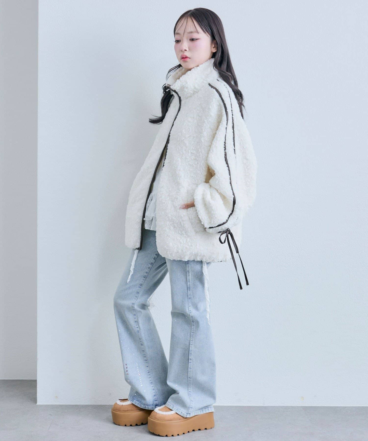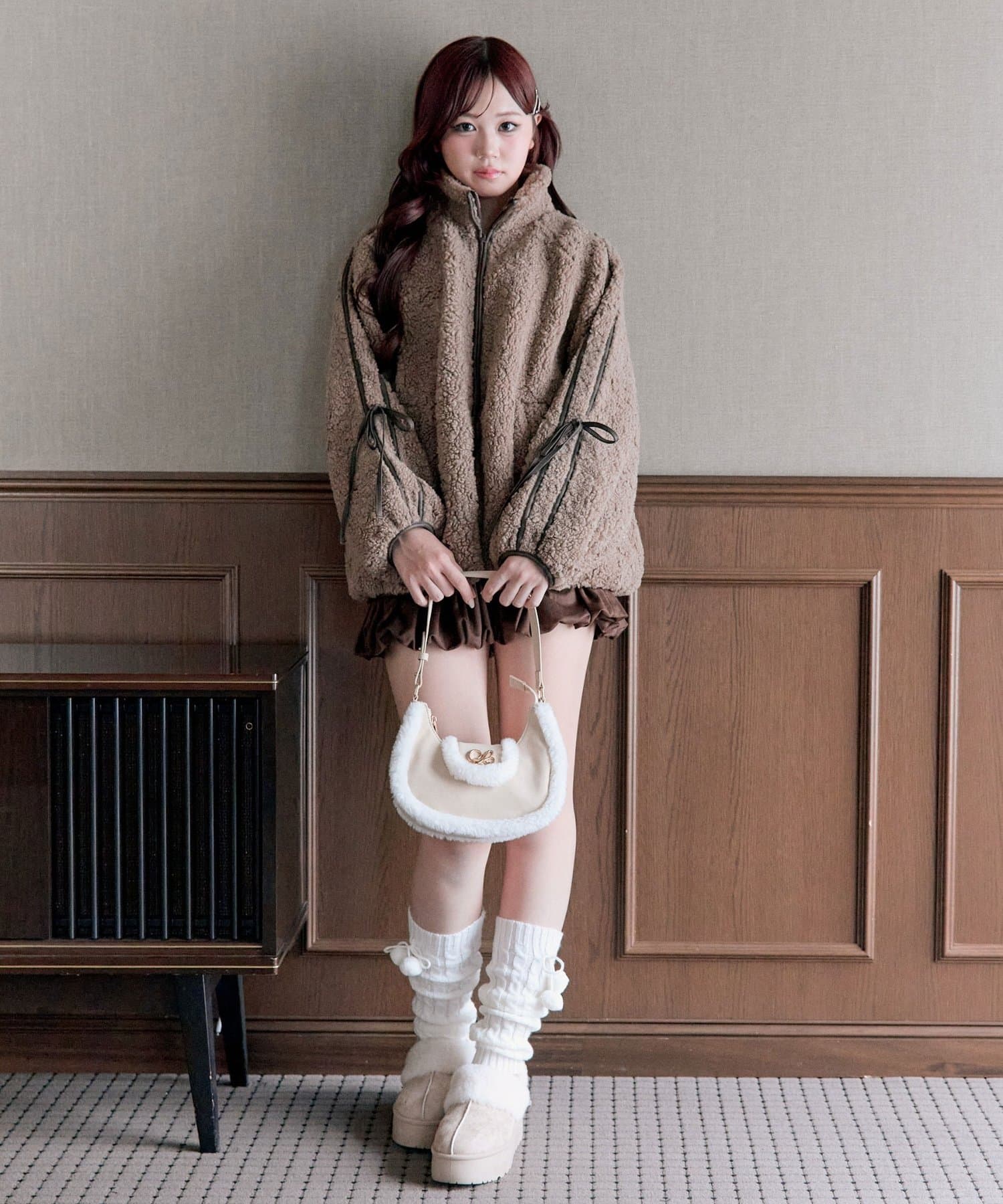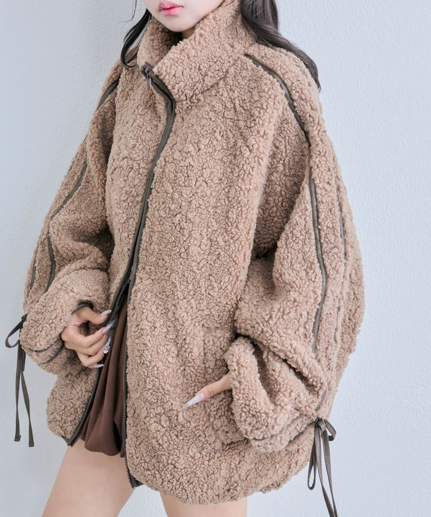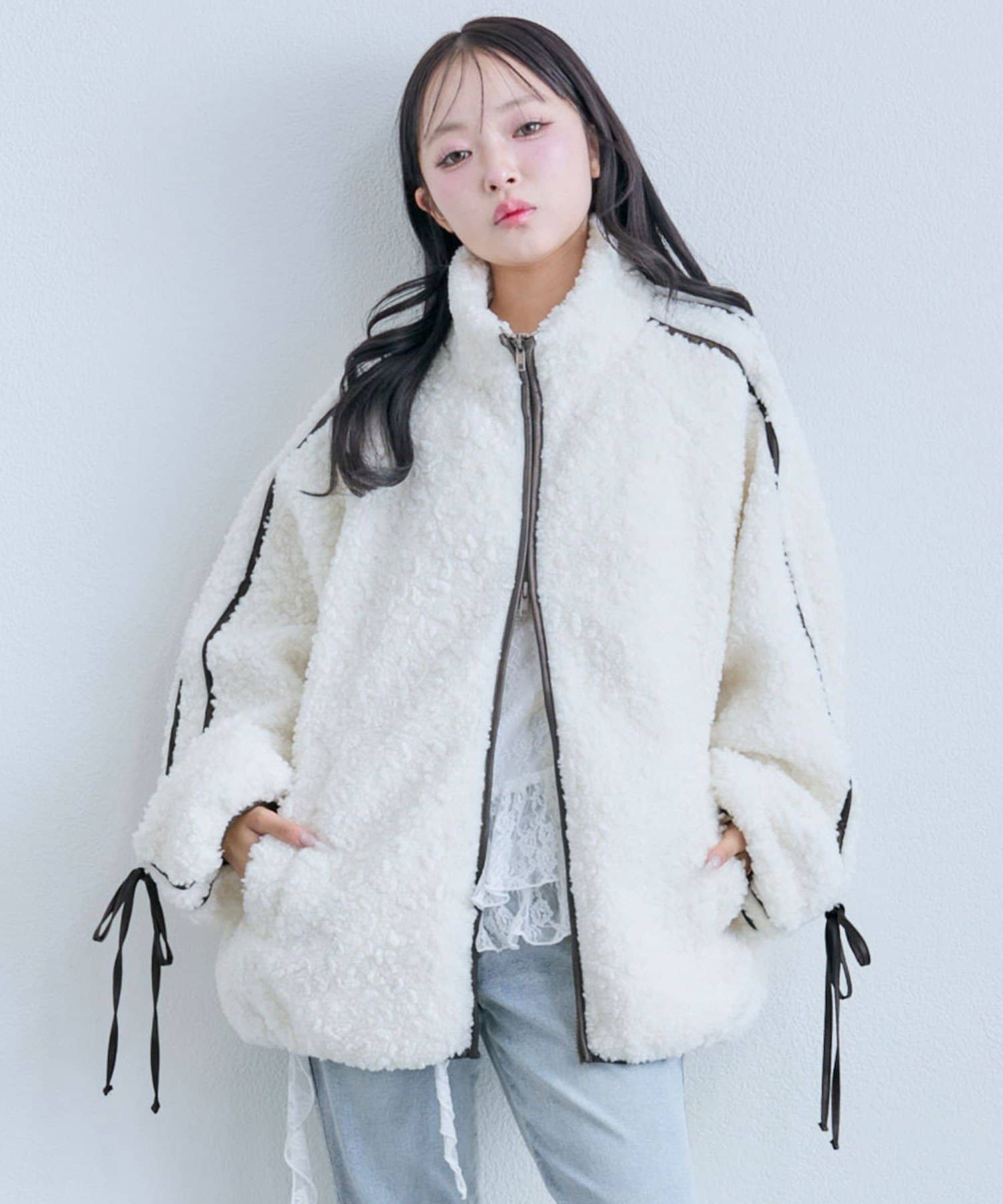 ・ふわふわボアに合皮のパイピングがポイントの、存在感たっぷりなデザイン。