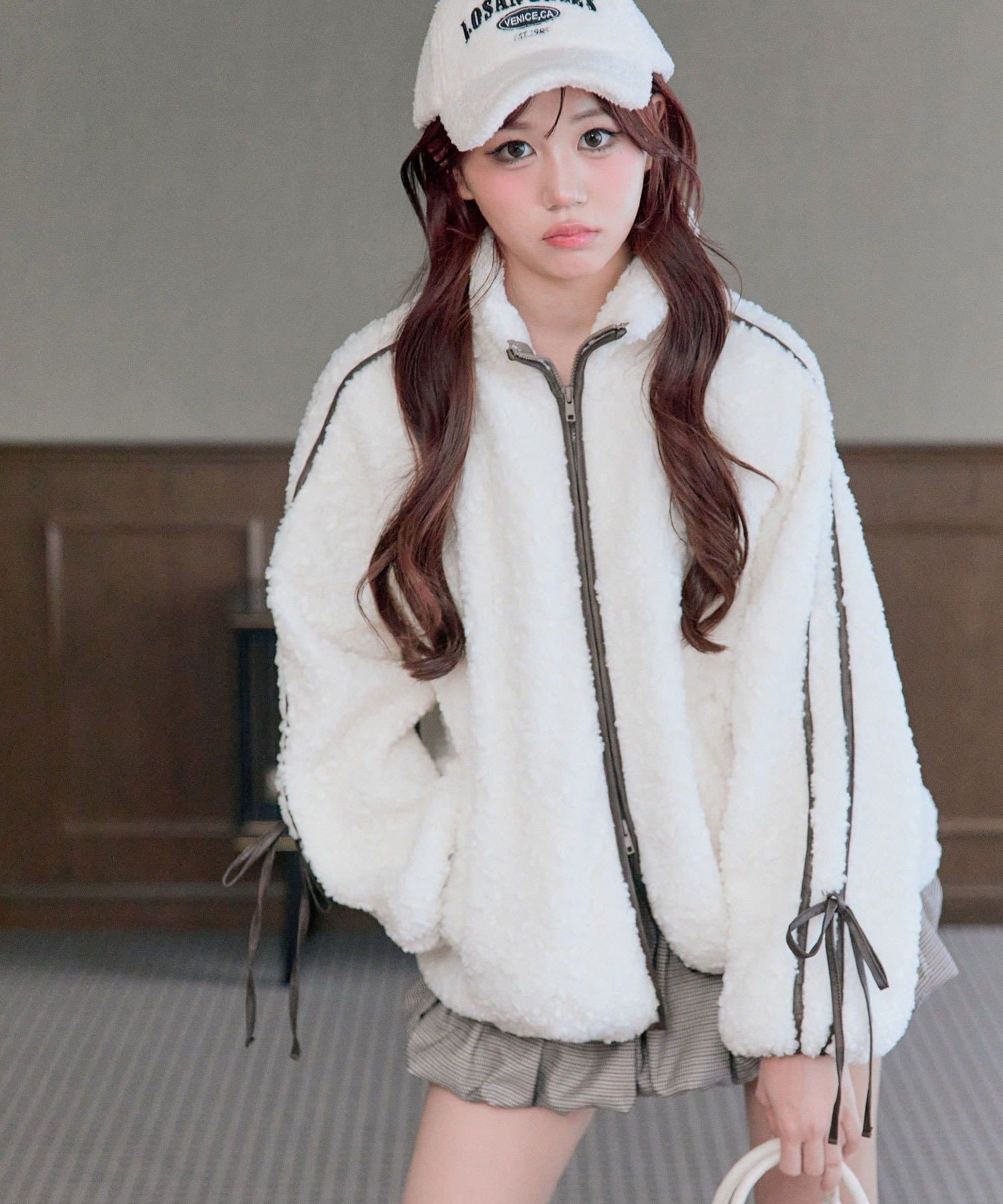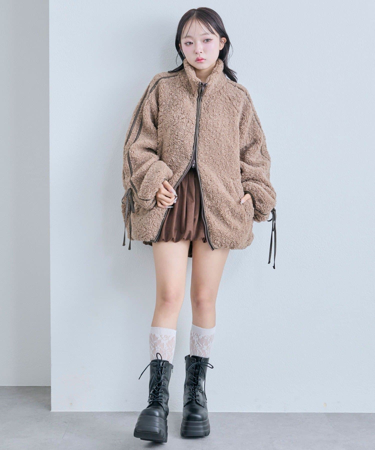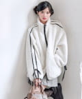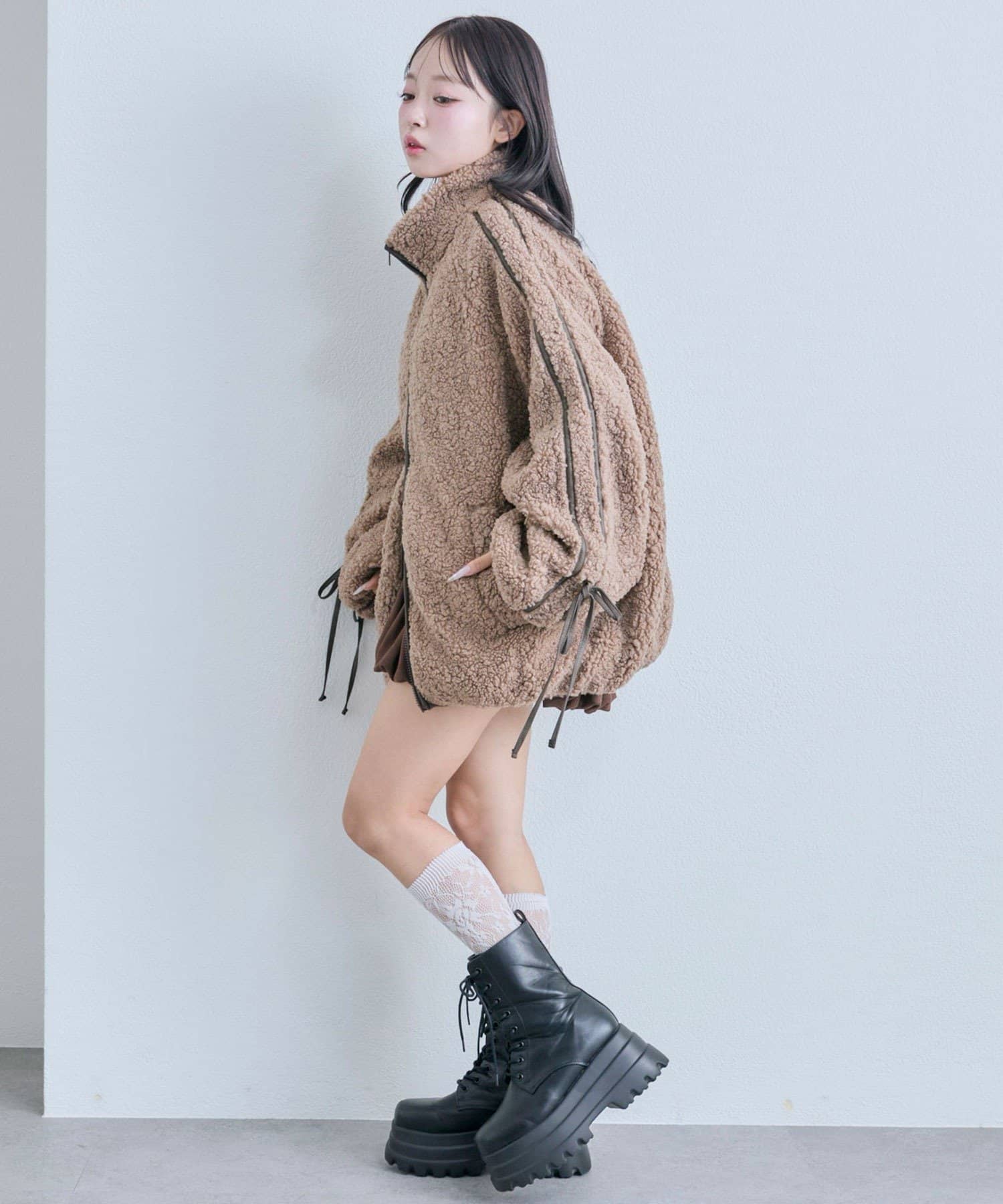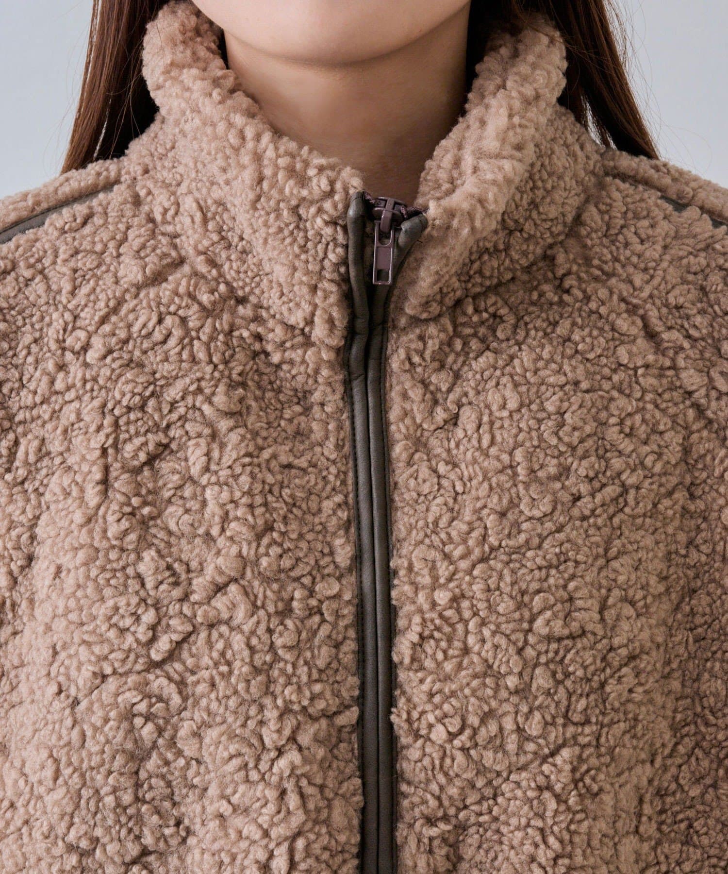 ・ふわふわボアに合皮のパイピングがポイントの、存在感たっぷりなデザイン。