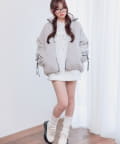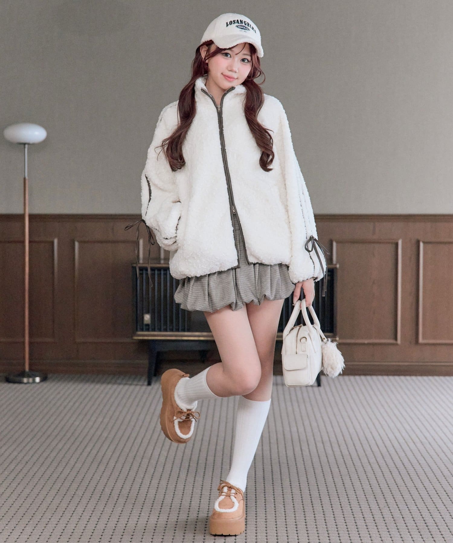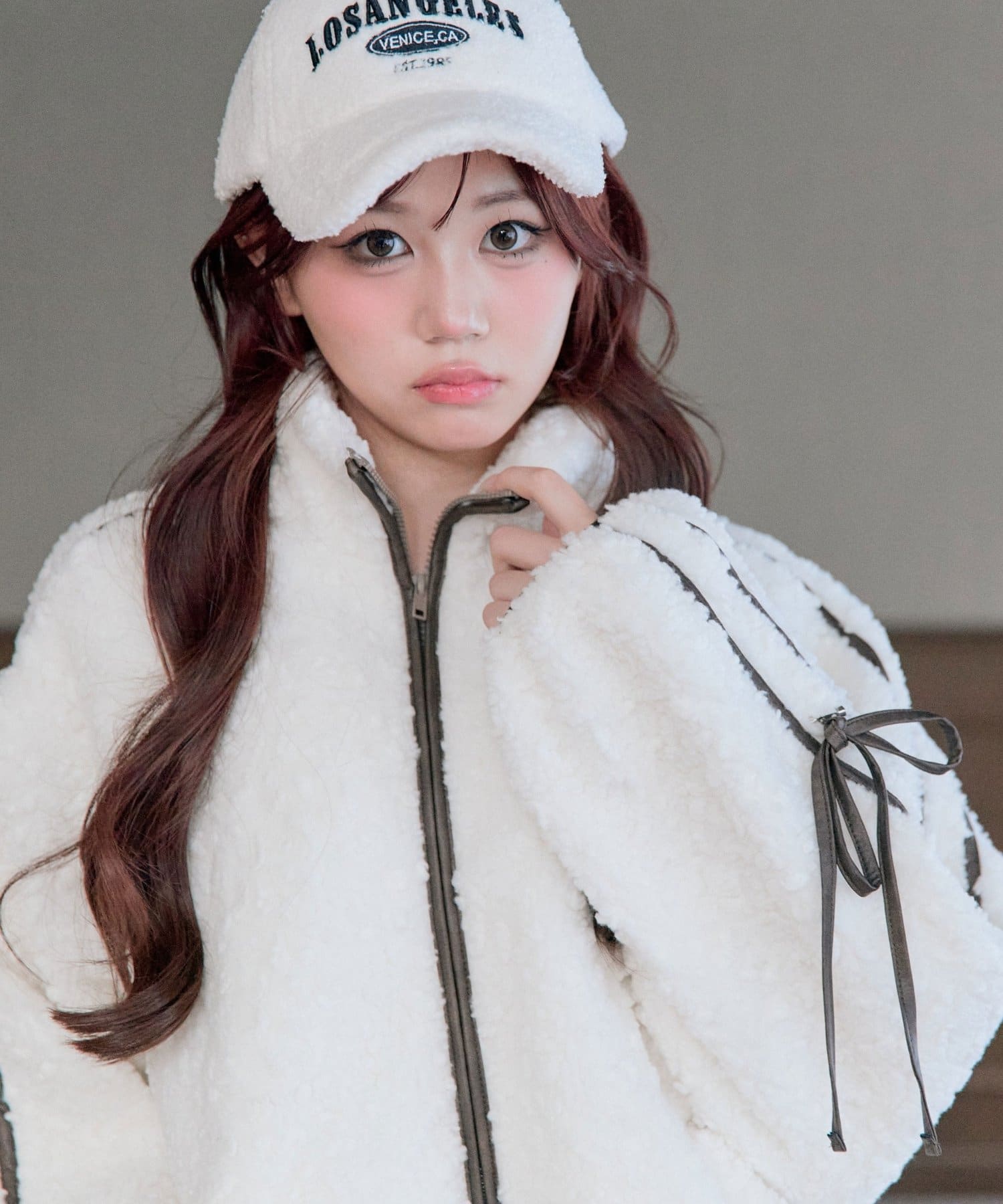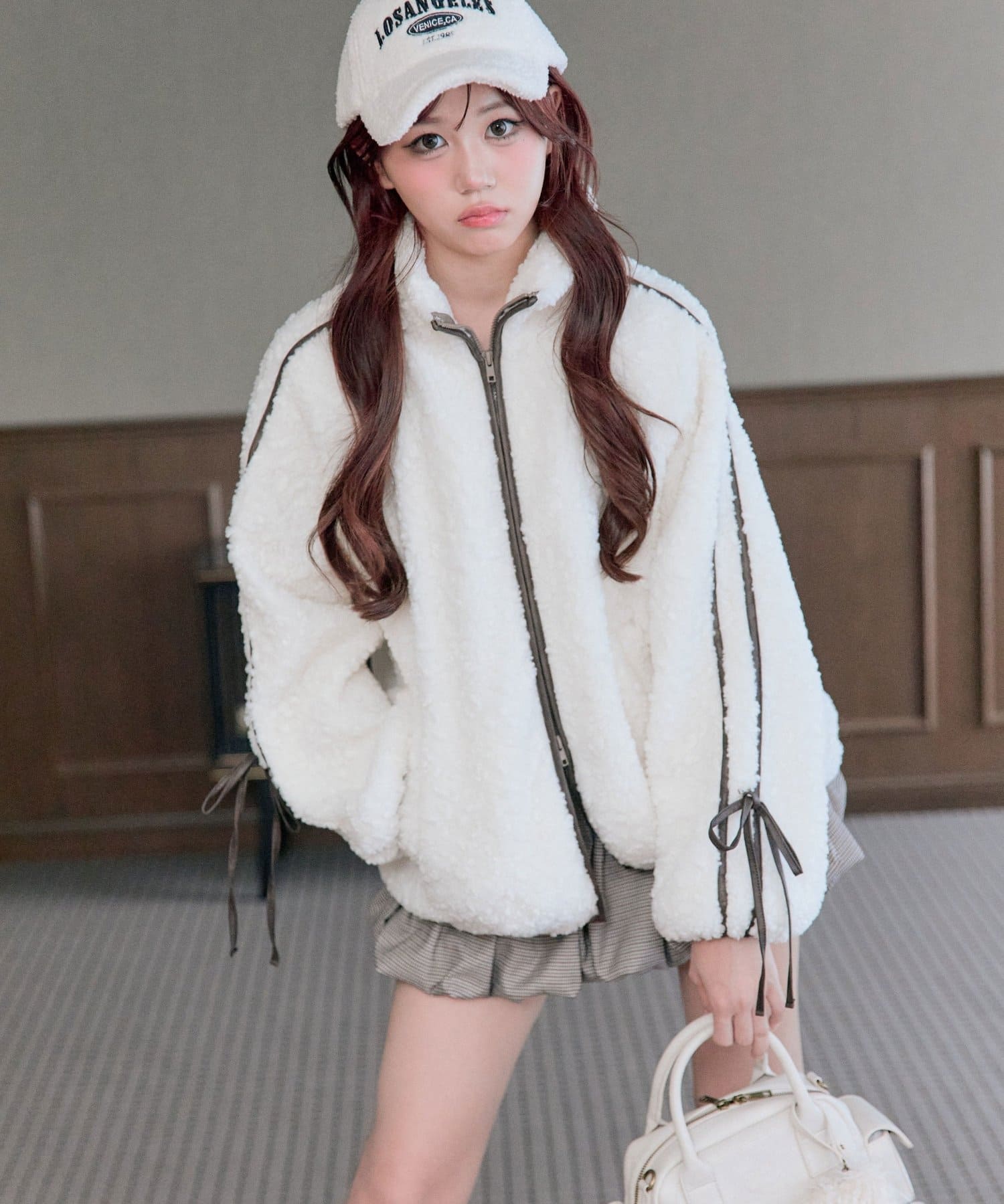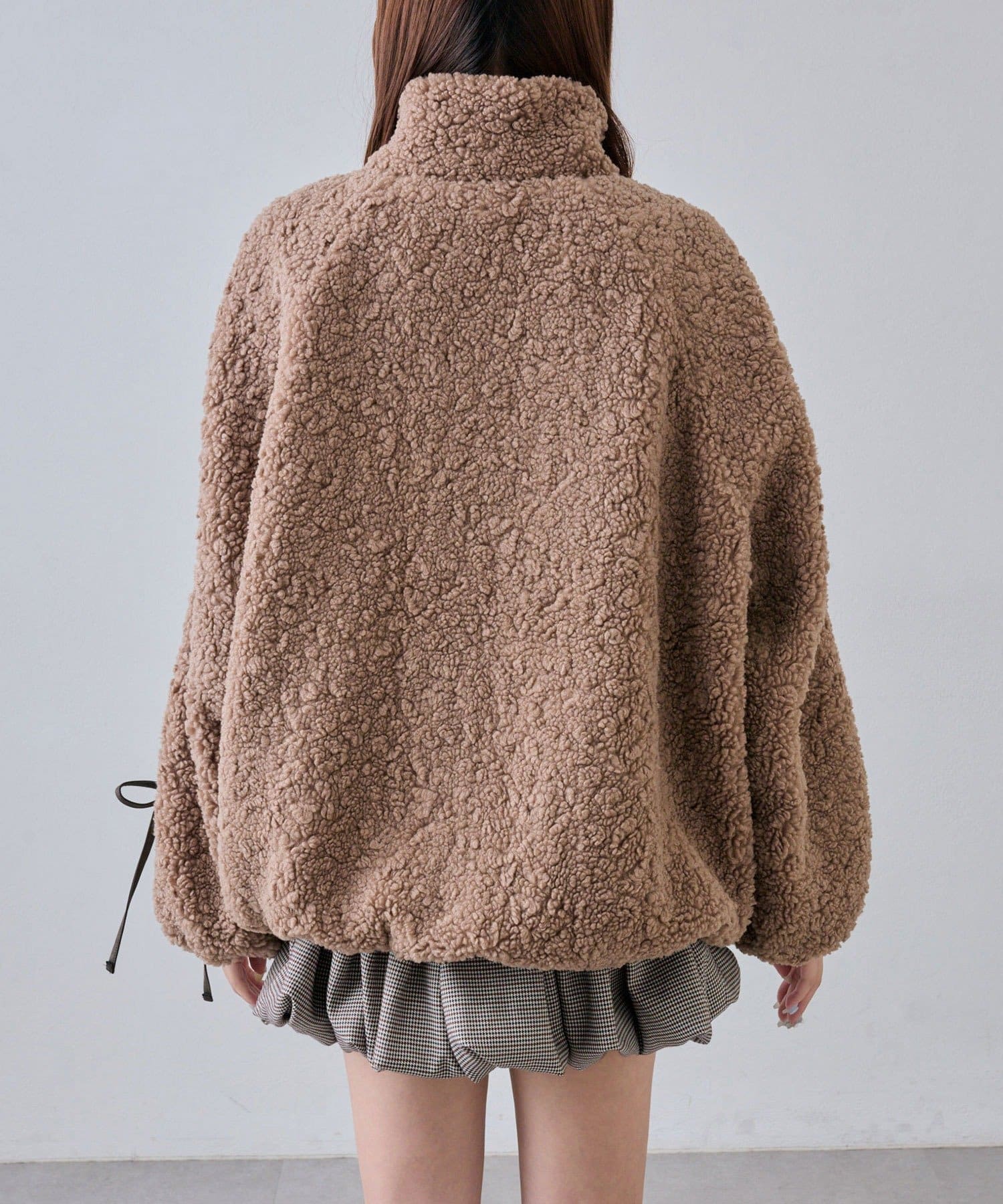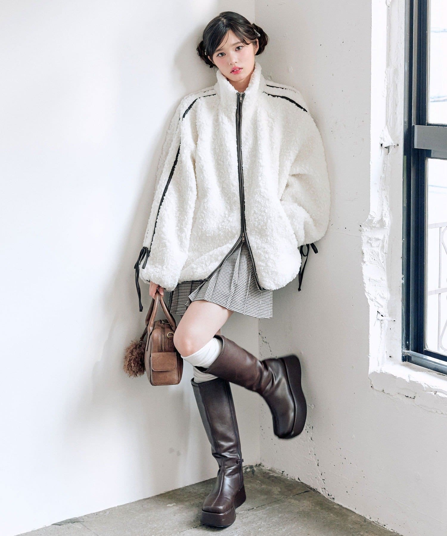 ・ふわふわボアに合皮のパイピングがポイントの、存在感たっぷりなデザイン。