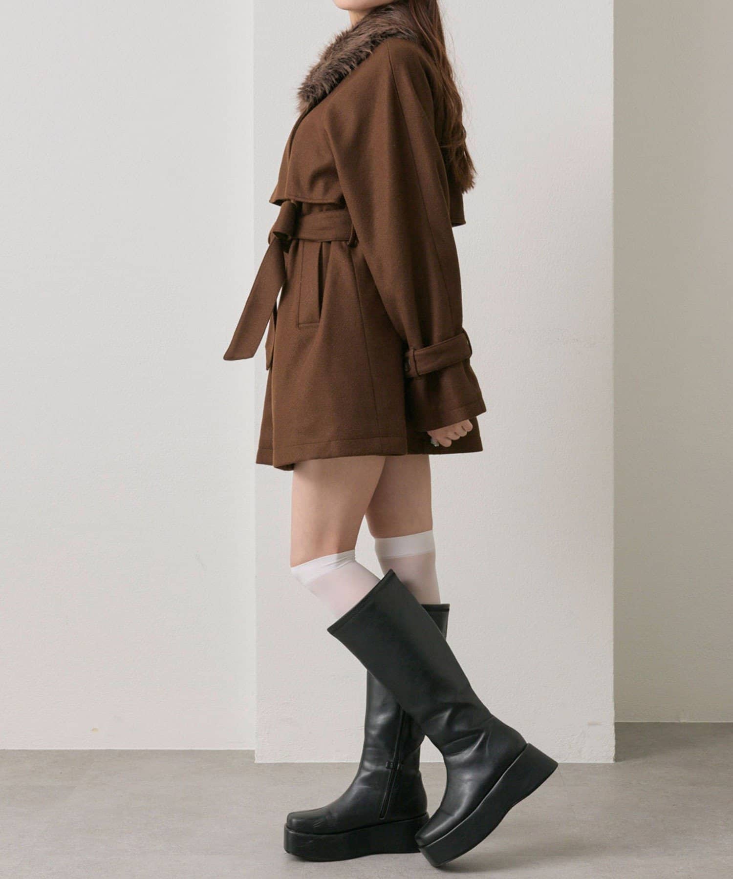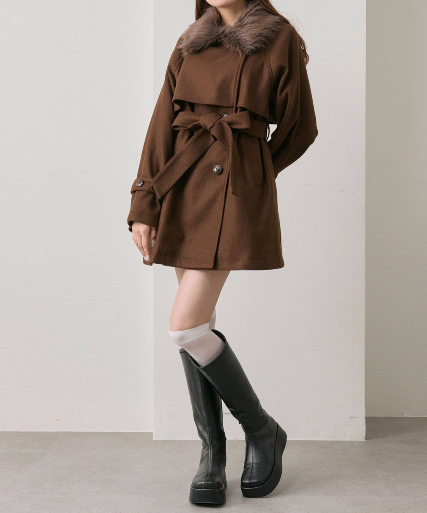 ふわふわのファーが大人かわいいミドル丈コート