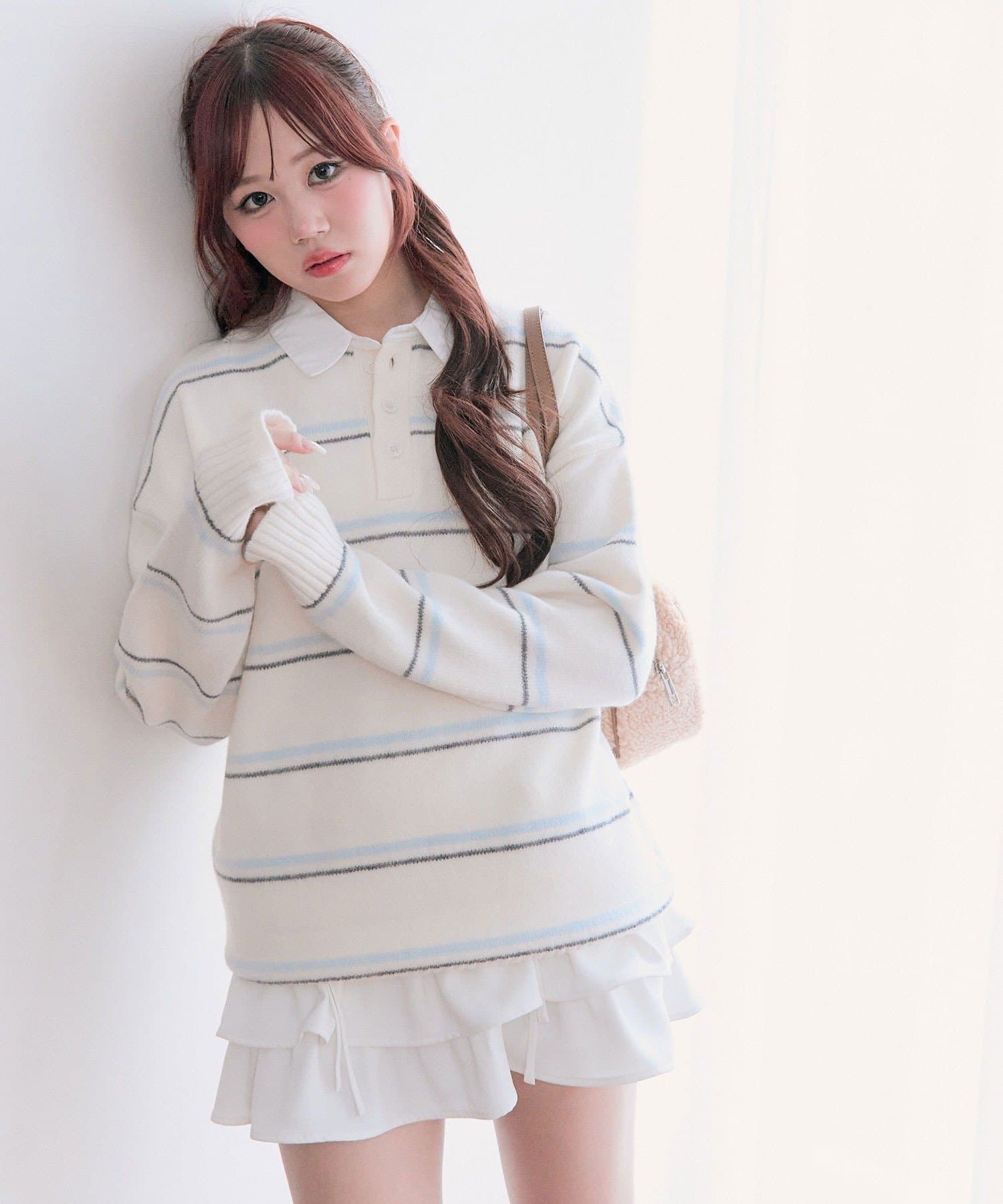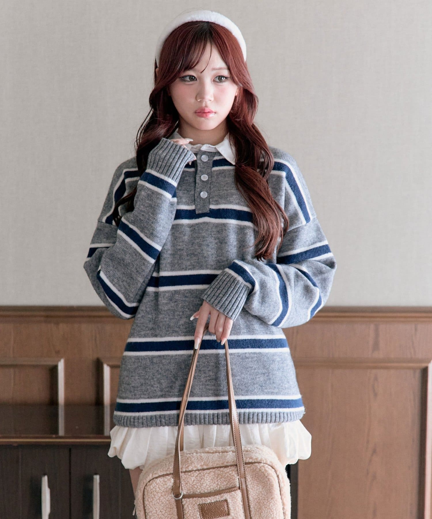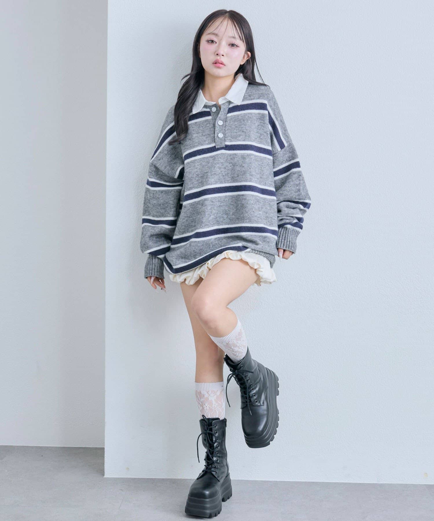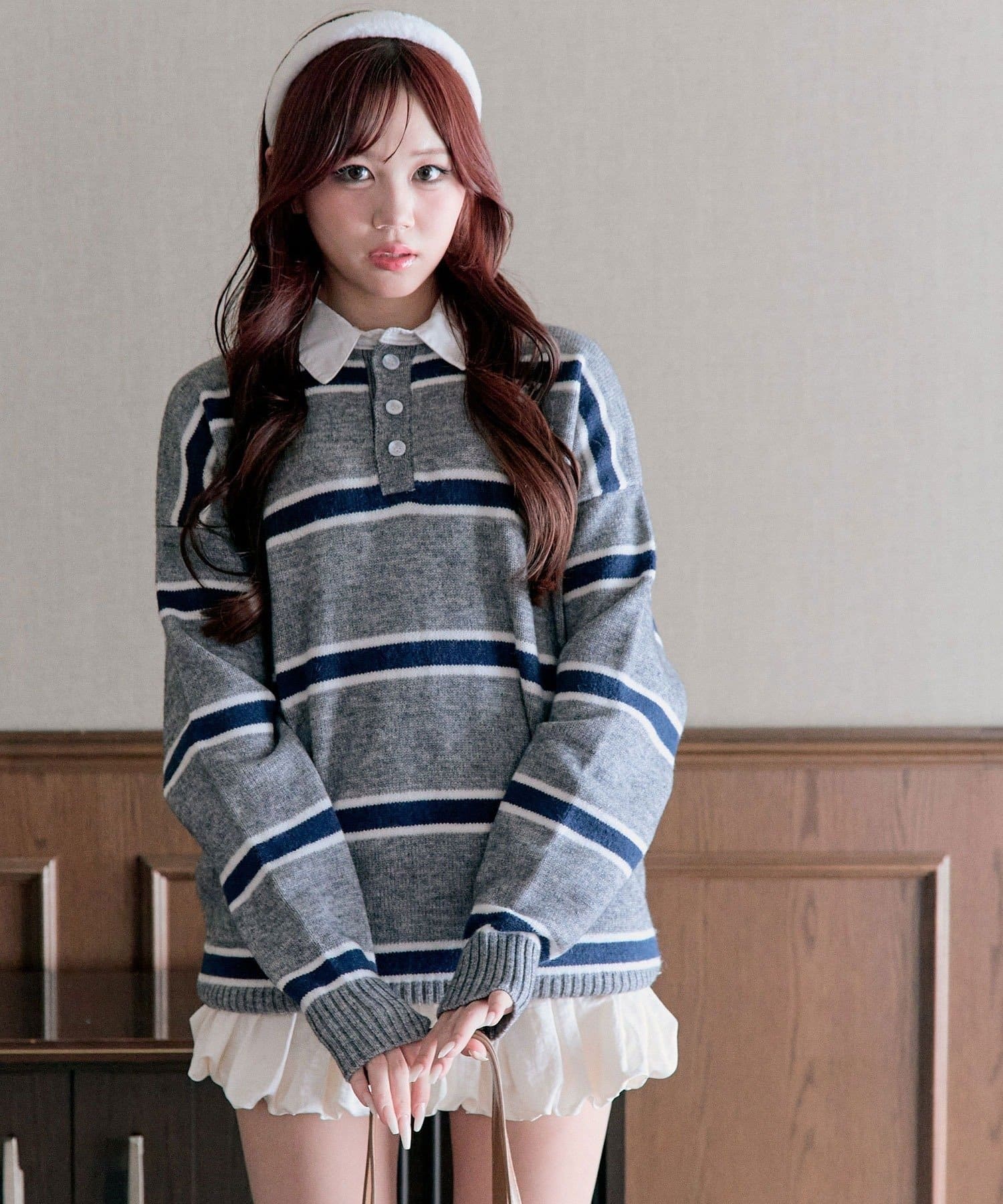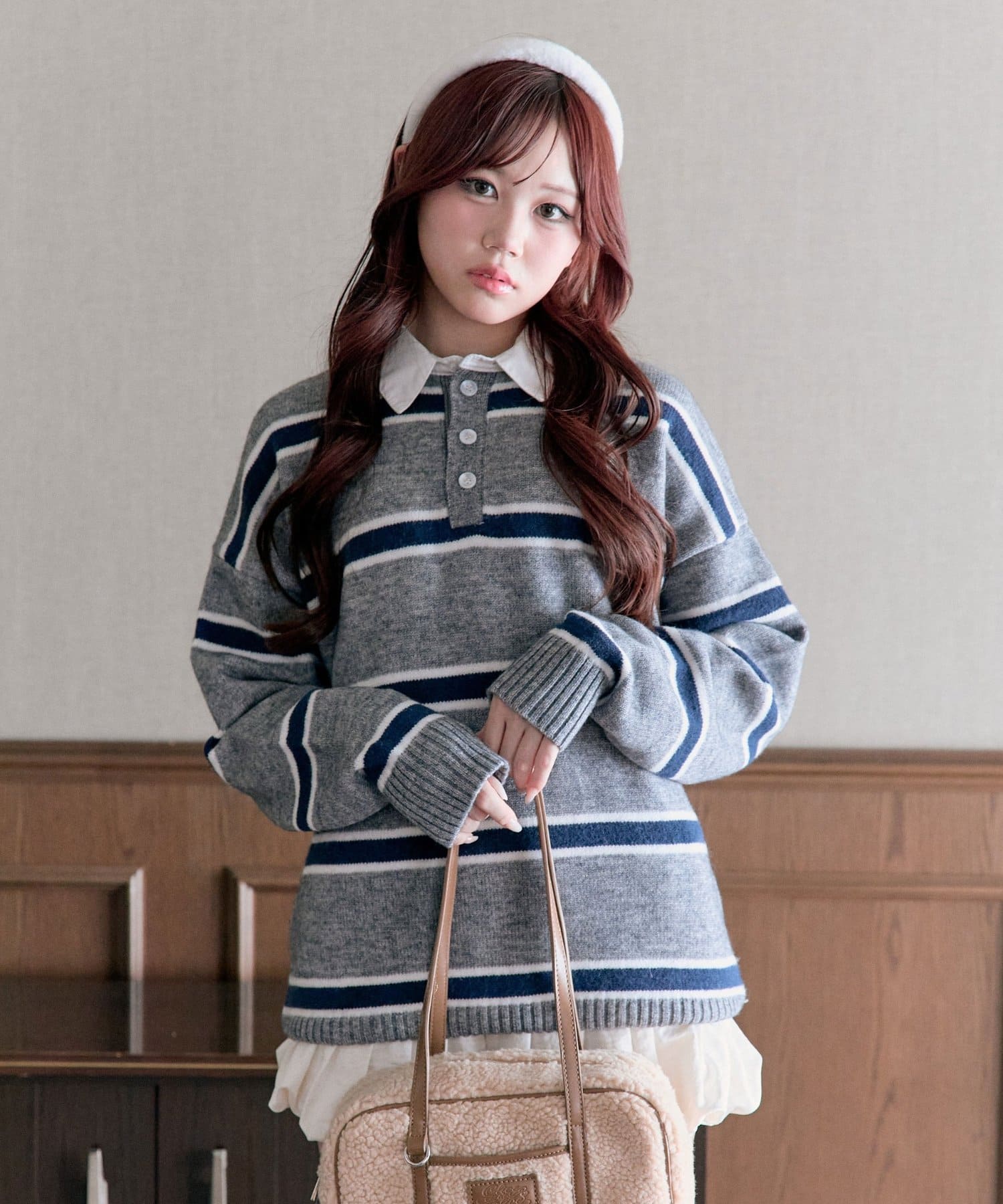 ・ラガーシャツ風のデザインに、柔らかなニット素材を掛け合わせたトレンドアイテム。