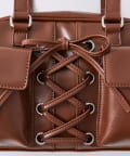 ・フロントにあしらわれたレースアップが、ガーリーでかわいらしいアクセントになるデザイン。