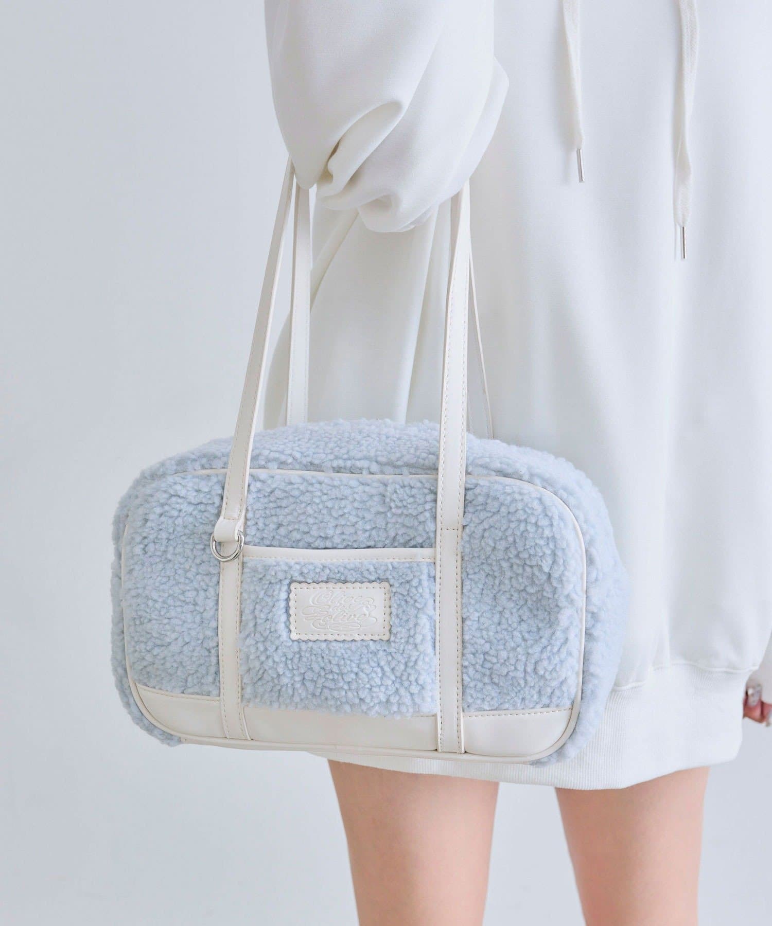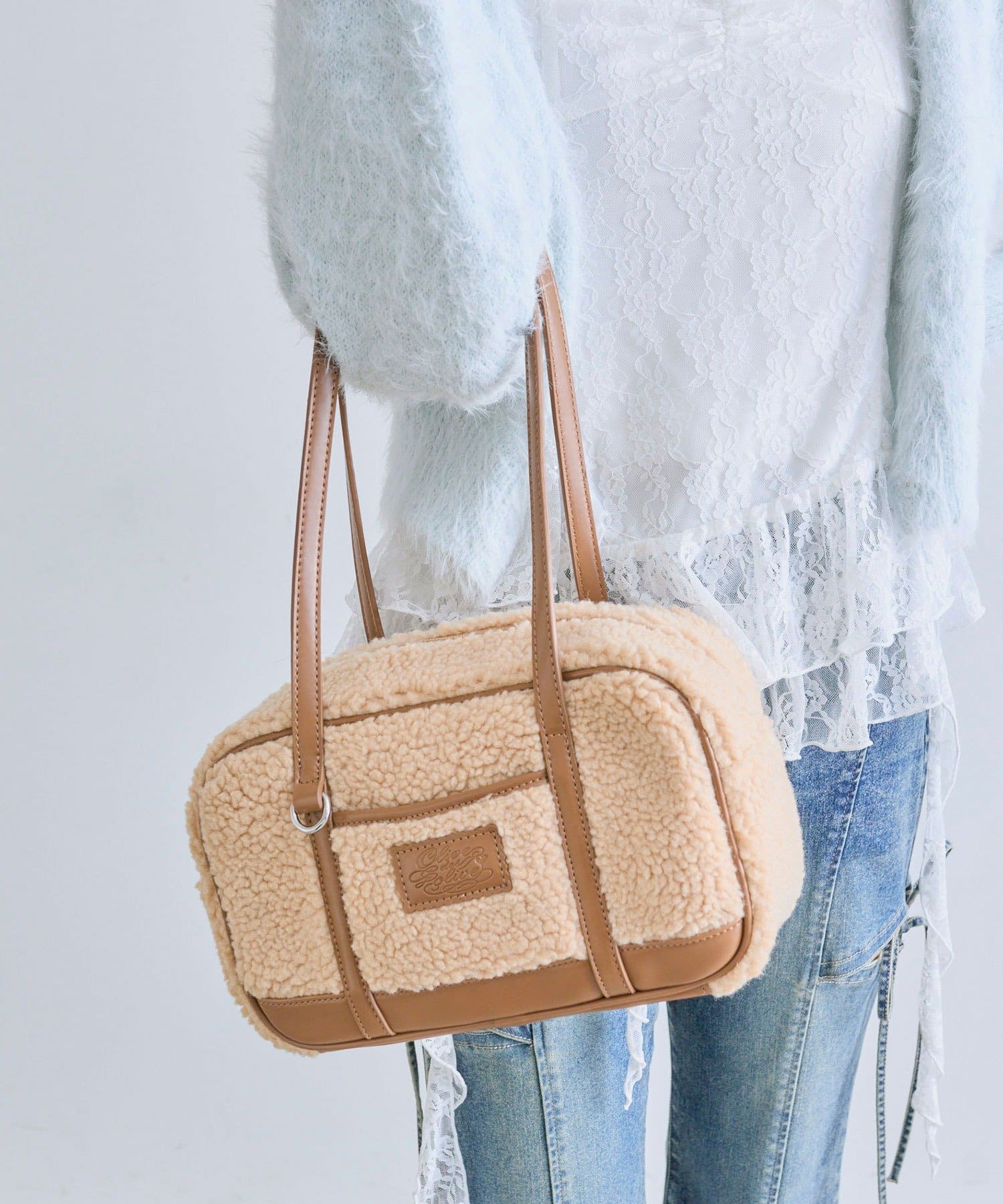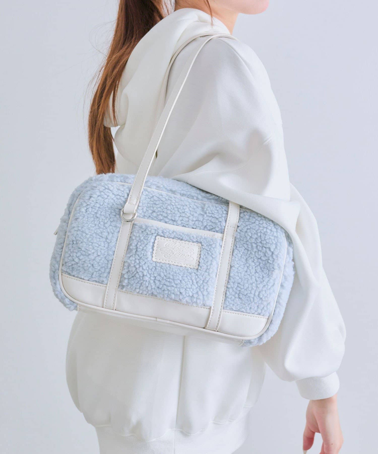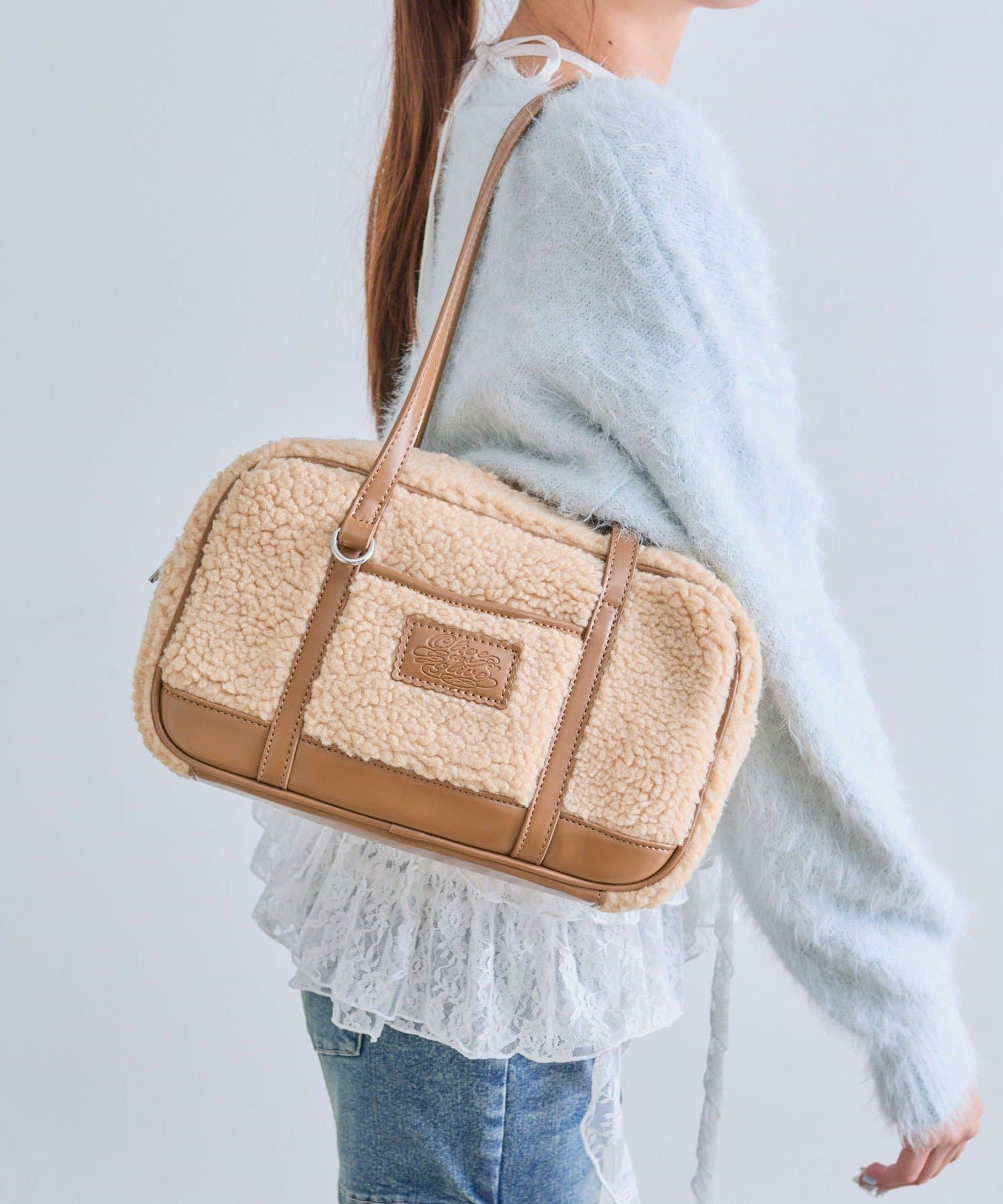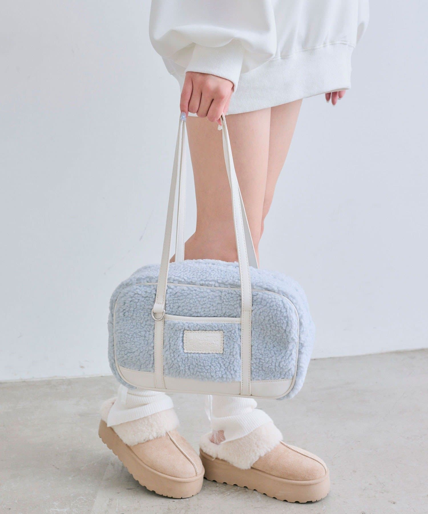 ・もこもこのボア素材が冬らしく、持つだけで季節感の出るボストンバッグ。