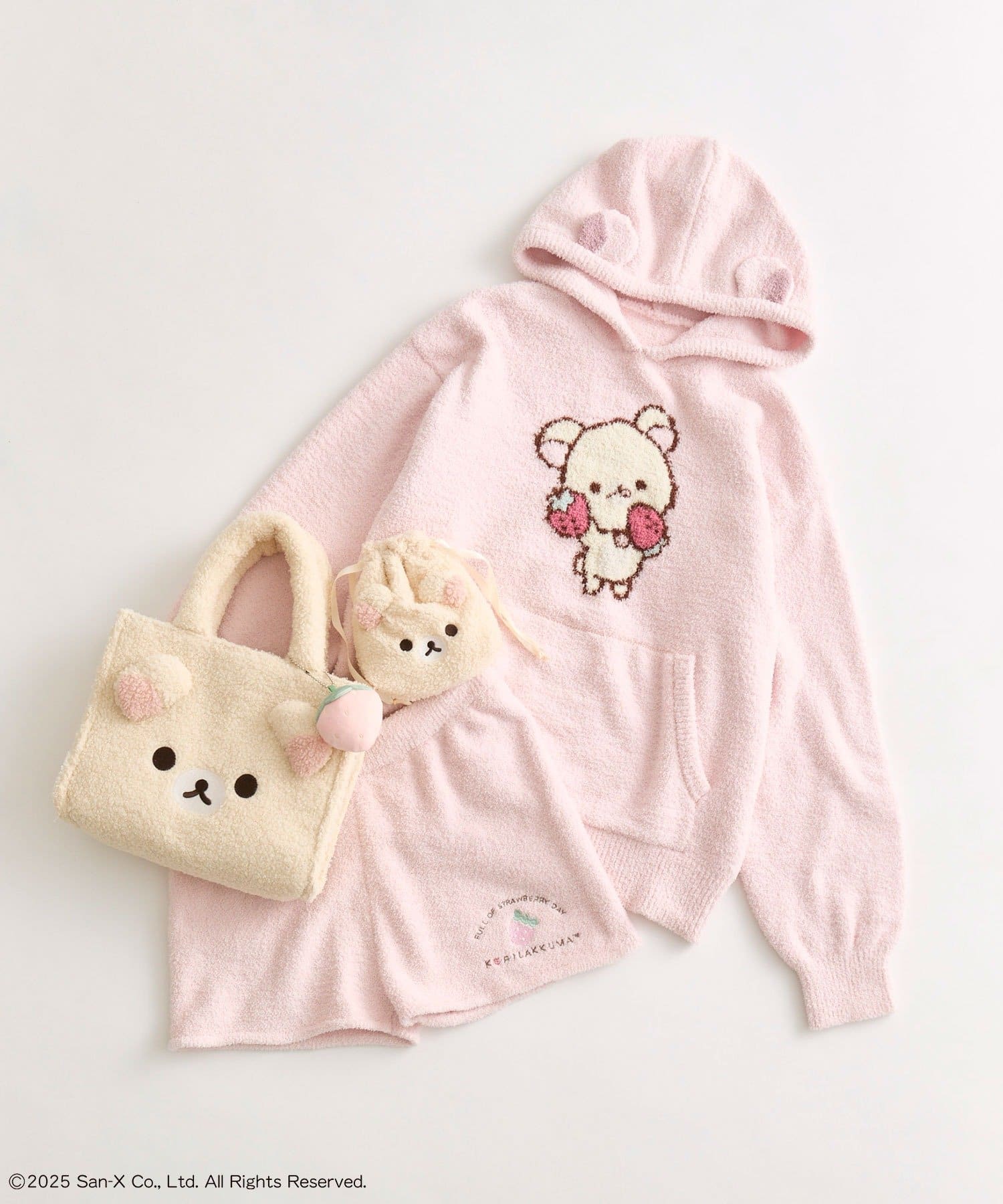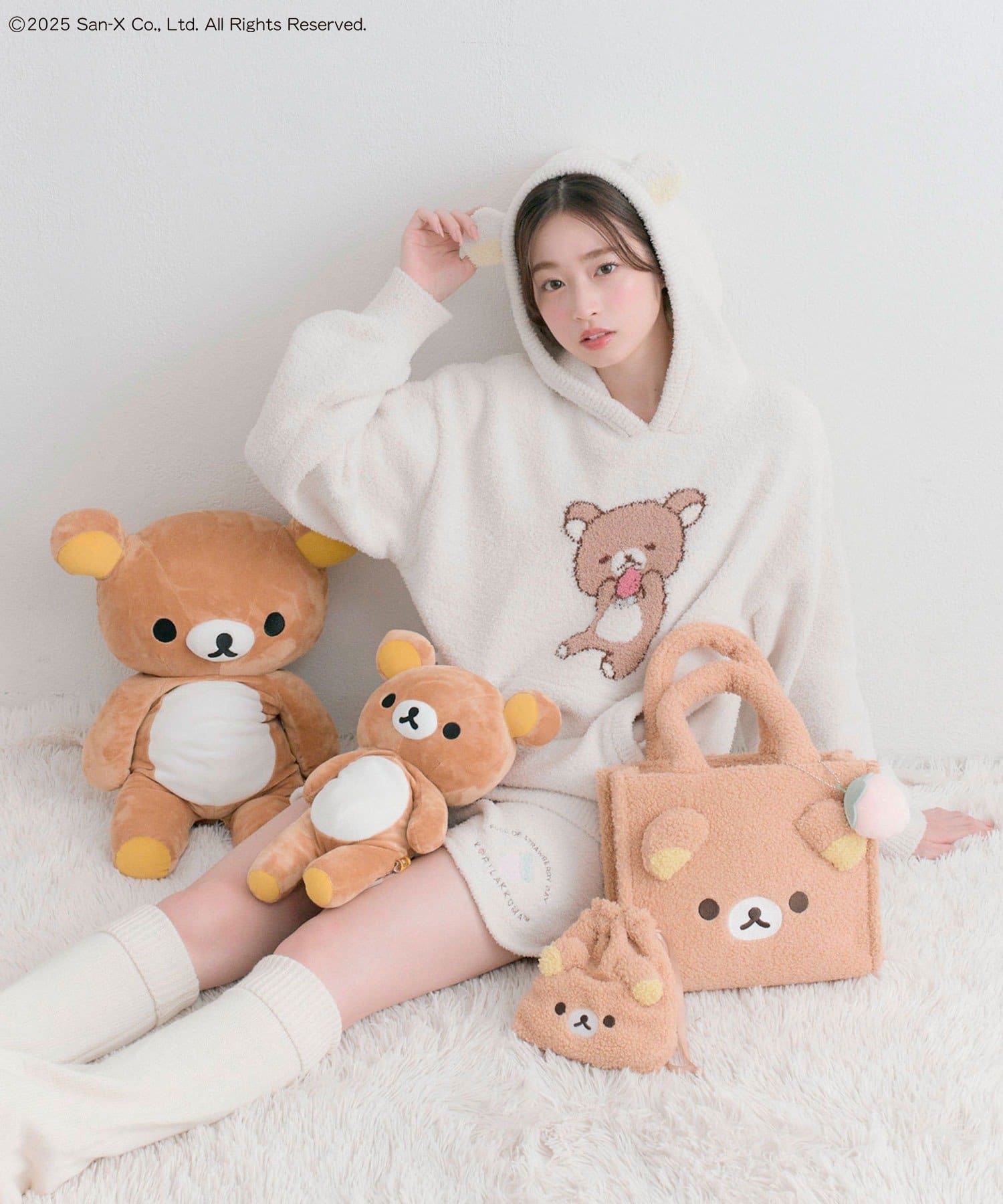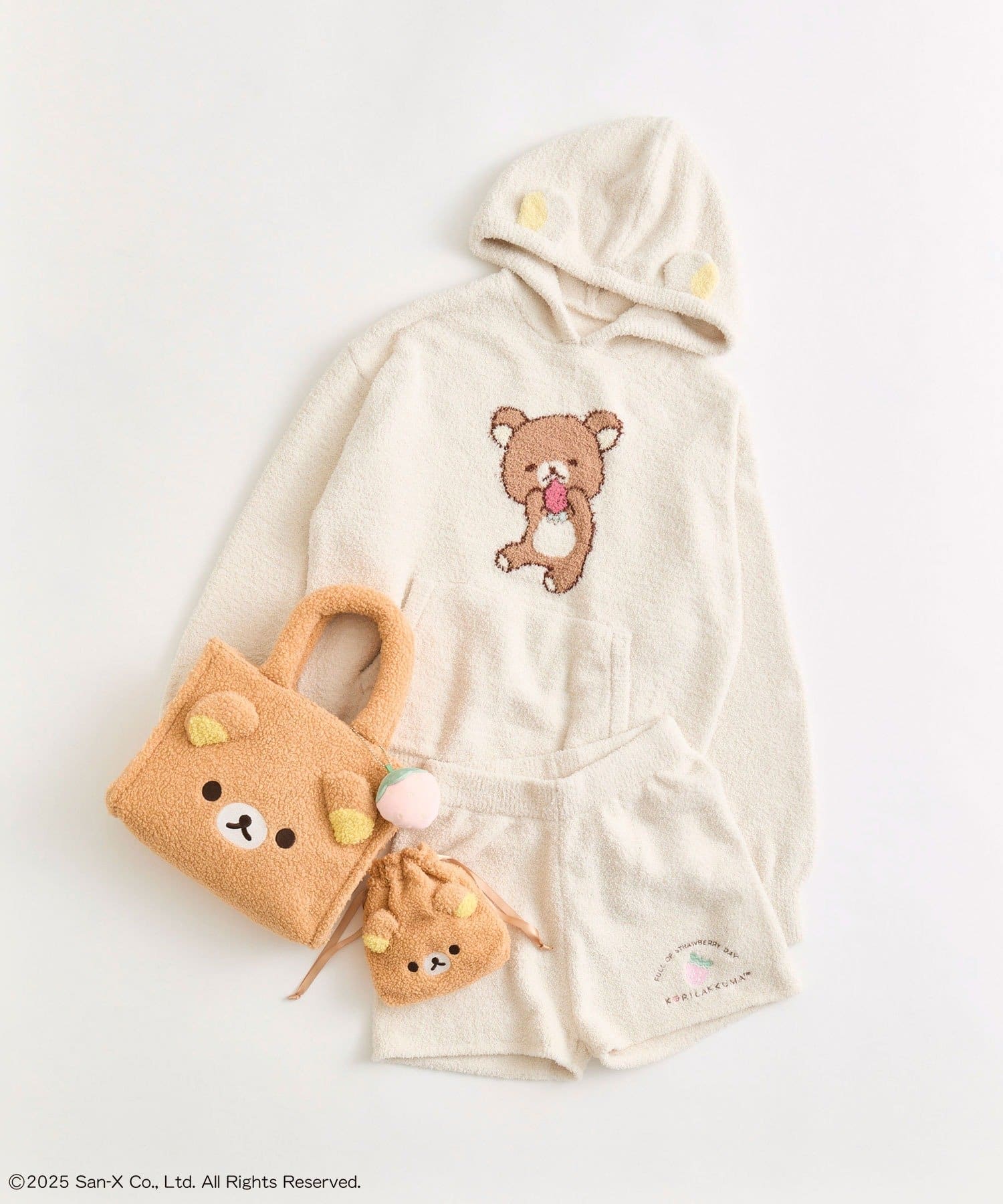 ・ふわふわのボアにリラックマたちの顔の刺繍と立体の耳がかわいいデザイン。