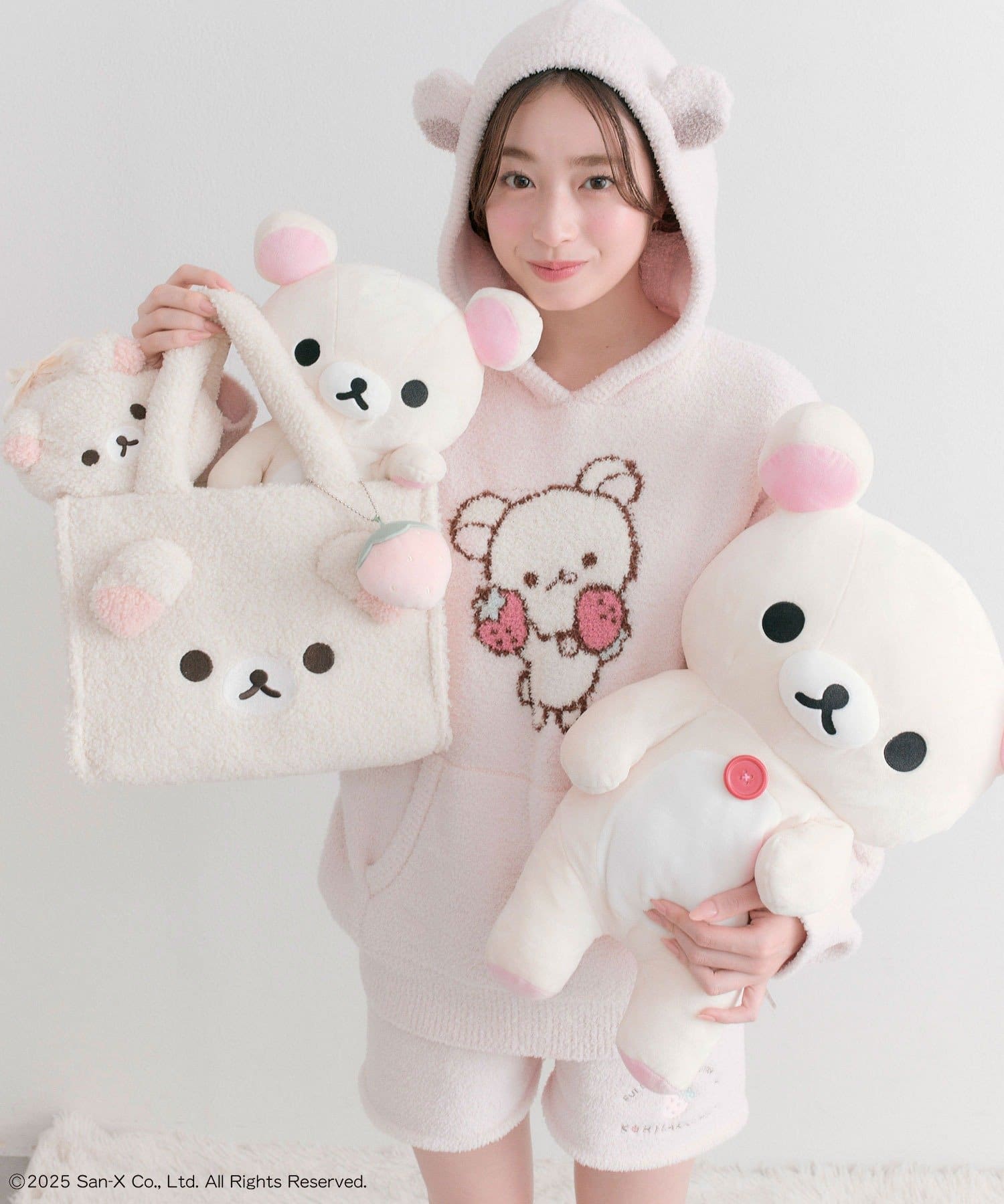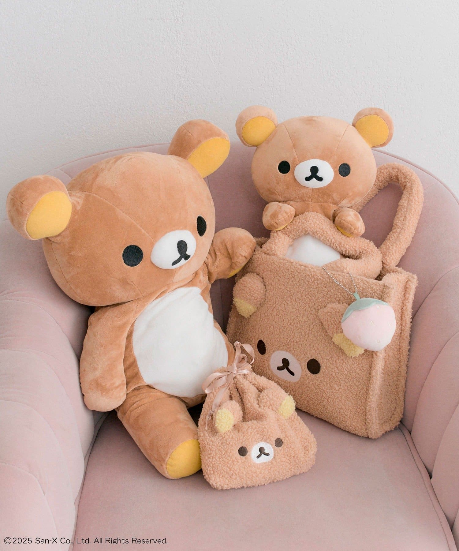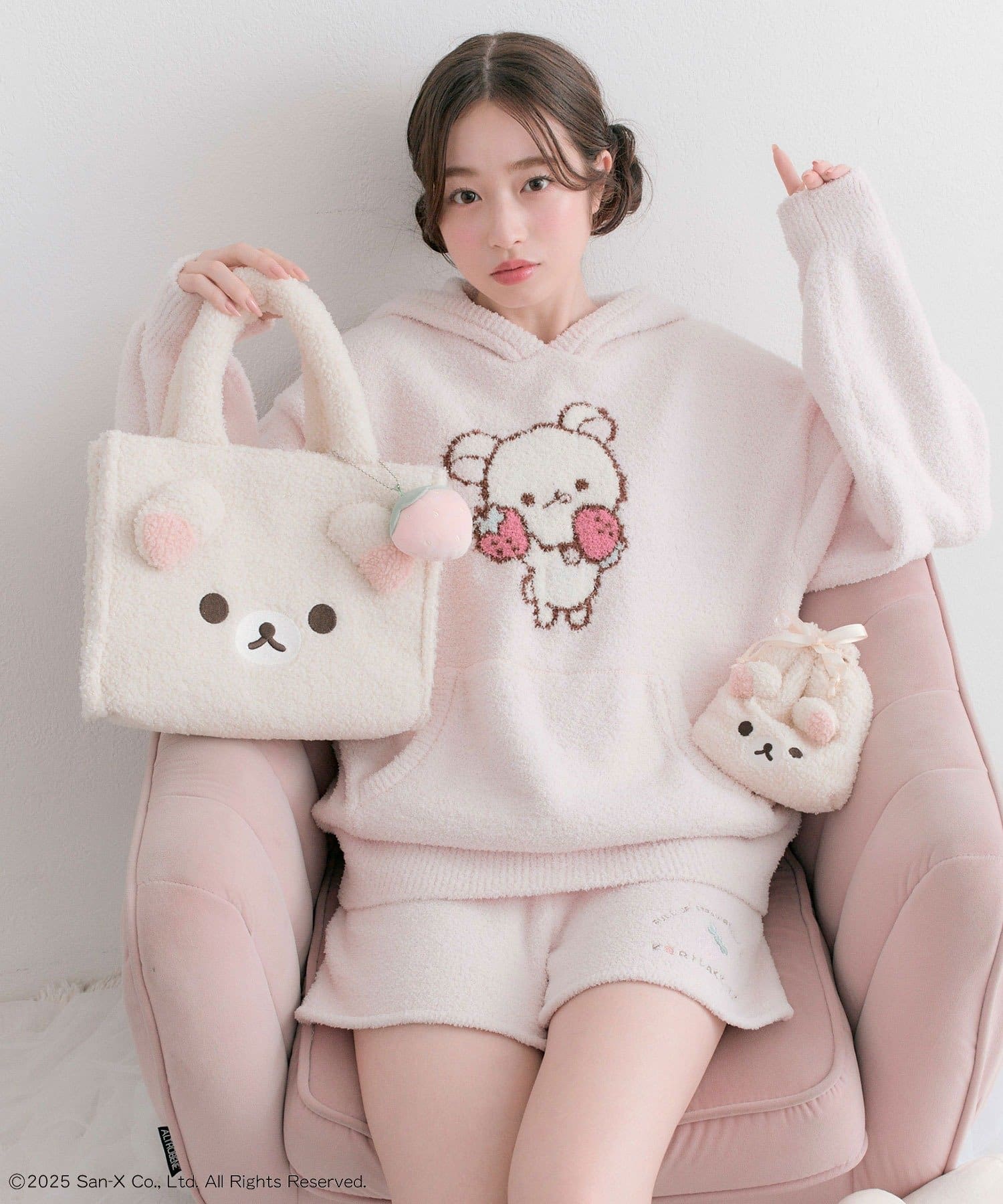 ・ふわふわのボアにリラックマたちの顔の刺繍と立体の耳がかわいいデザイン。