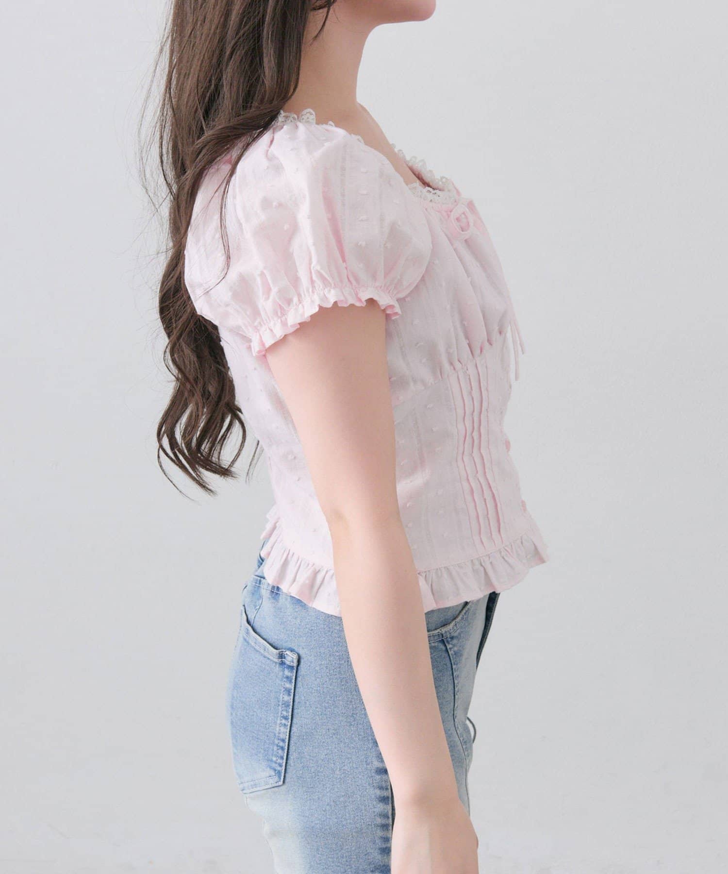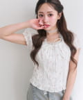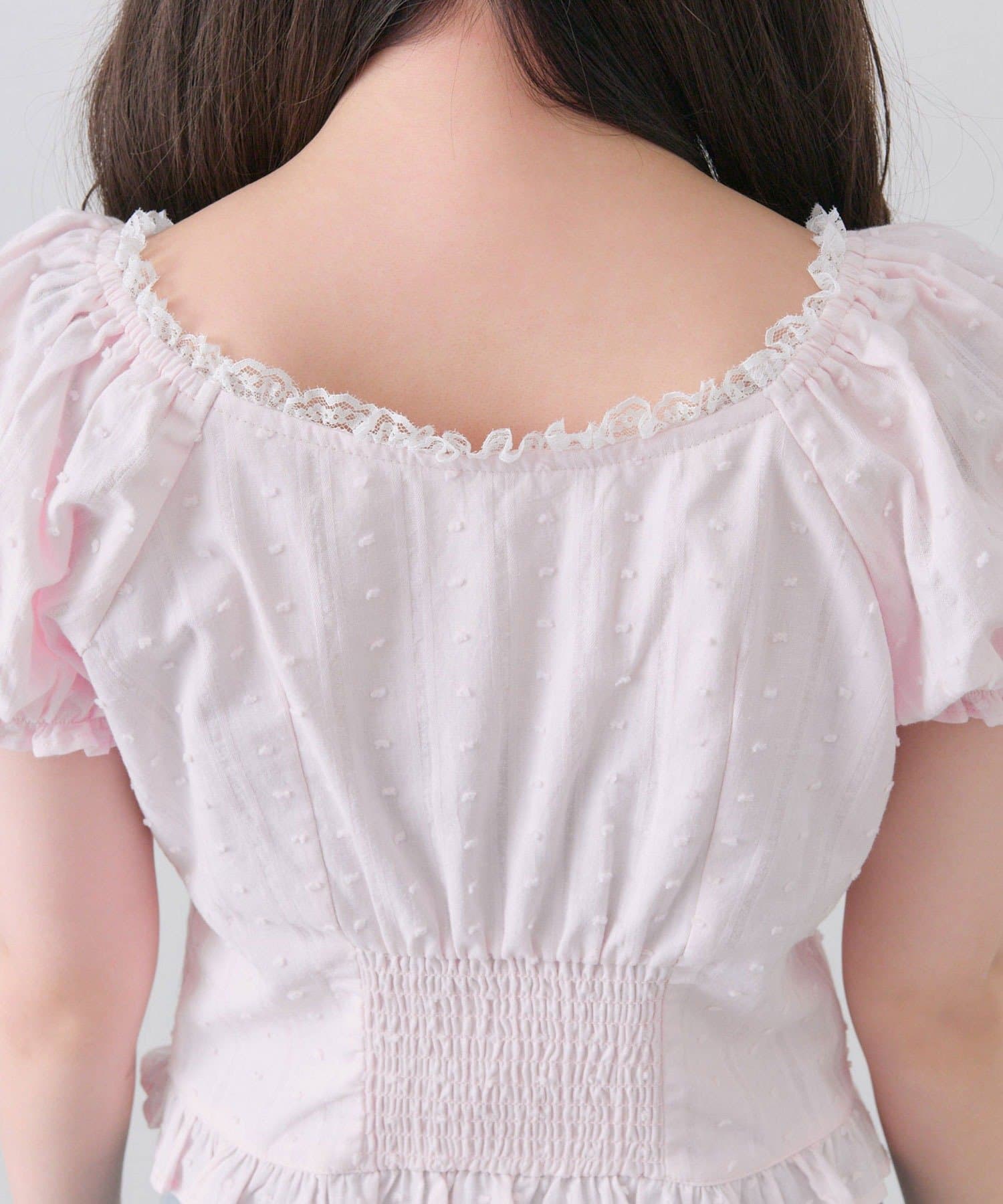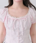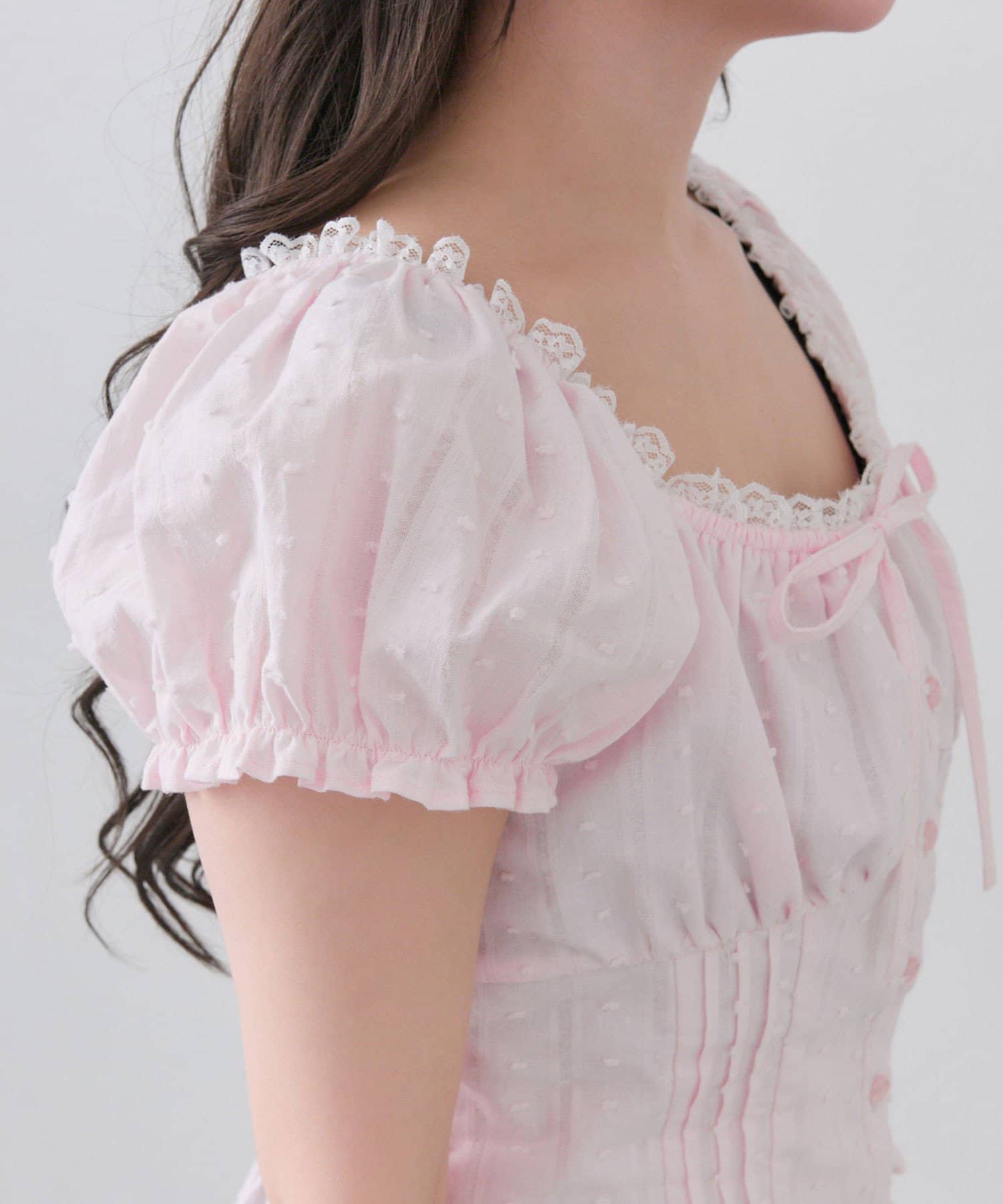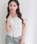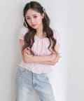 ・ふんわりパフスリーブとスクエアネックで、デコルテがきれいに華奢見えします。