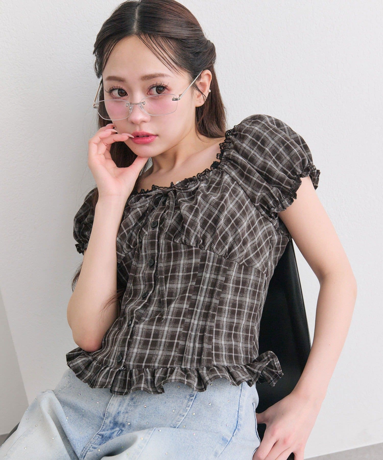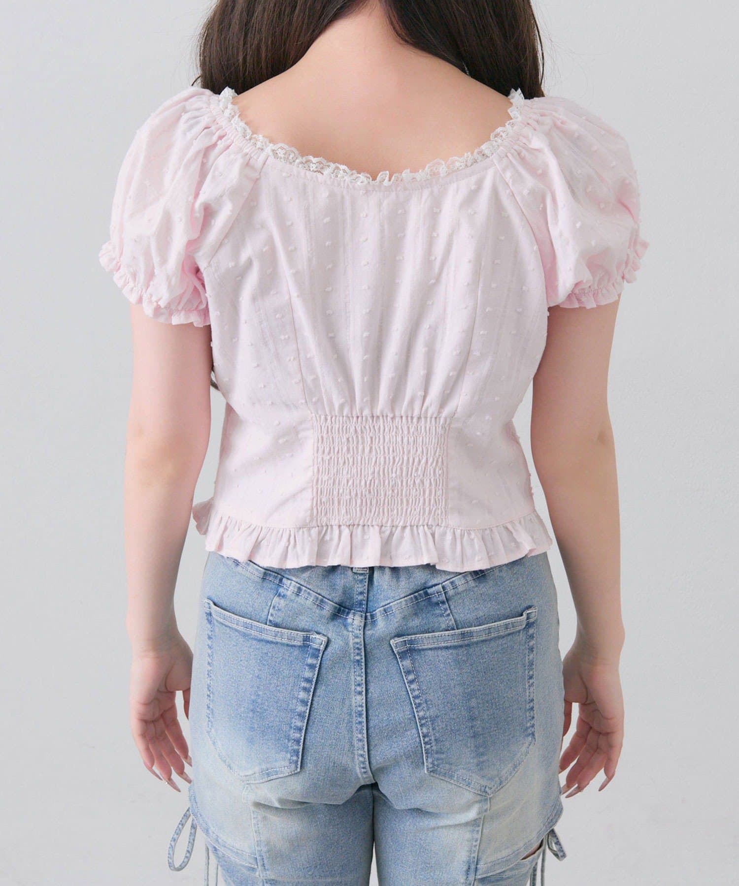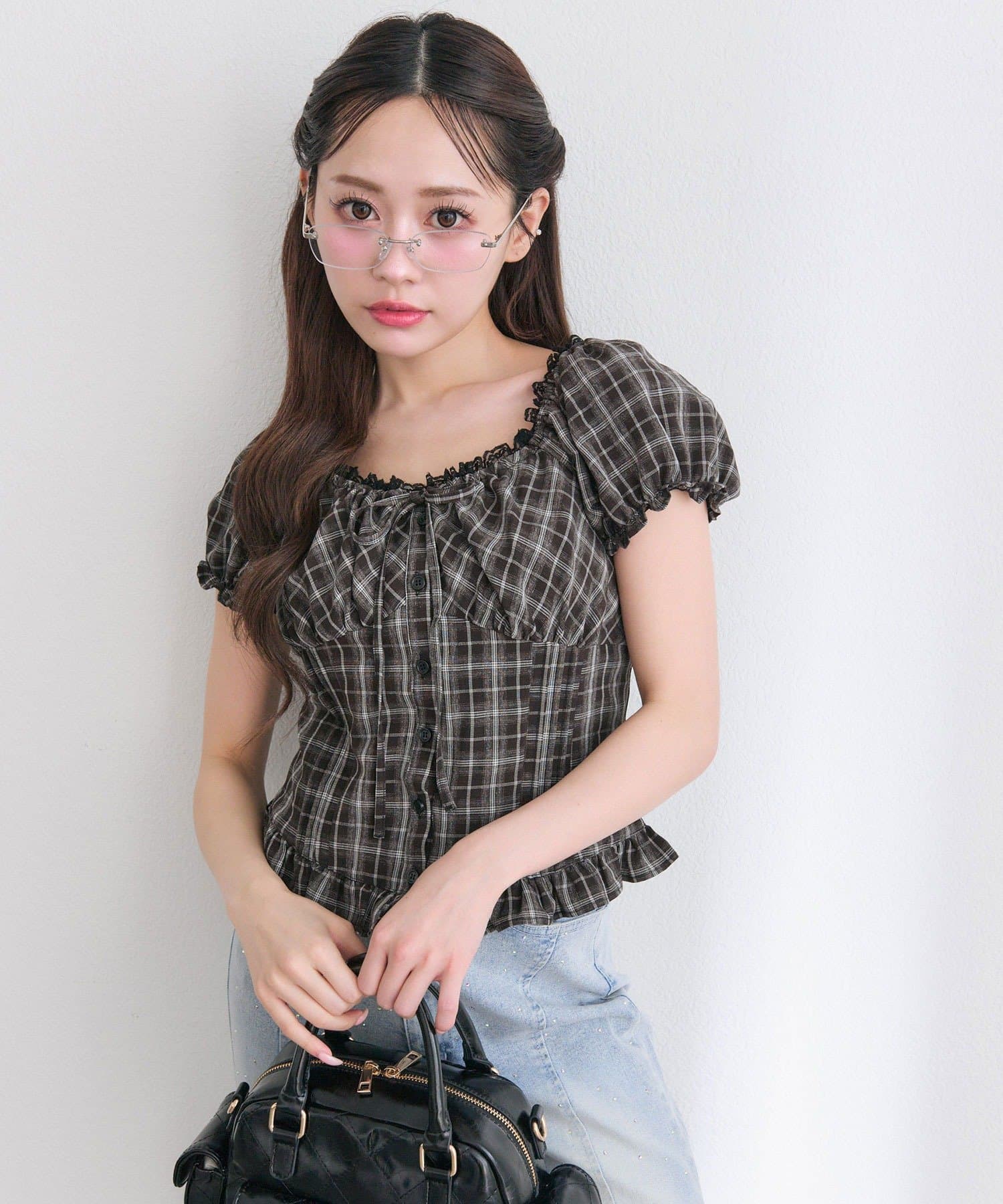 ・ふんわりパフスリーブとスクエアネックで、デコルテがきれいに華奢見えします。