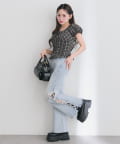 ・ティアードスカートを合わせて、ガーリーにまとめてもかわいいです。