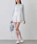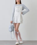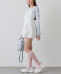 ・ニットはベルスリーブで腕のラインがきれいに見えて、短丈なので脚長効果も抜群です。