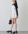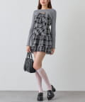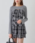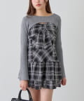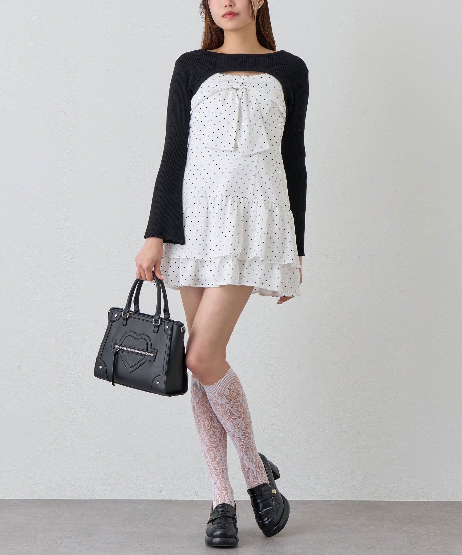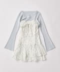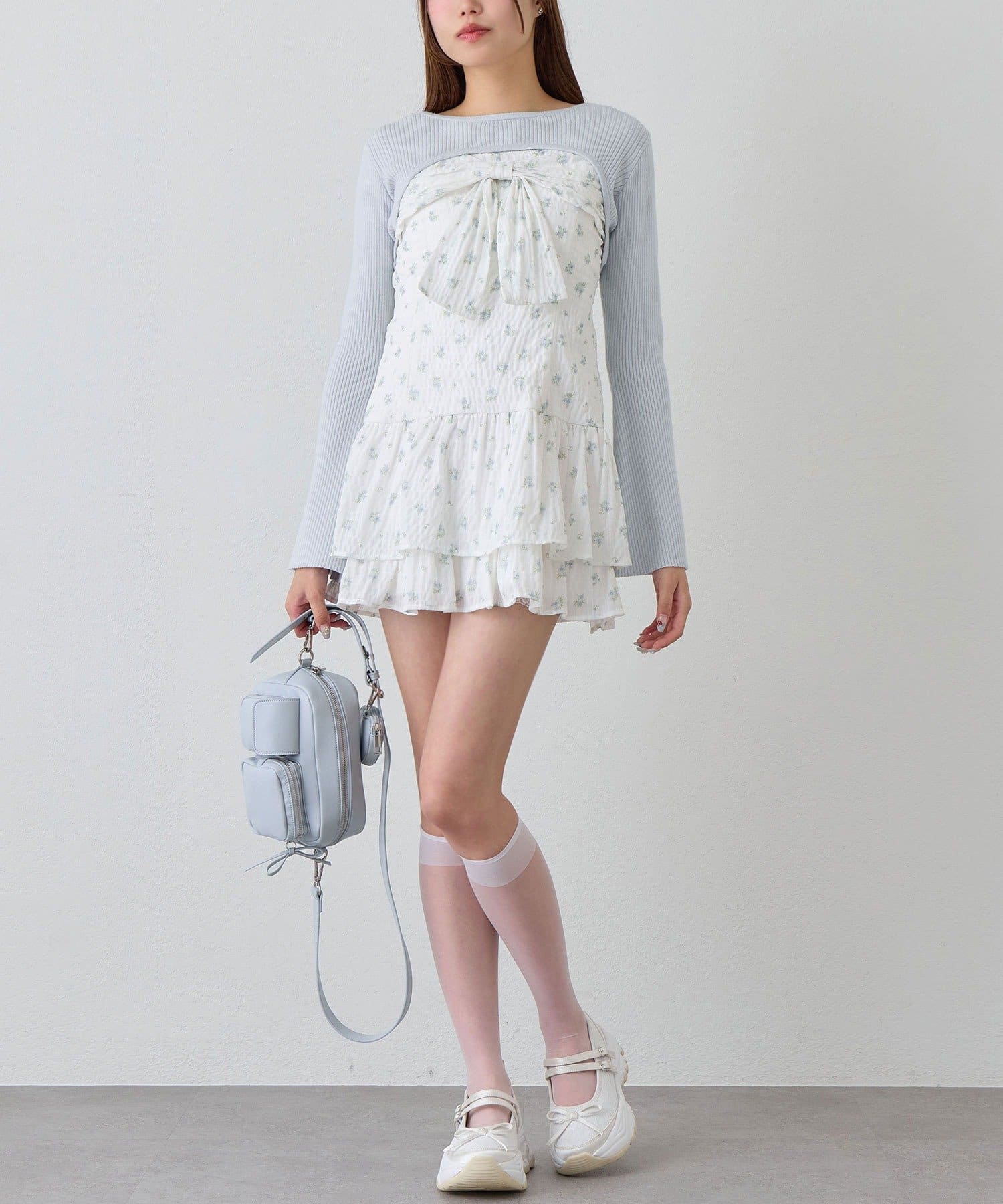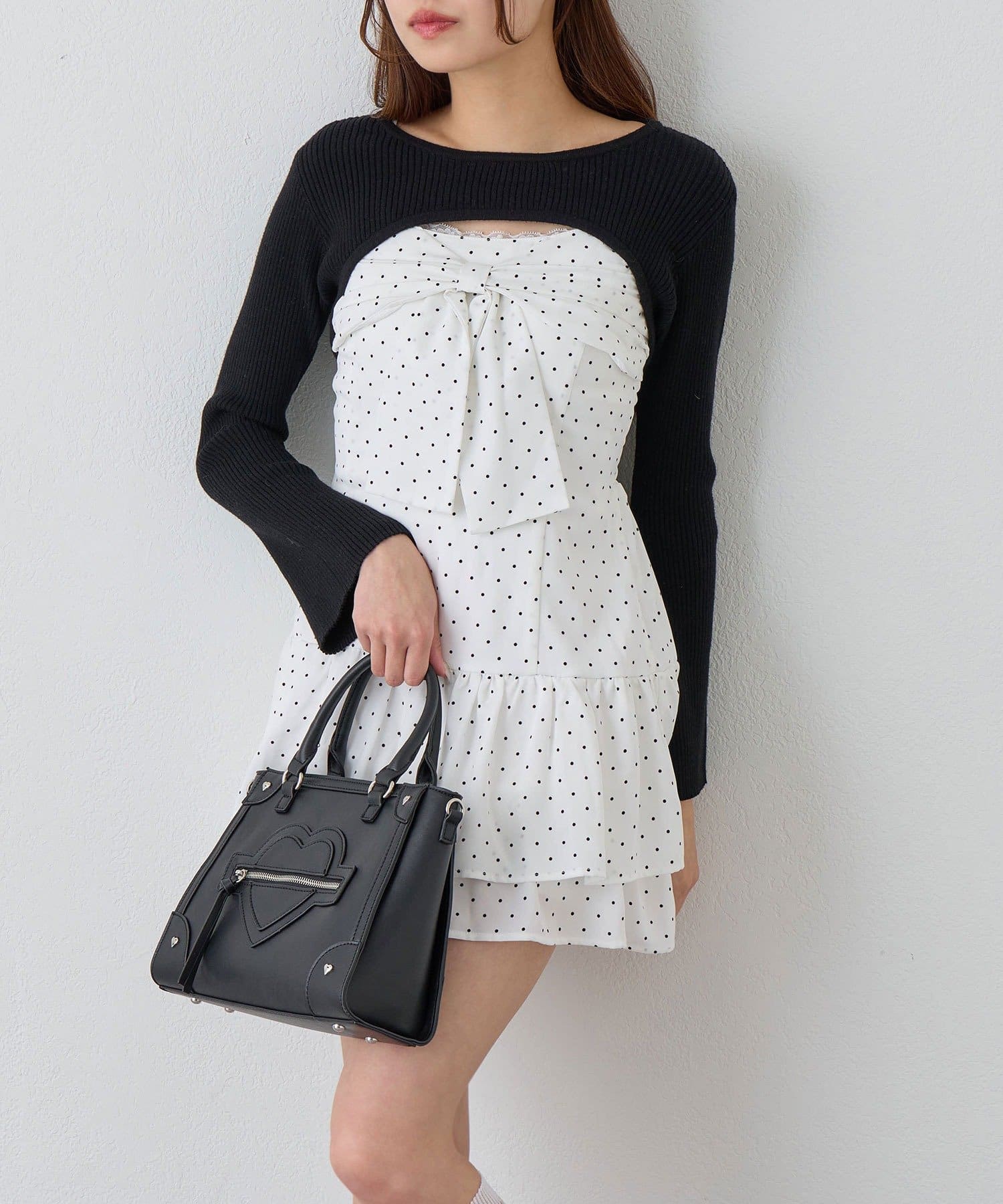 ・大きいリボンが映え間違いなしなキャミワンピースと、華奢見えするニットのセット。