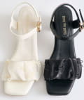 ・スクエアトゥのつま先が、甘さの中に大人っぽさをプラスします。