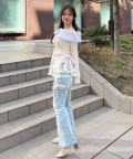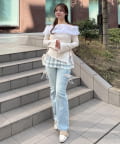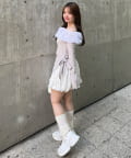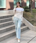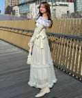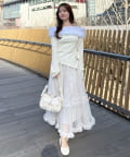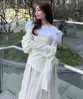 ・ベルスリーブとボリュームのあるオフショルで、肩まわりを華奢に見せてくれます。