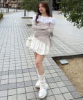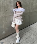 ・ミニスカートを合わせて甘めコーデもかわいいです。