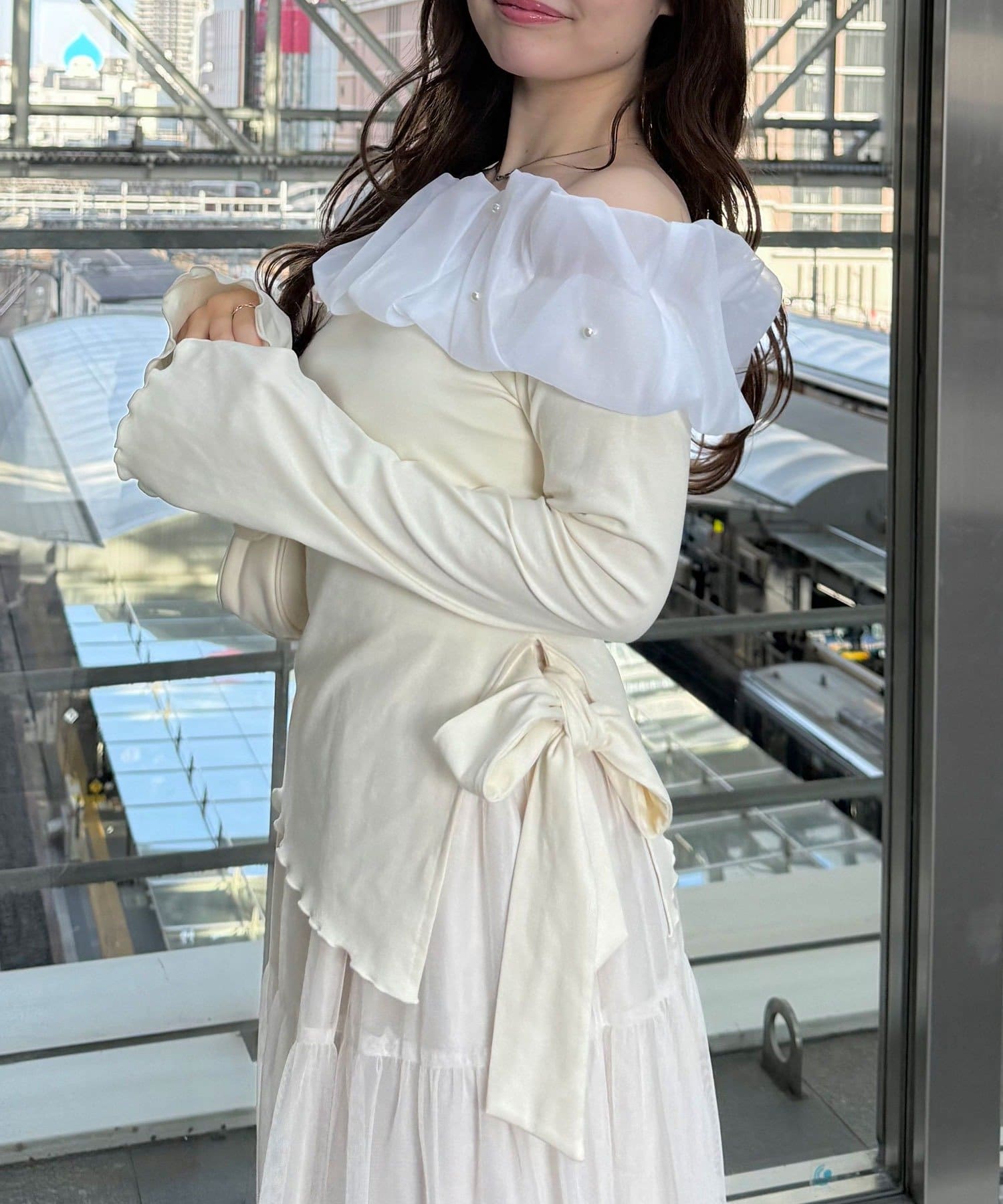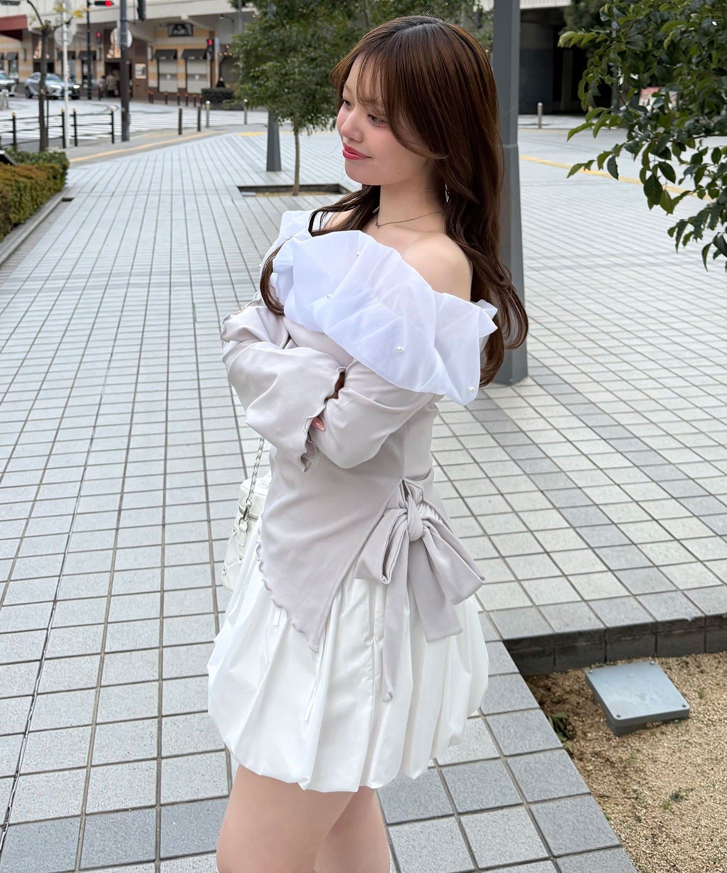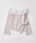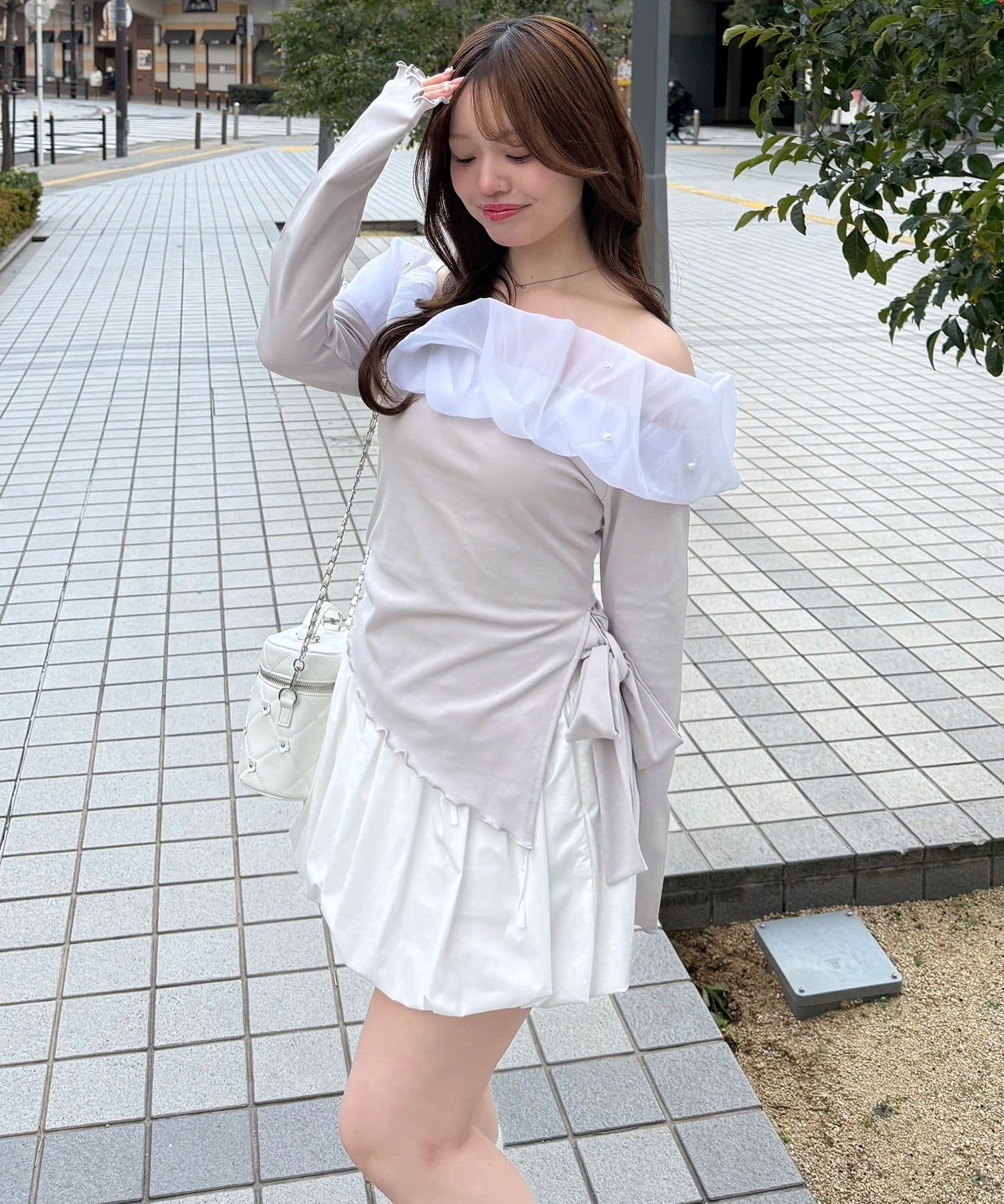 ・ふわふわオフショルとサイドリボンがポイントの、女性らしいオフショルトップス。