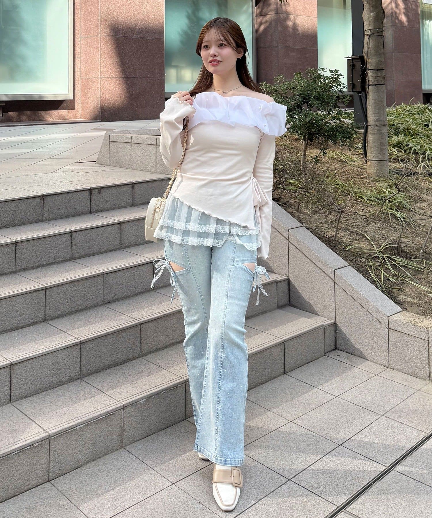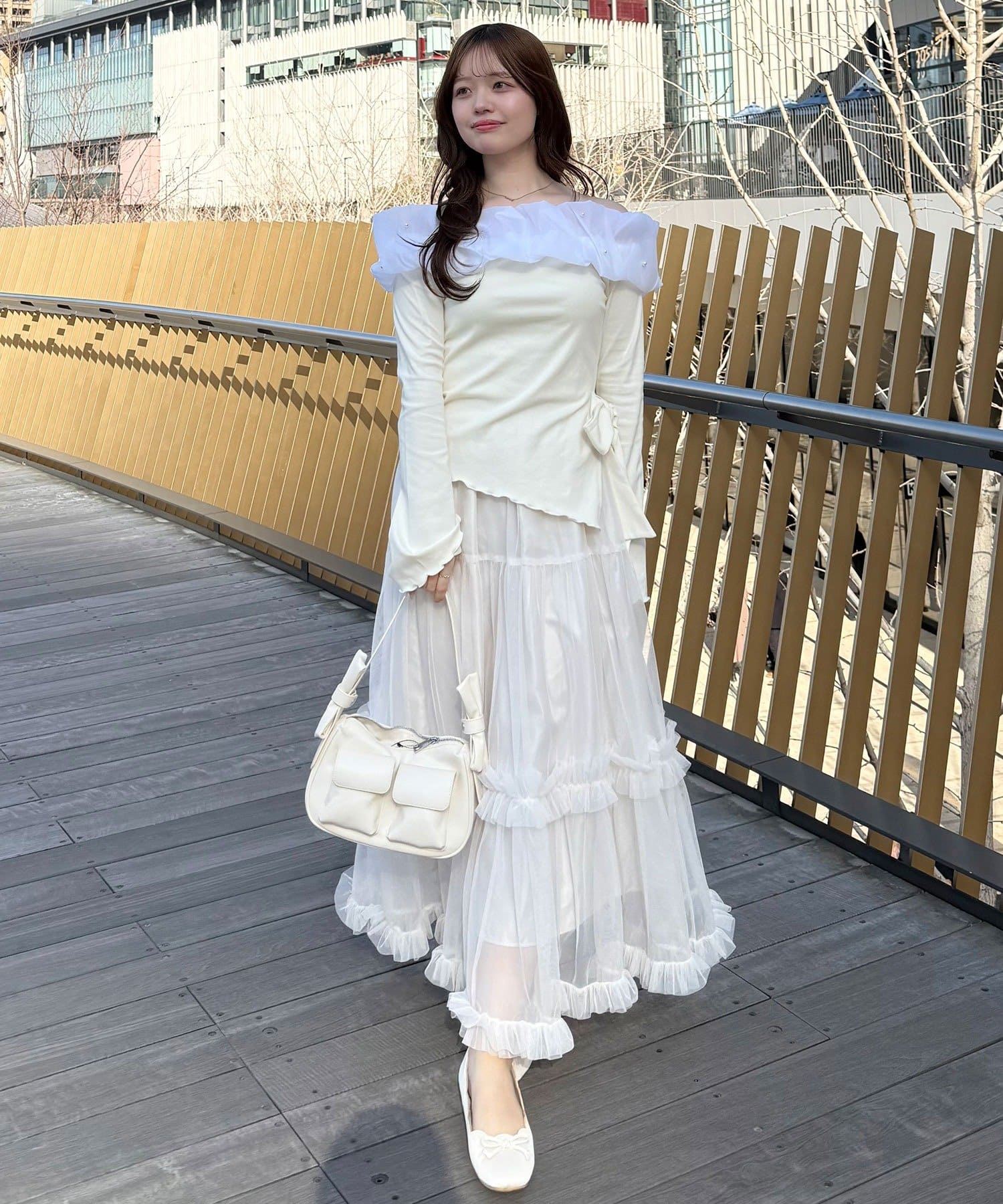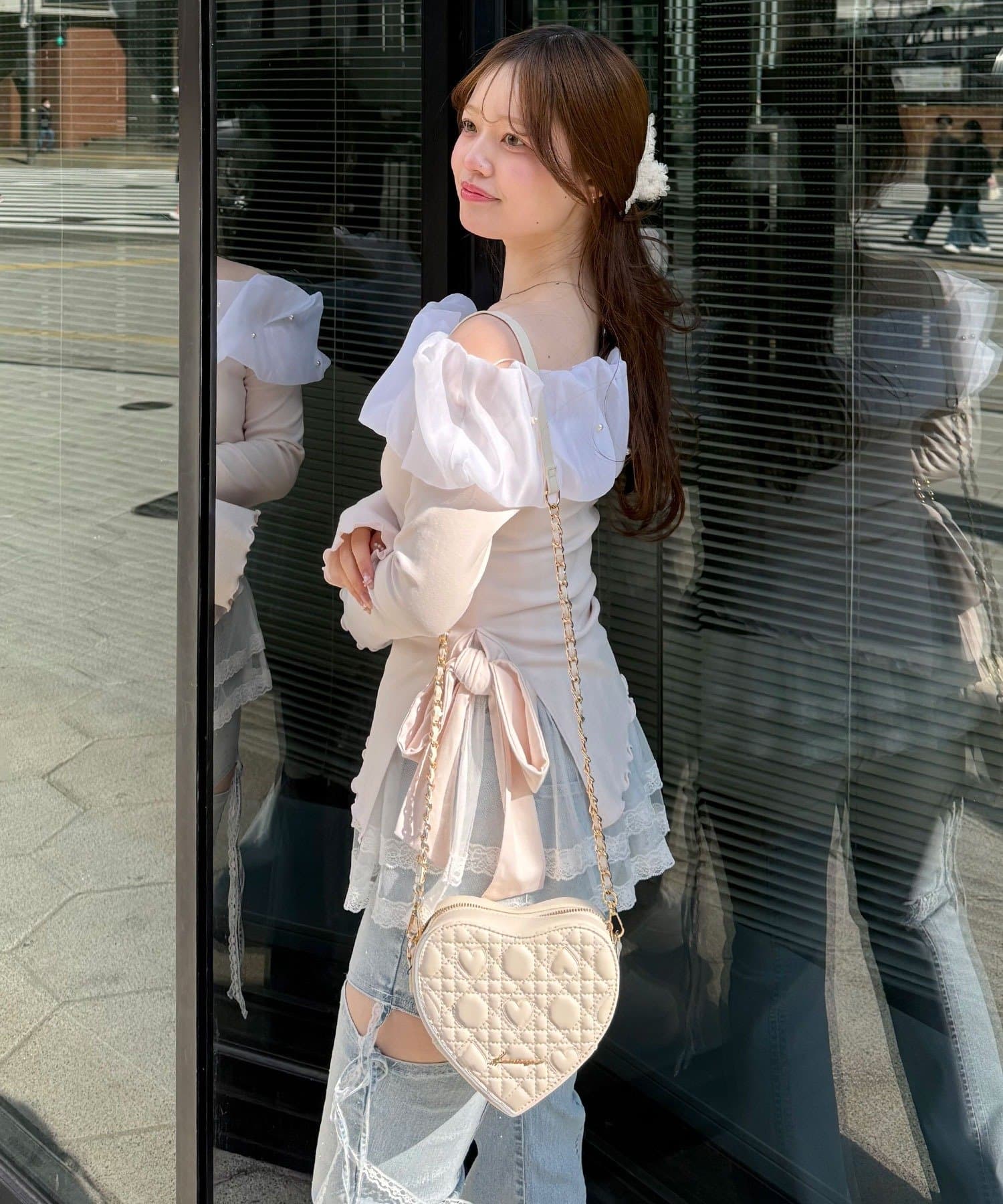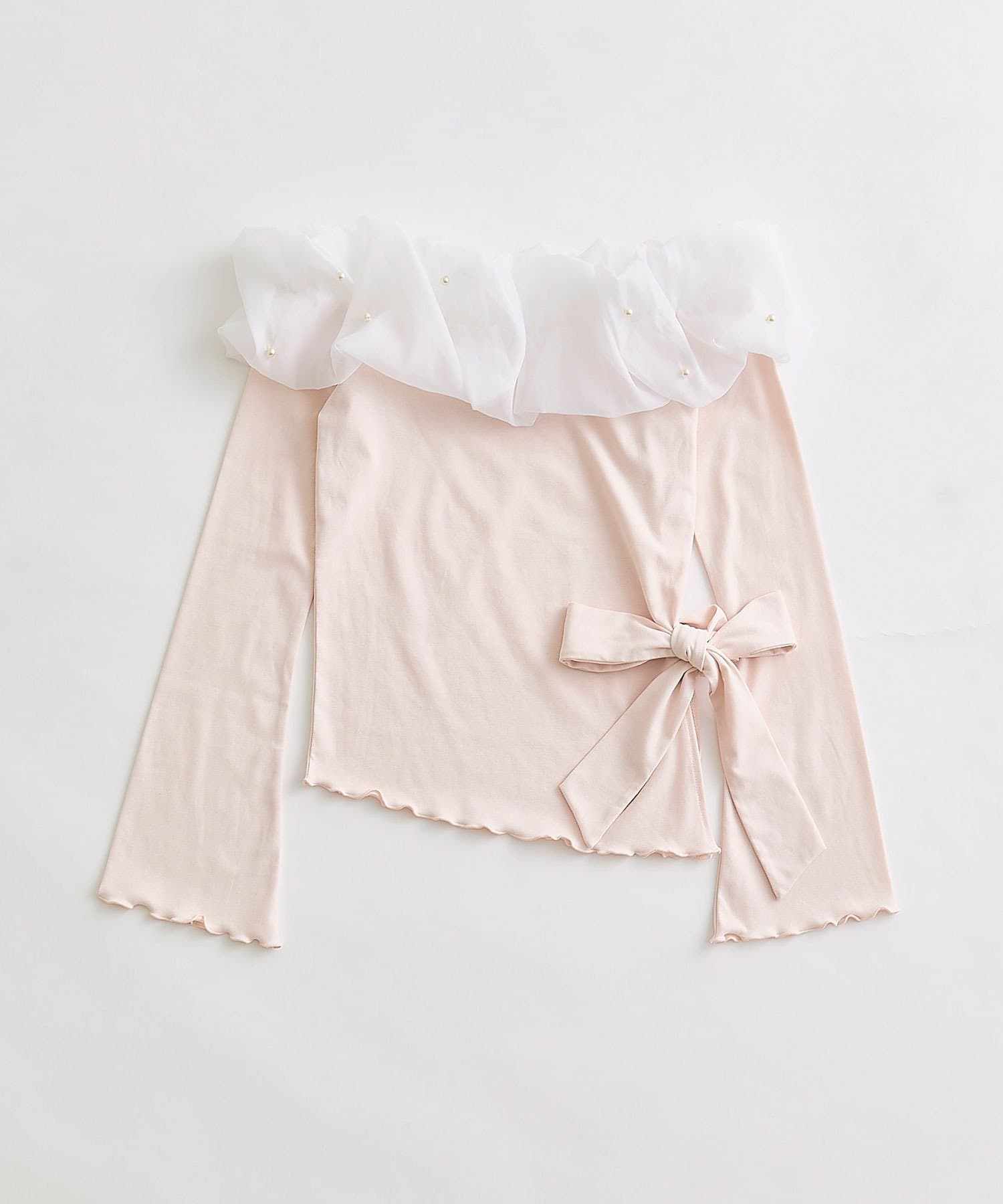 ・ふわふわオフショルとサイドリボンがポイントの、女性らしいオフショルトップス。