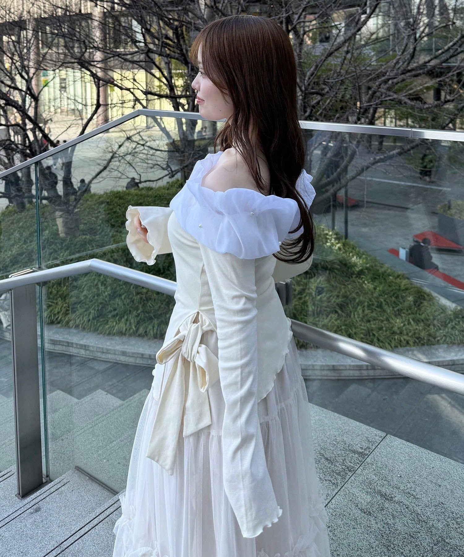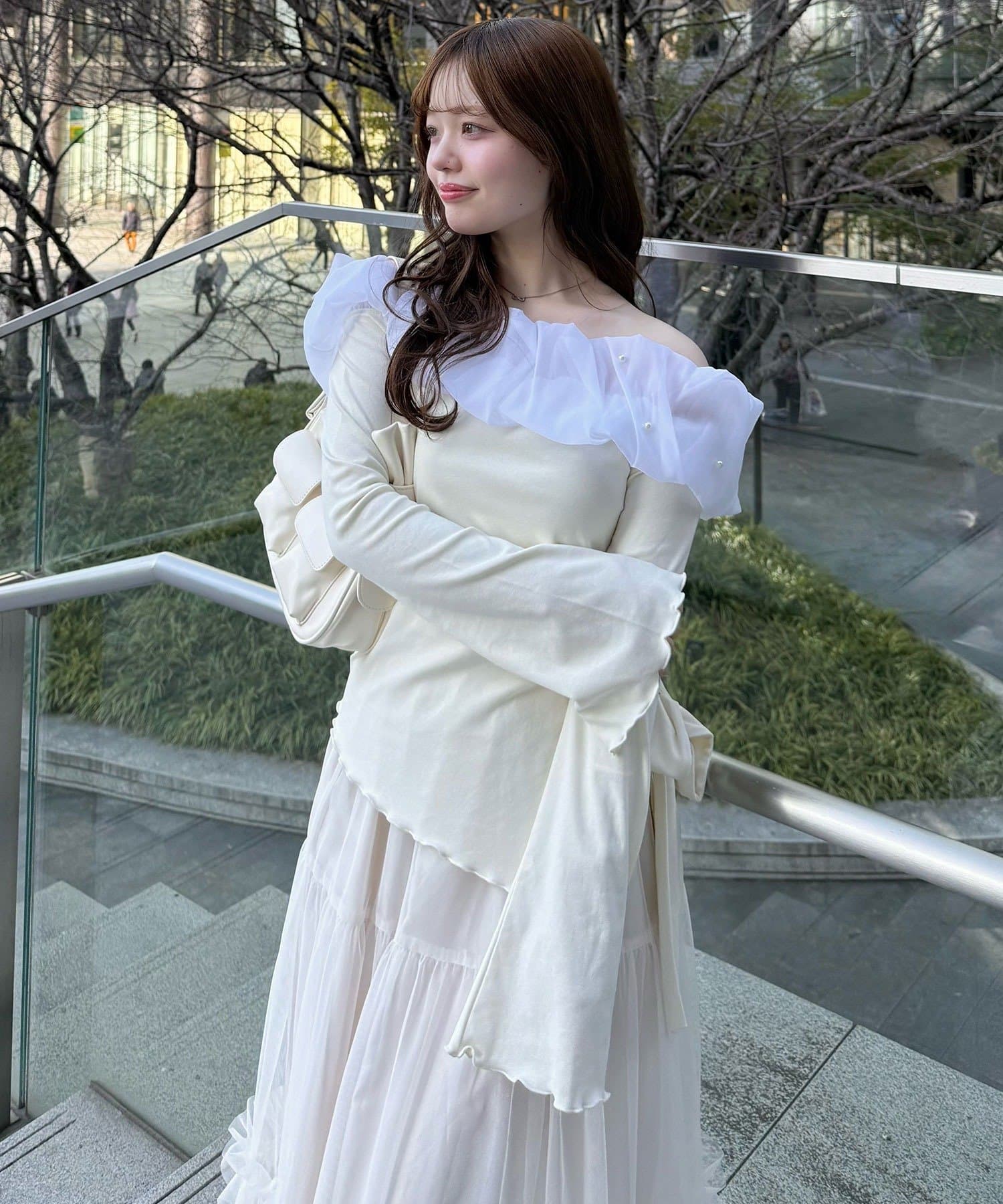 ・オーガンジー部分に散りばめられたパールが、さりげない特別感を演出します。