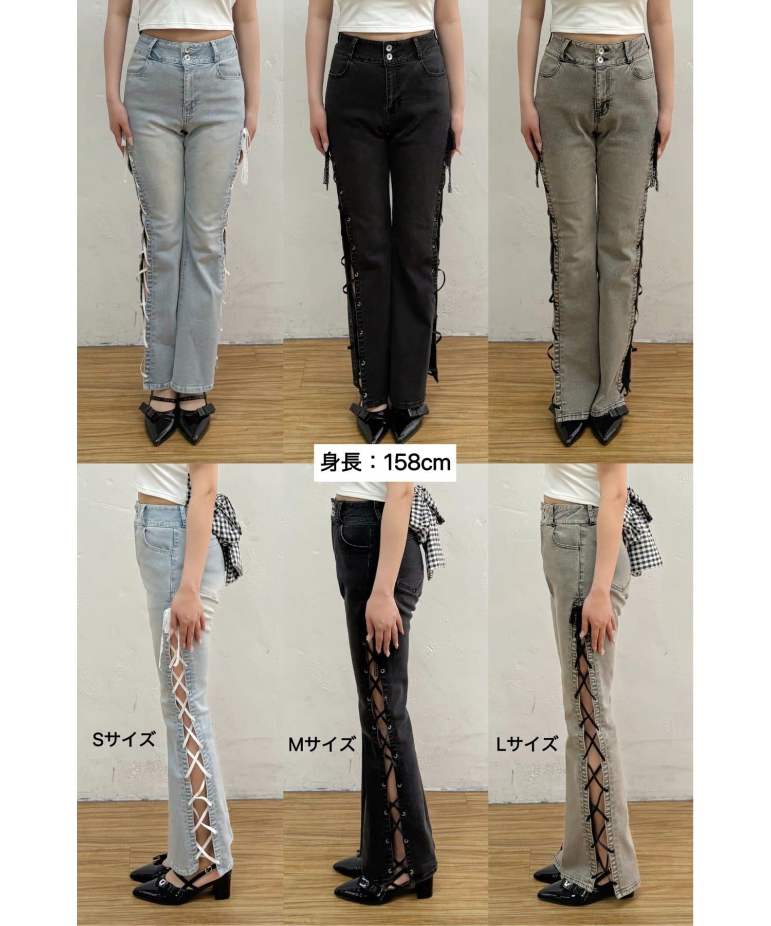 サイドのレースアップがポイントの、美シルエットフレアデニム。