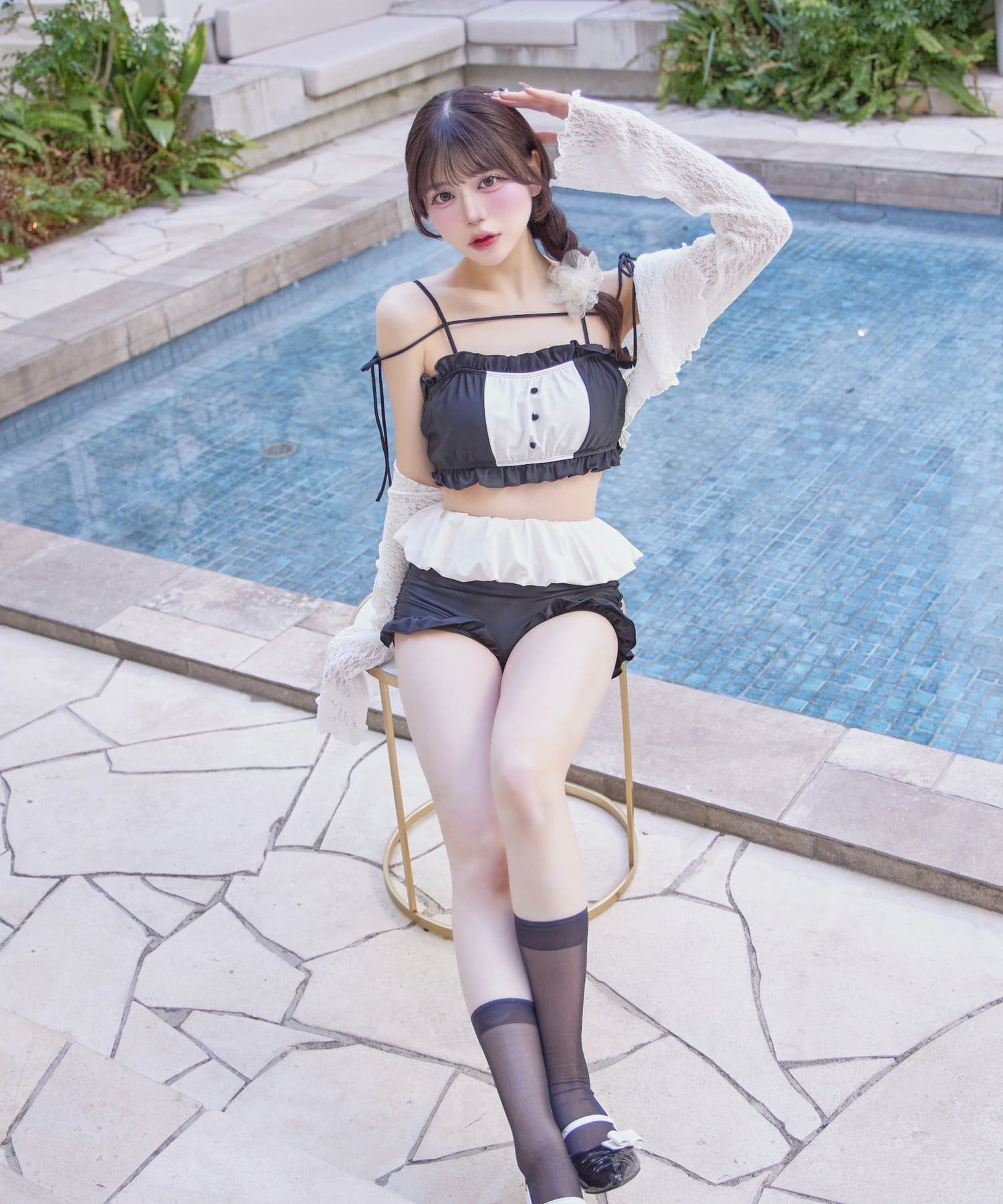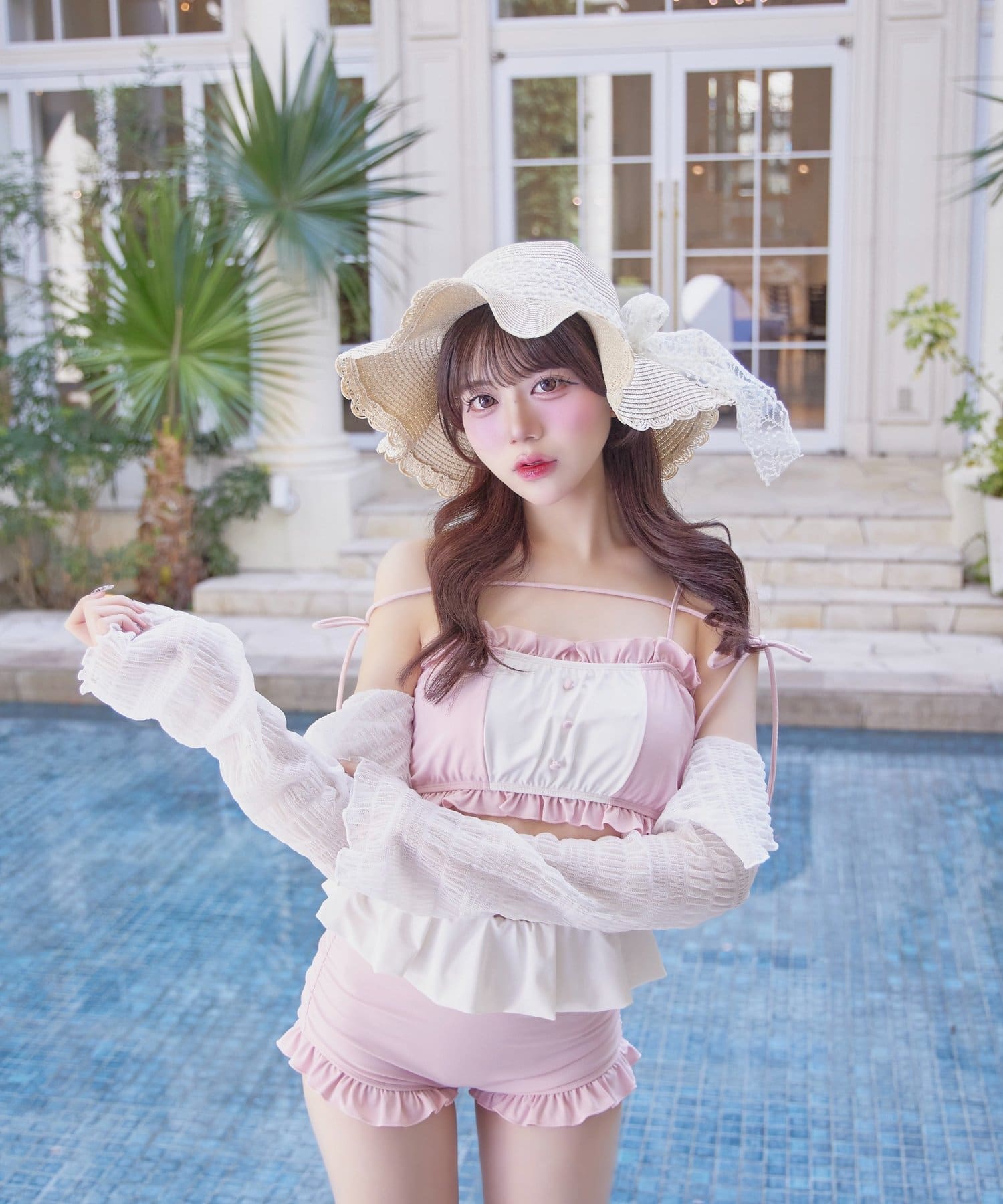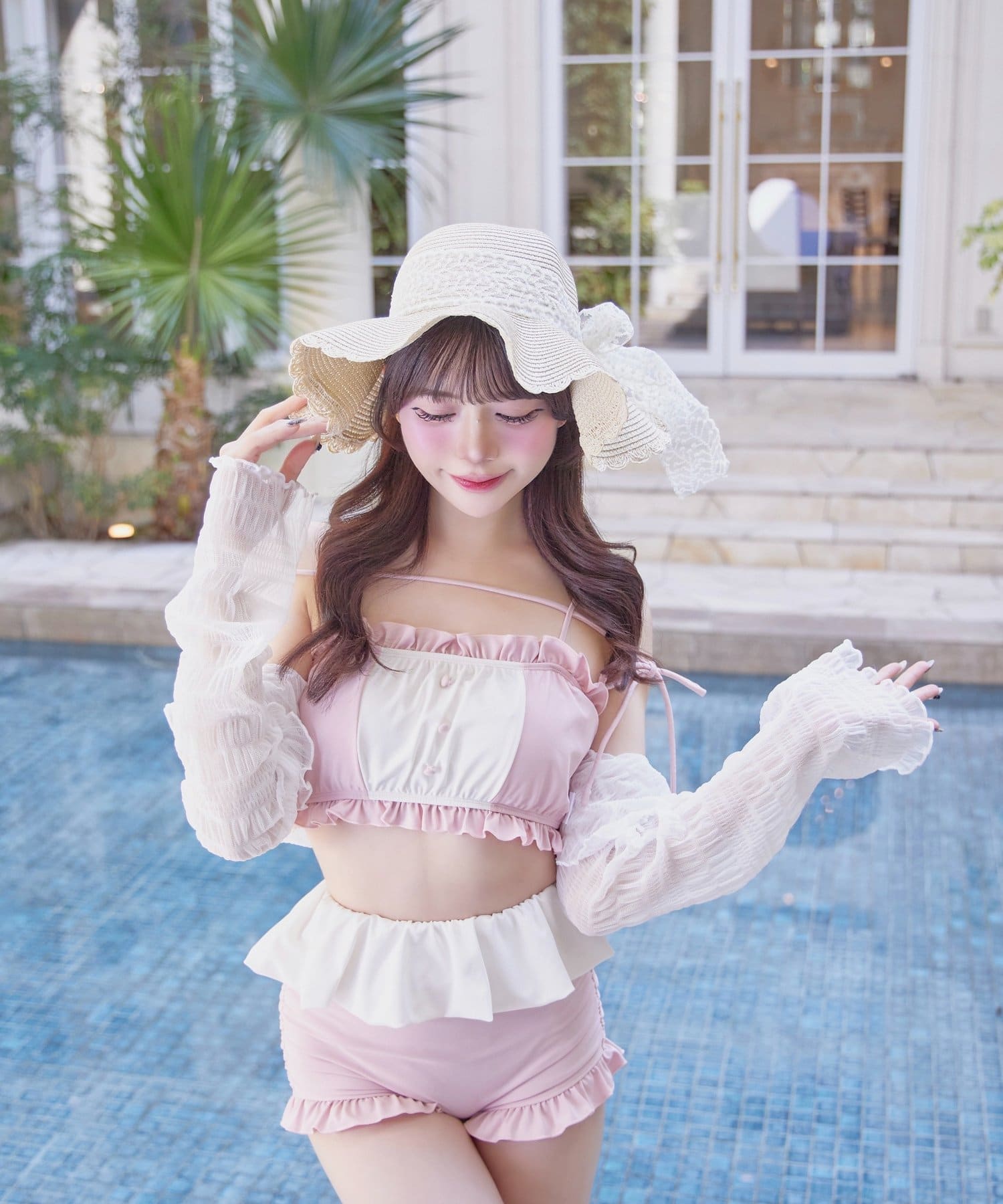 Ruffle Swimwear &Lace Cardigan Set