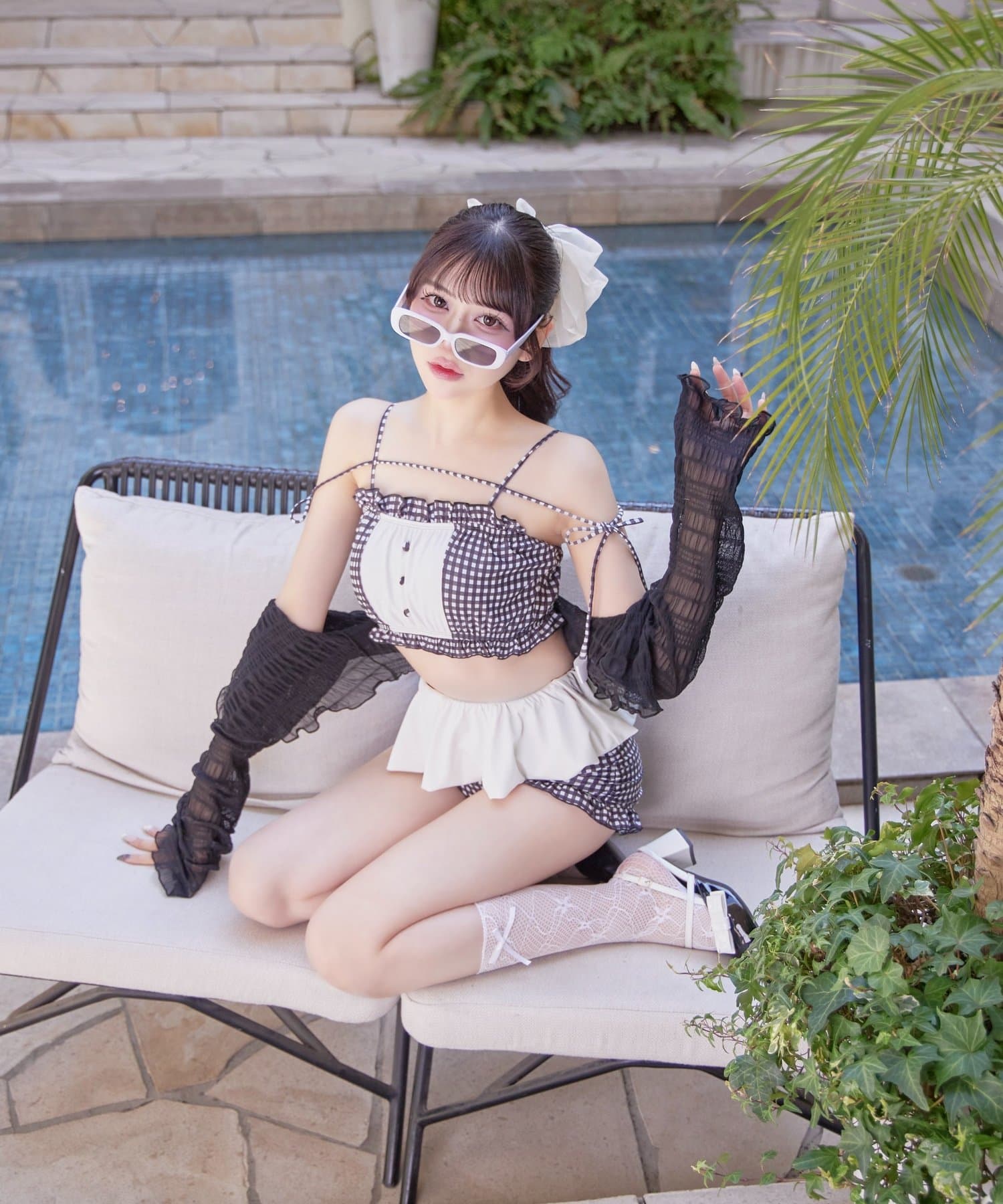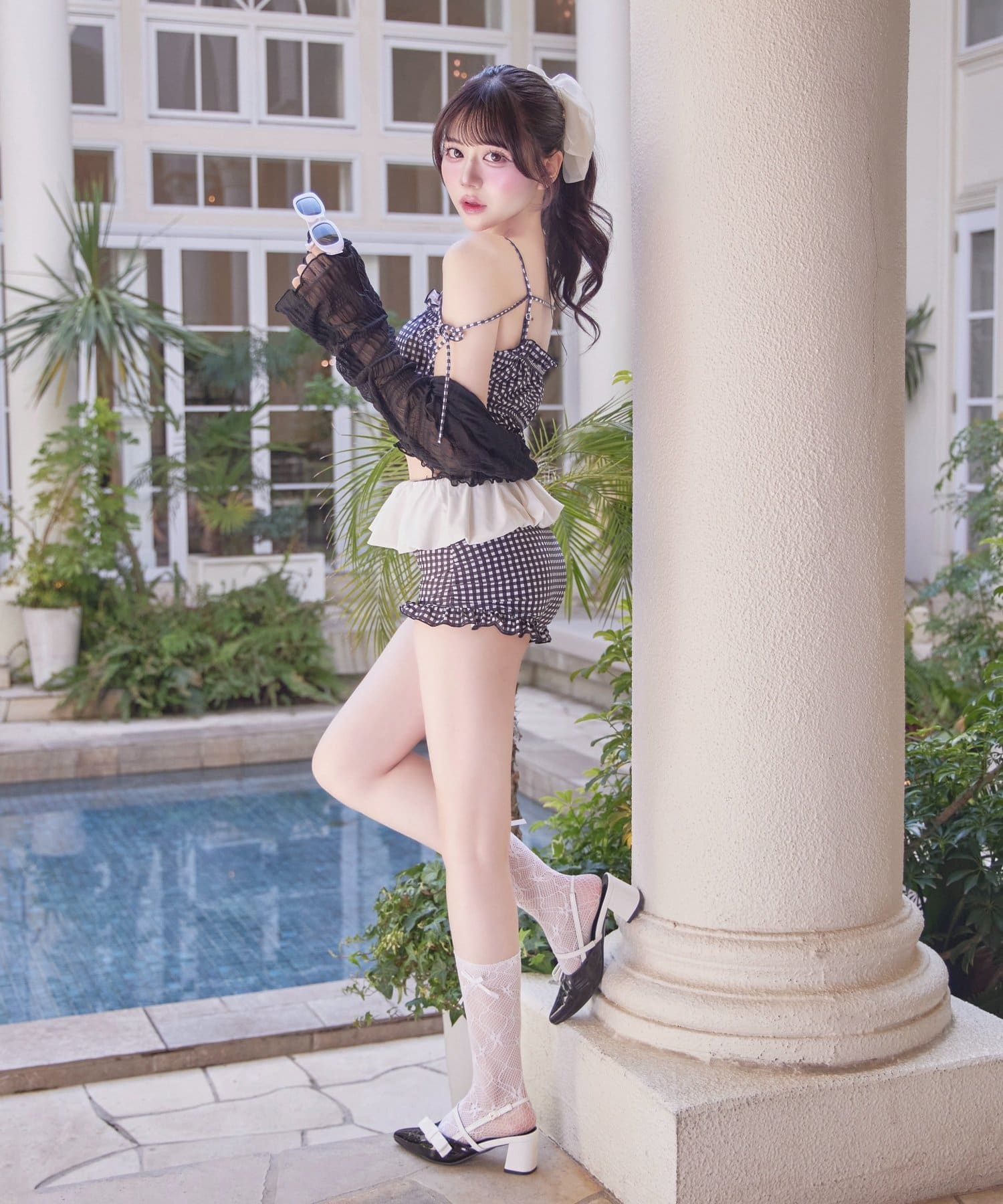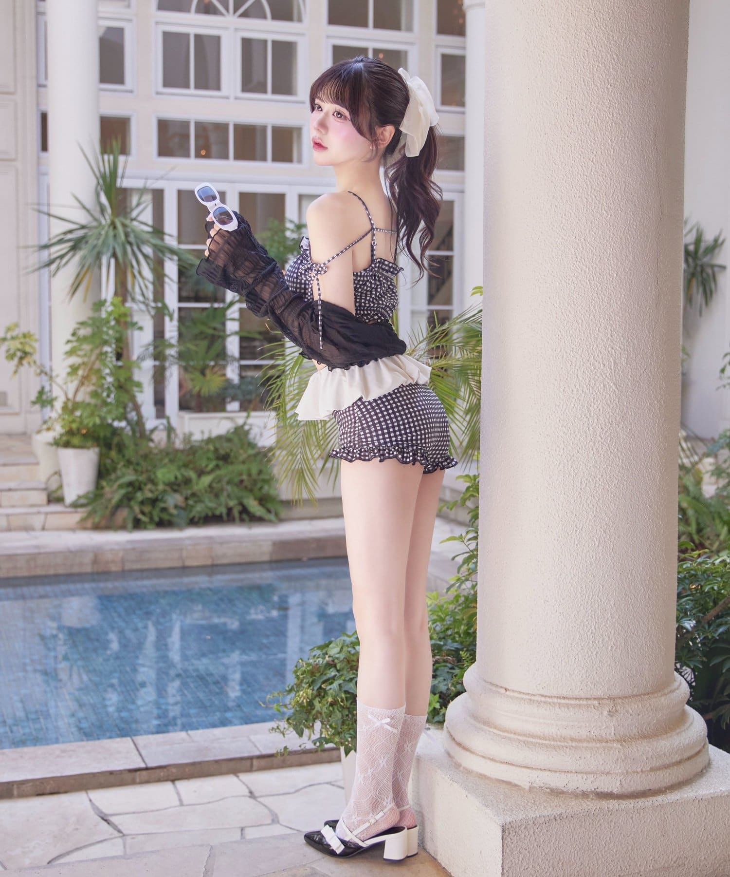 Ruffle Swimwear &Lace Cardigan Set