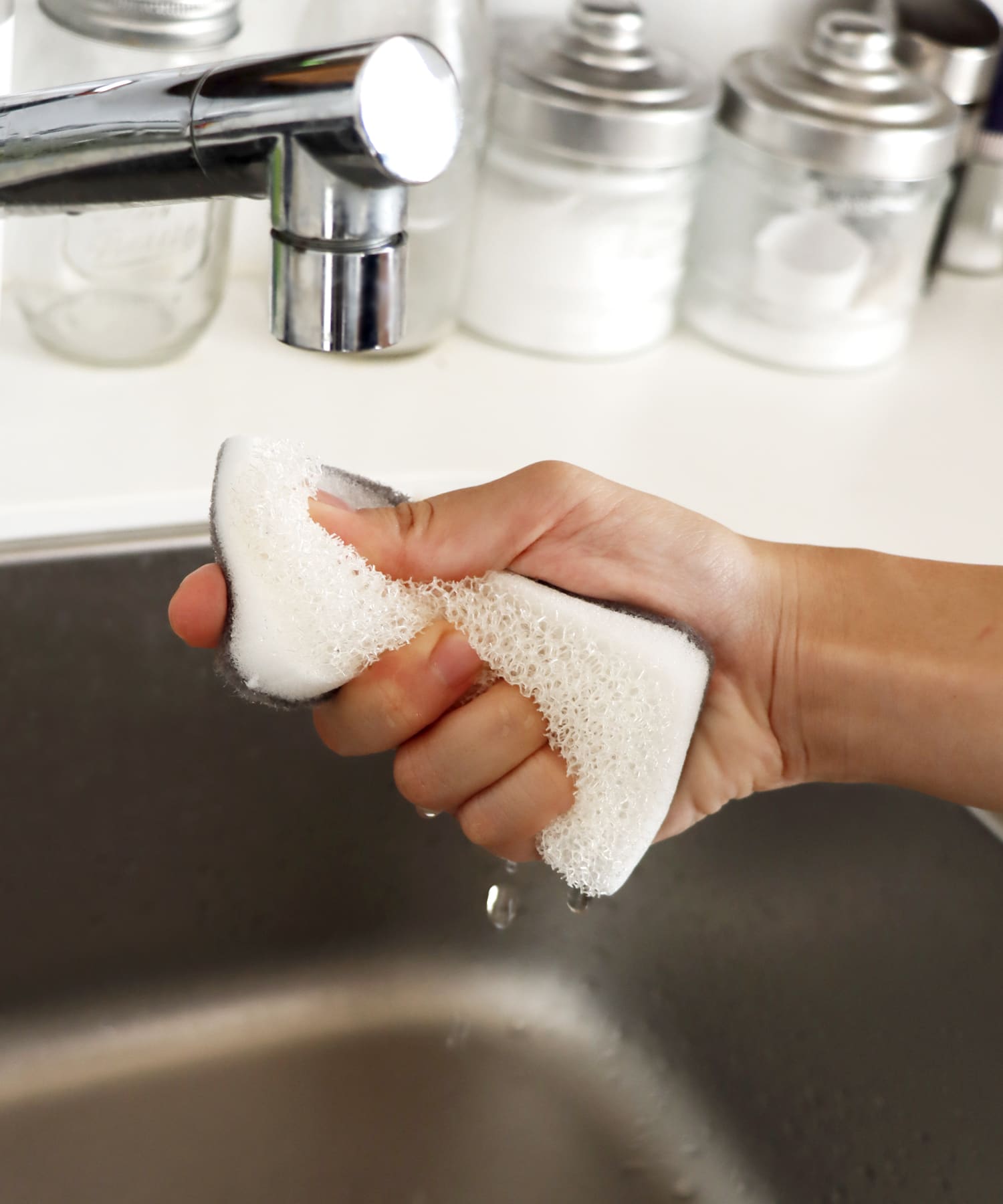 ●研磨材不使用のナイロン不織布で、キズをつけにくくソフトに洗えます。