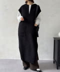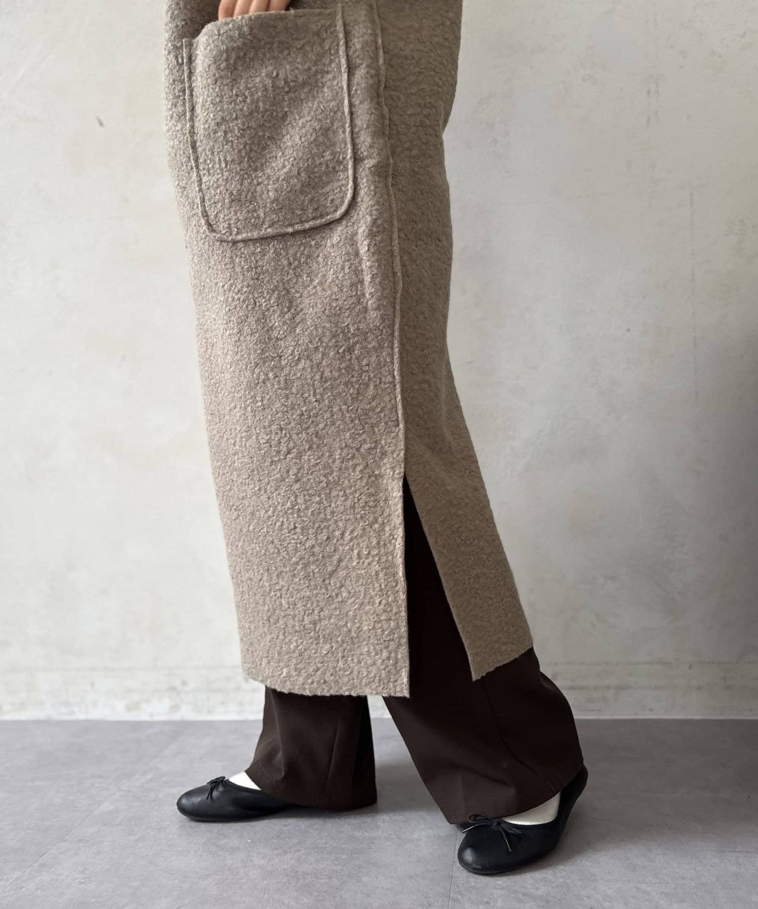 両サイドには深めのスリットが入っており、足さばきが良く動きやすいのも嬉しいポイント。歩くたびにスリットからボトムスが覗き、レイヤードスタイルをさらに楽しむことができます。