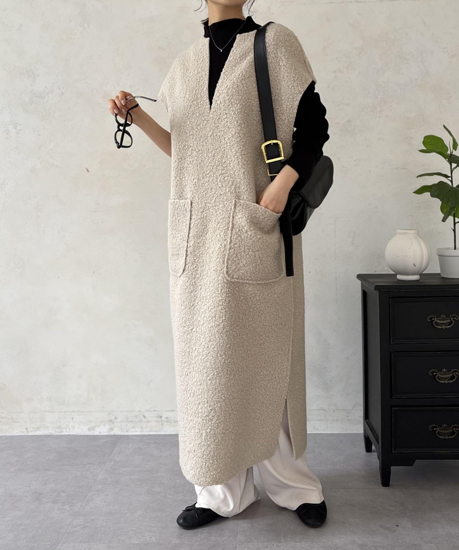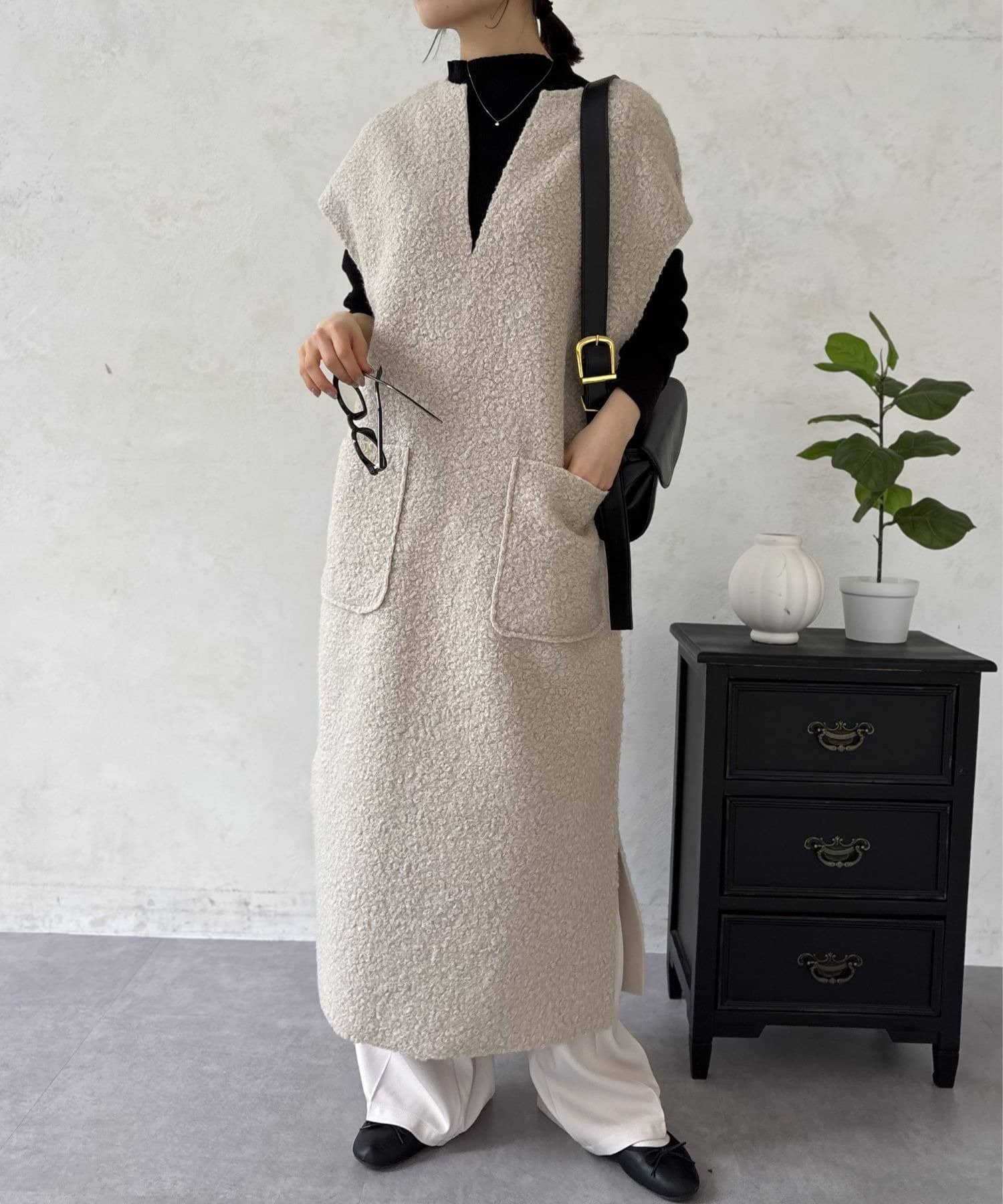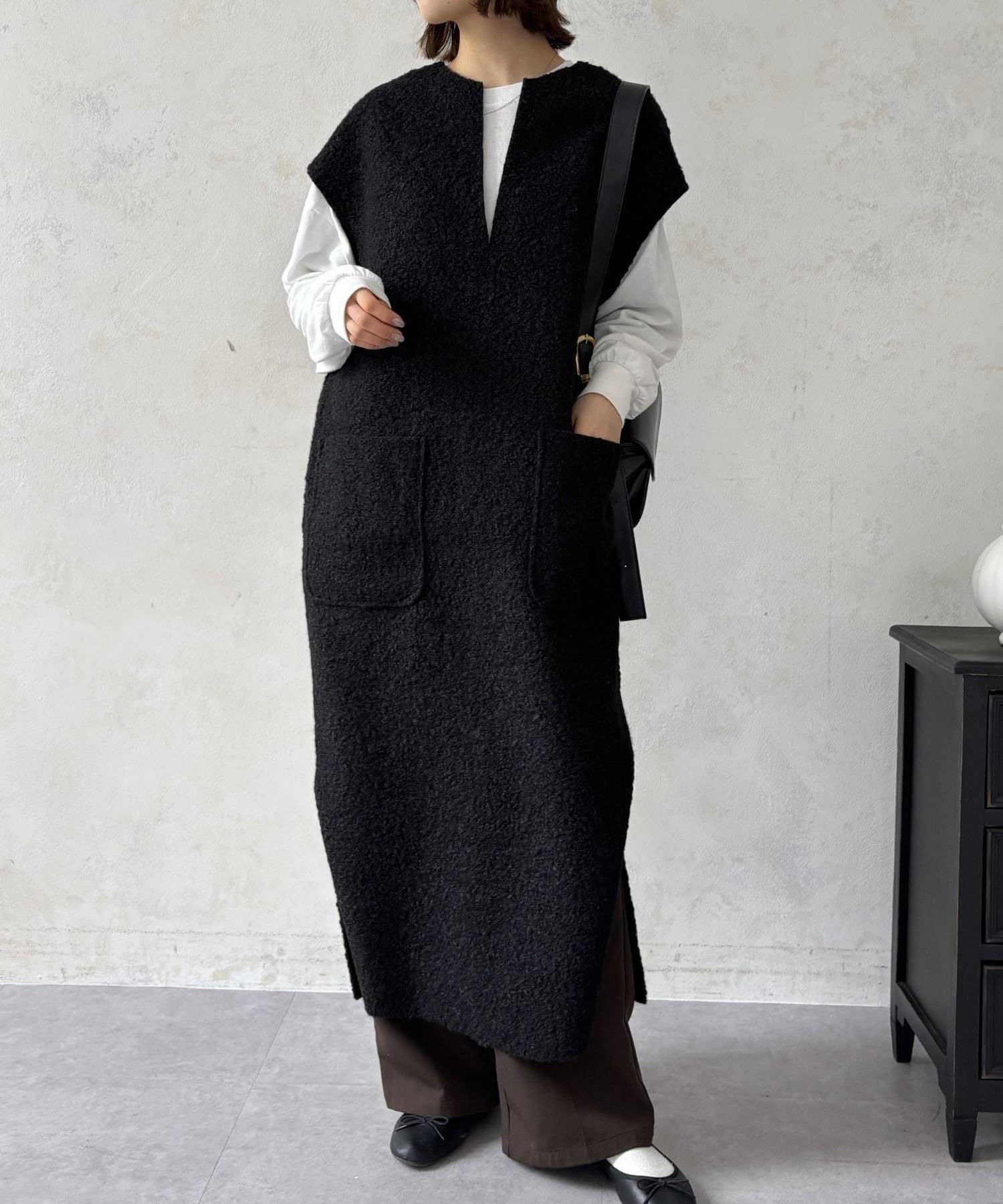 一枚で旬のレイヤードスタイルが完成する、大人のためのキーネックワンピース
