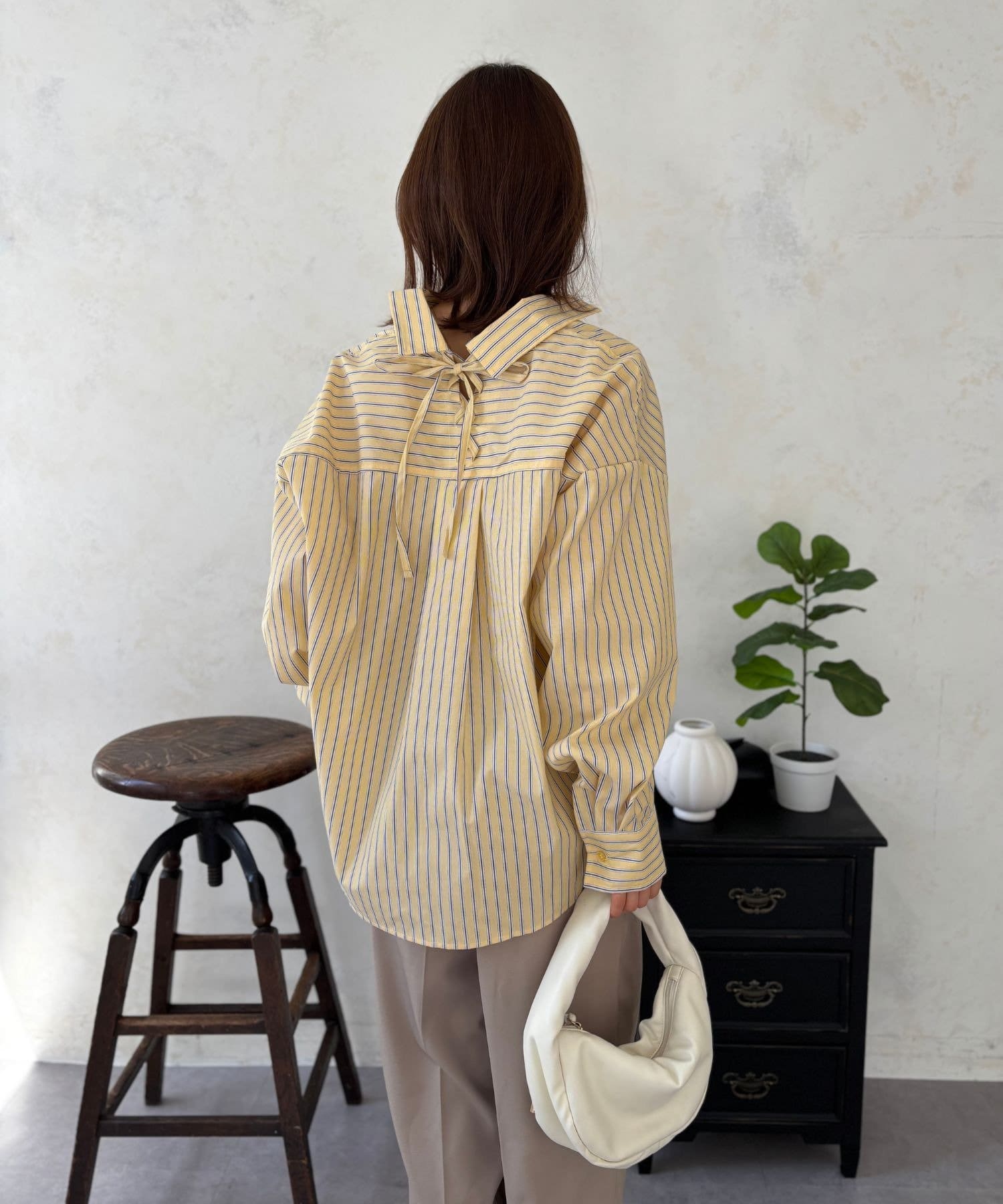 後にリボンが付いていることで、かたくなりすぎずカジュアルにきまります◎