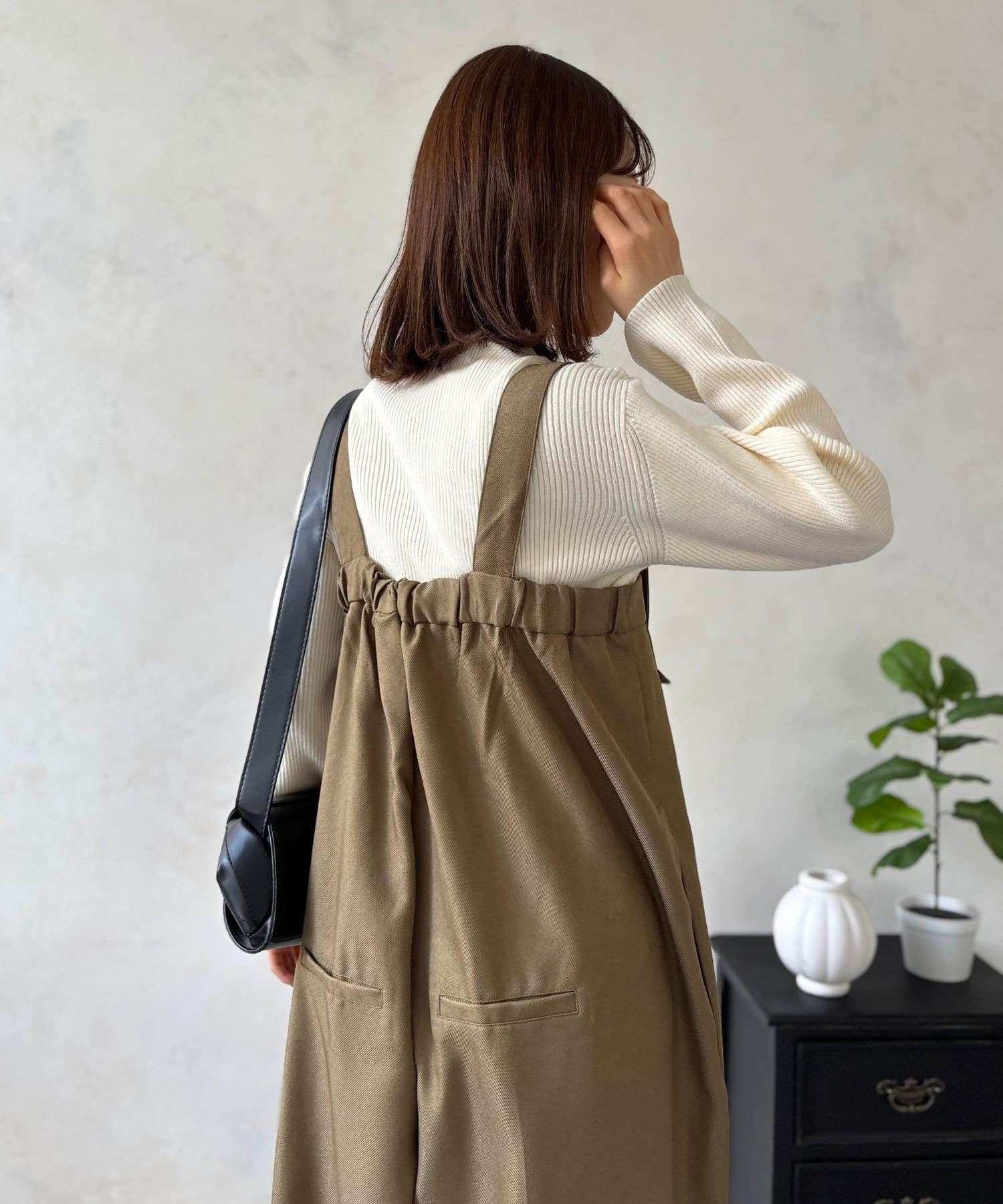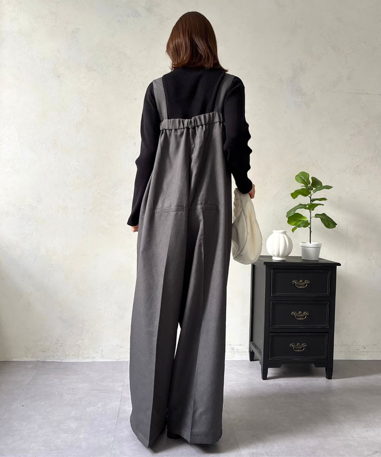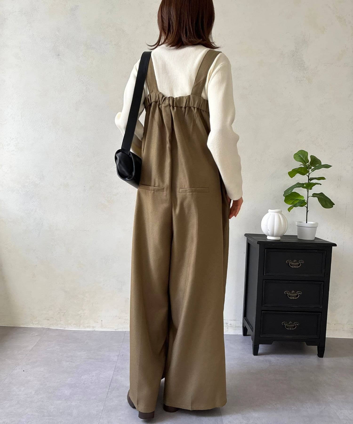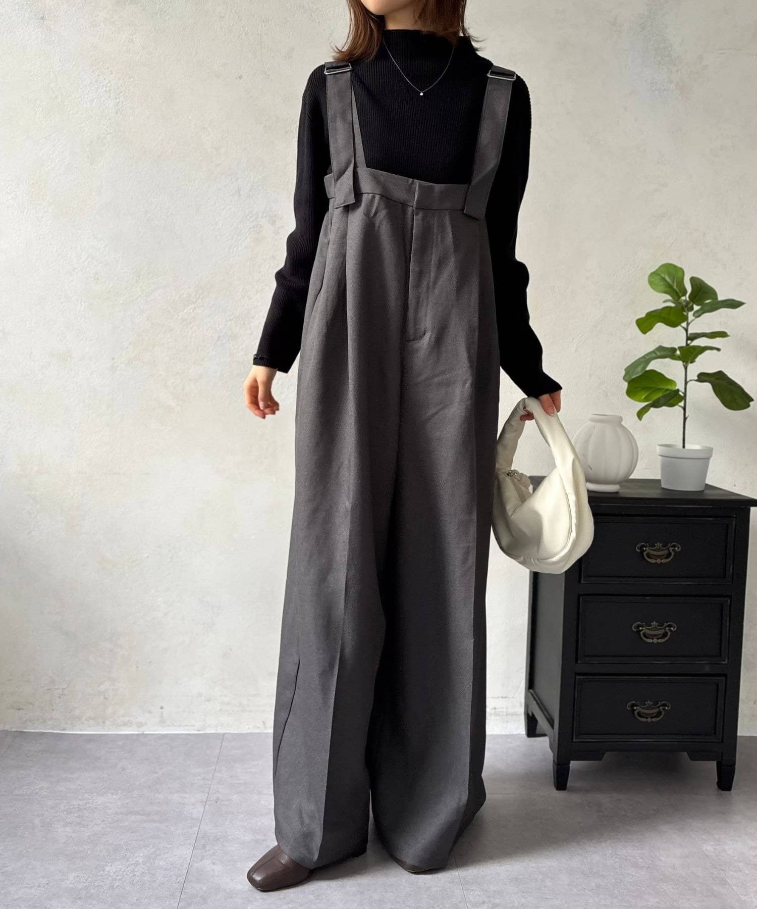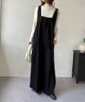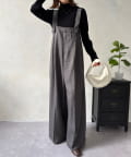 しっかりとした生地感が高見えを叶え、カジュアルなアイテムであるサロペットを、ぐっときれいめで大人な印象に昇華させてくれます。