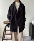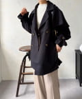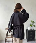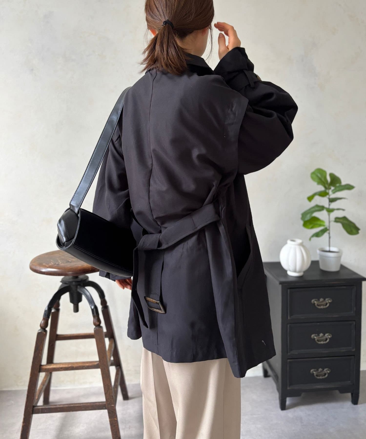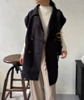 きちんと感のあるダブルボタンのデザインは、前を閉めて付属のベルトでウエストをきゅっとマークすれば、スタイルアップ効果も抜群のきれいめスタイルが完成します。