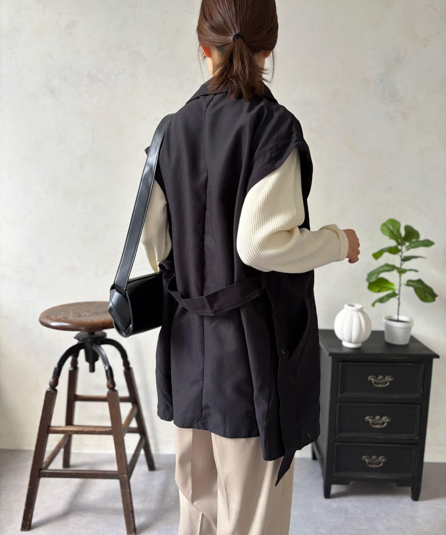 袖を外せば、あっという間にトレンドのロングジレに変身します