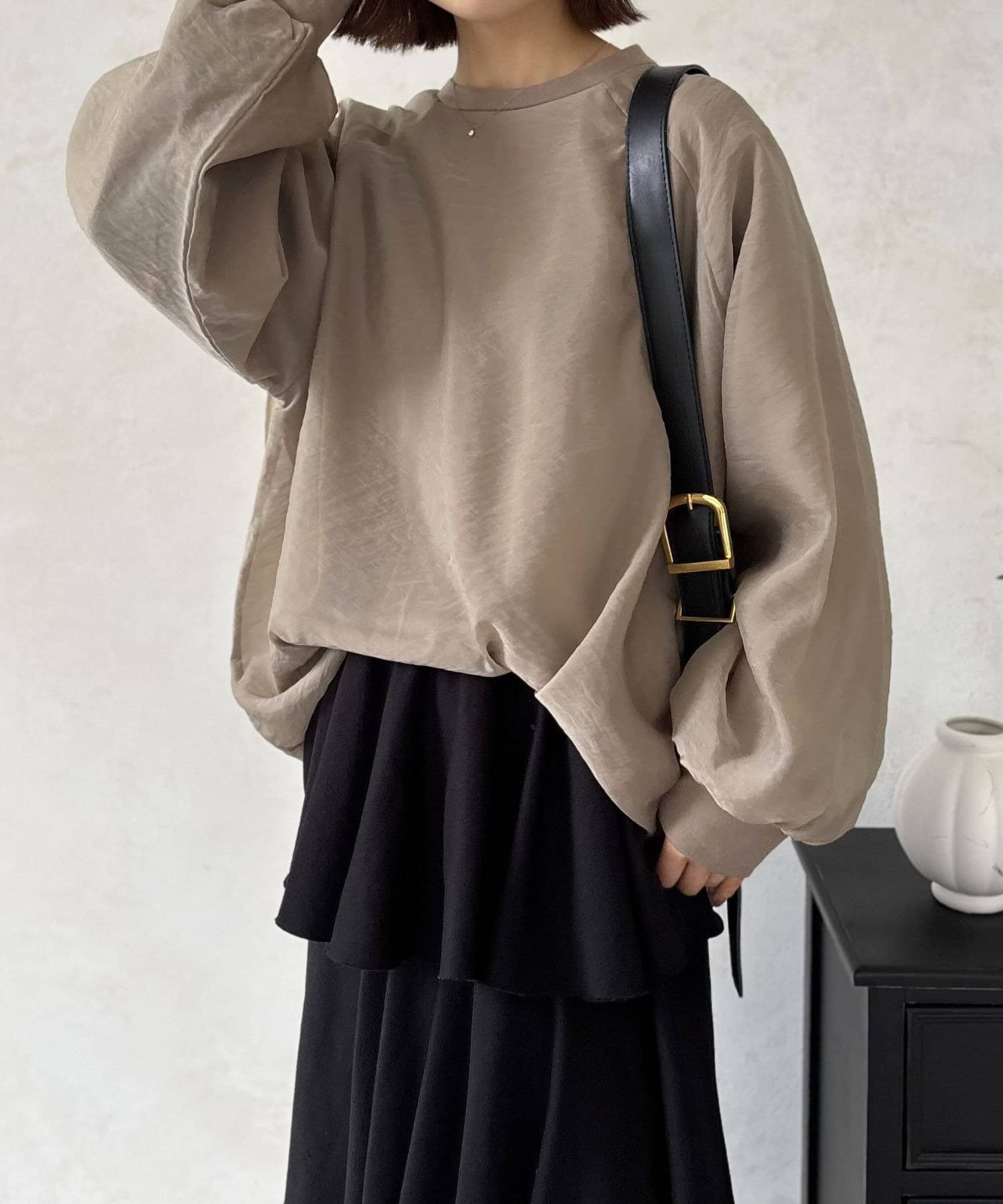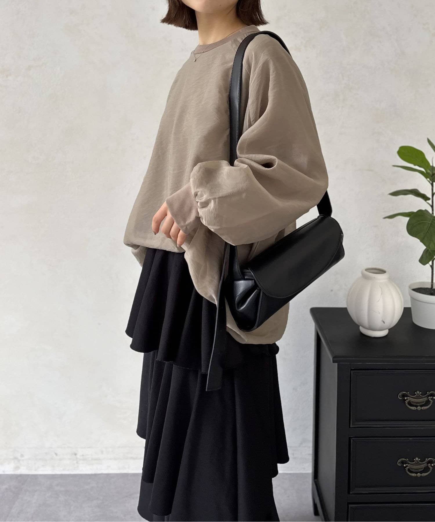 気になる部分をまるっとカバーしてくれるドルマンスリーブ。ゆるっとした落ち感がこなれた雰囲気を演出しながら、気になる肩まわりや二の腕のラインを拾わず、華奢に見せてくれる効果も期待できます。
