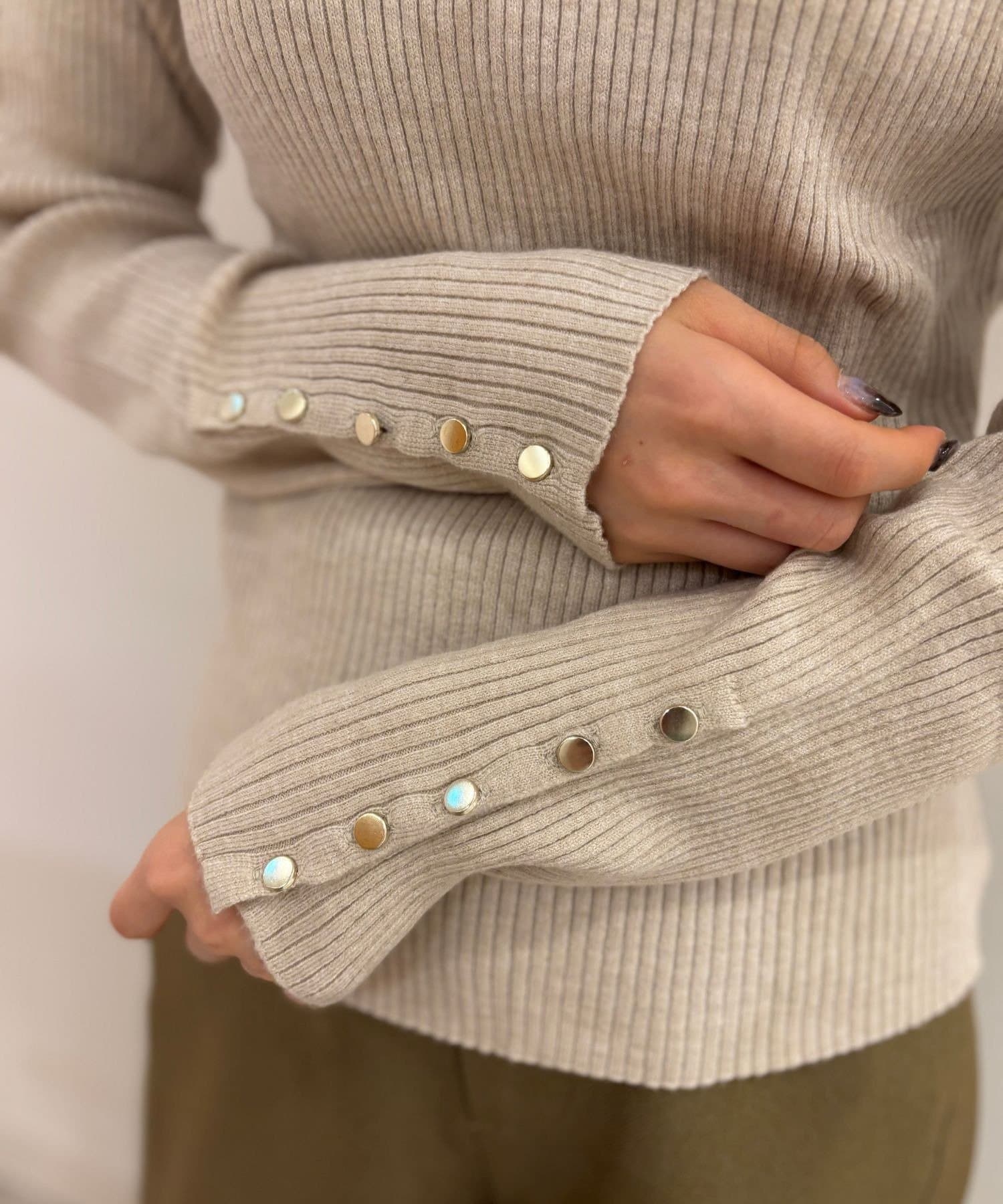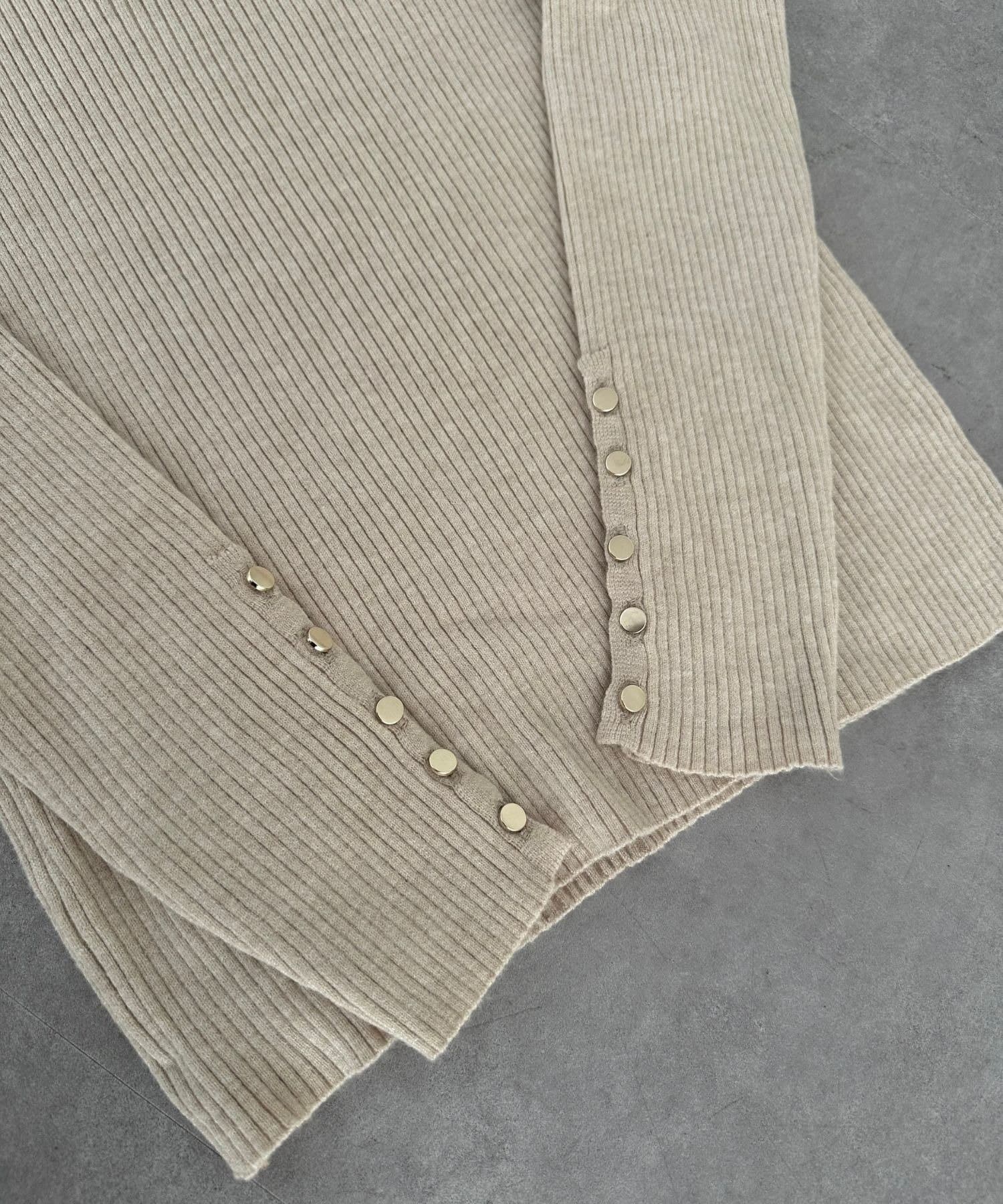 リブ縦ラインを強調するリブ編みで、スタイルアップ効果も期待できます。体のラインを拾いすぎない、程よいフィット感◎