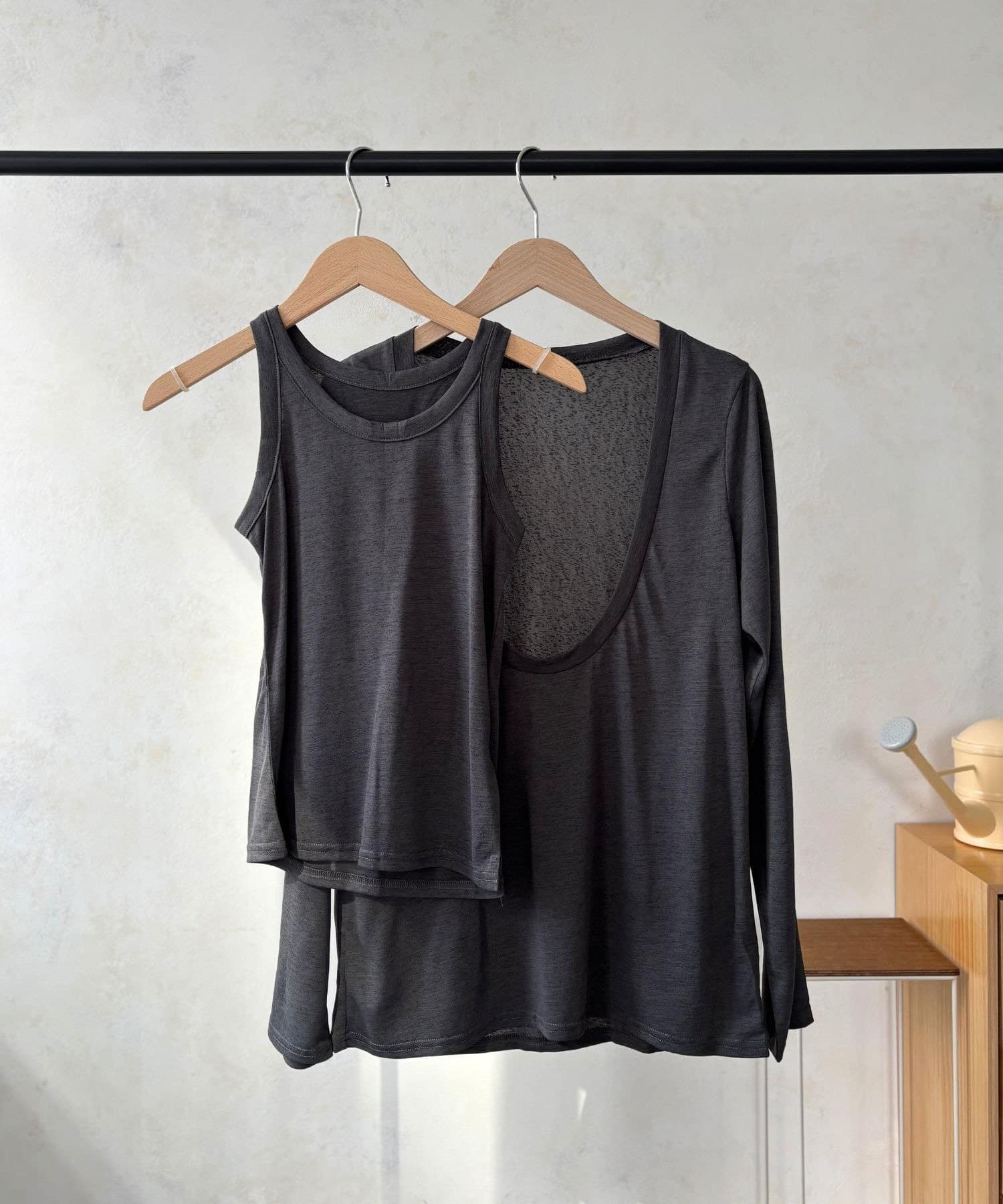 暑い季節には一枚でさらりと着ていただけますし、シャツやカーディガン、ジャケットのインナーとしても大活躍。シーズンレスで使えるので、クローゼットに欠かせない一枚になること間違いありません。