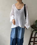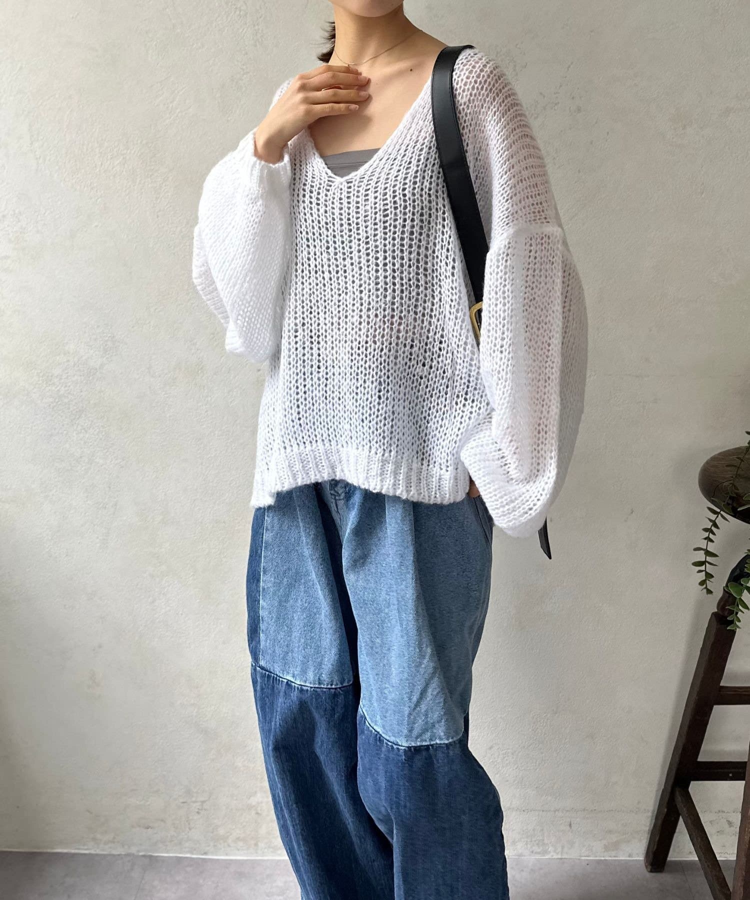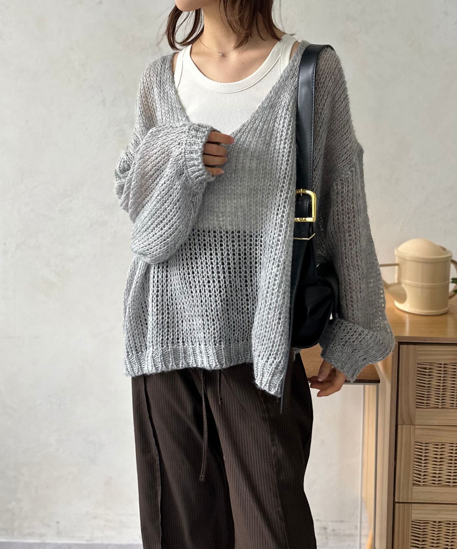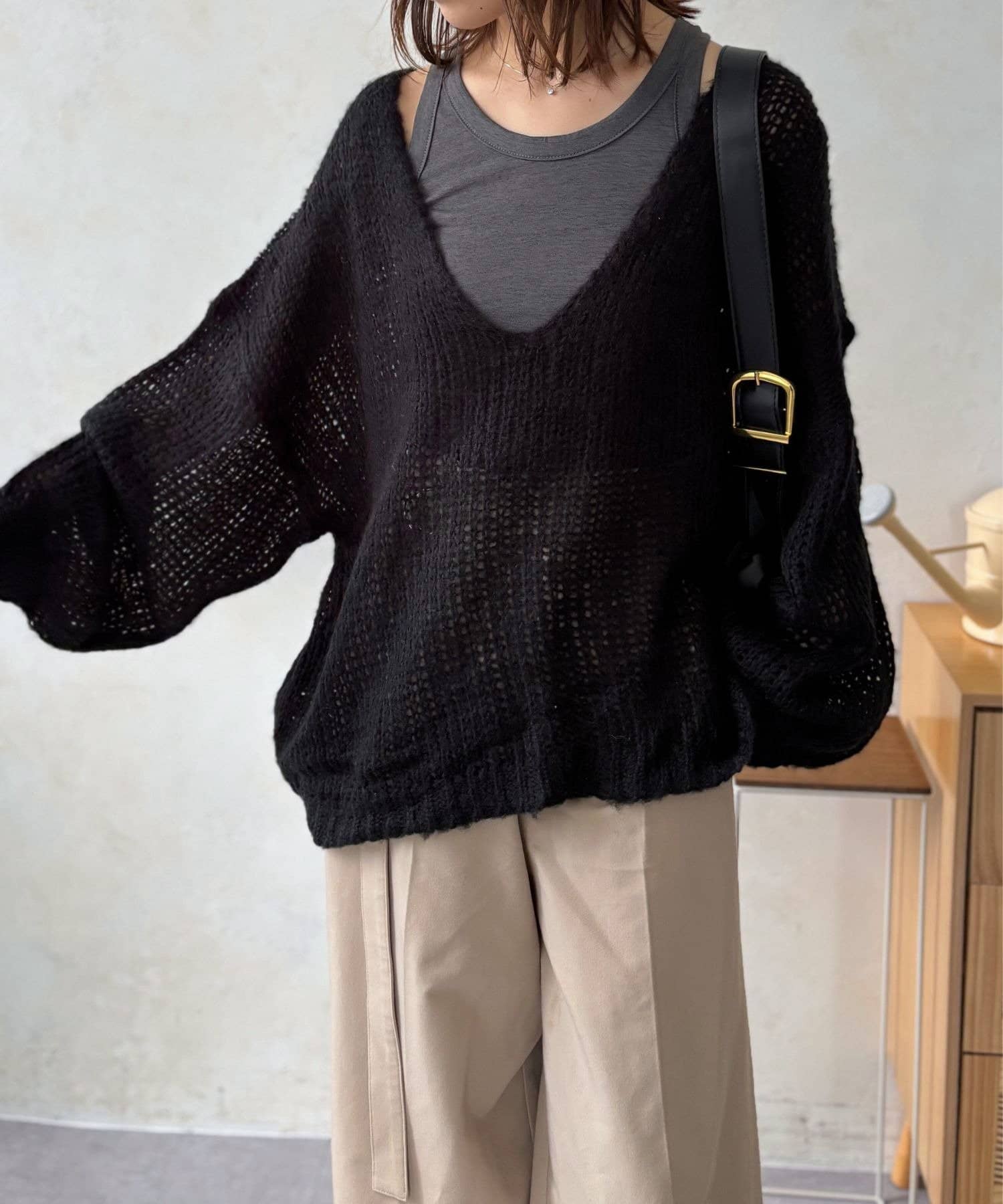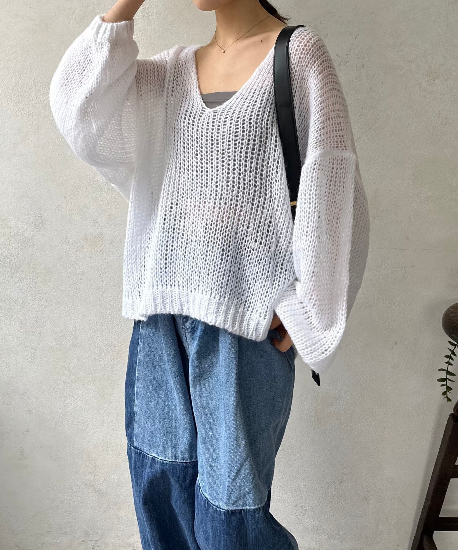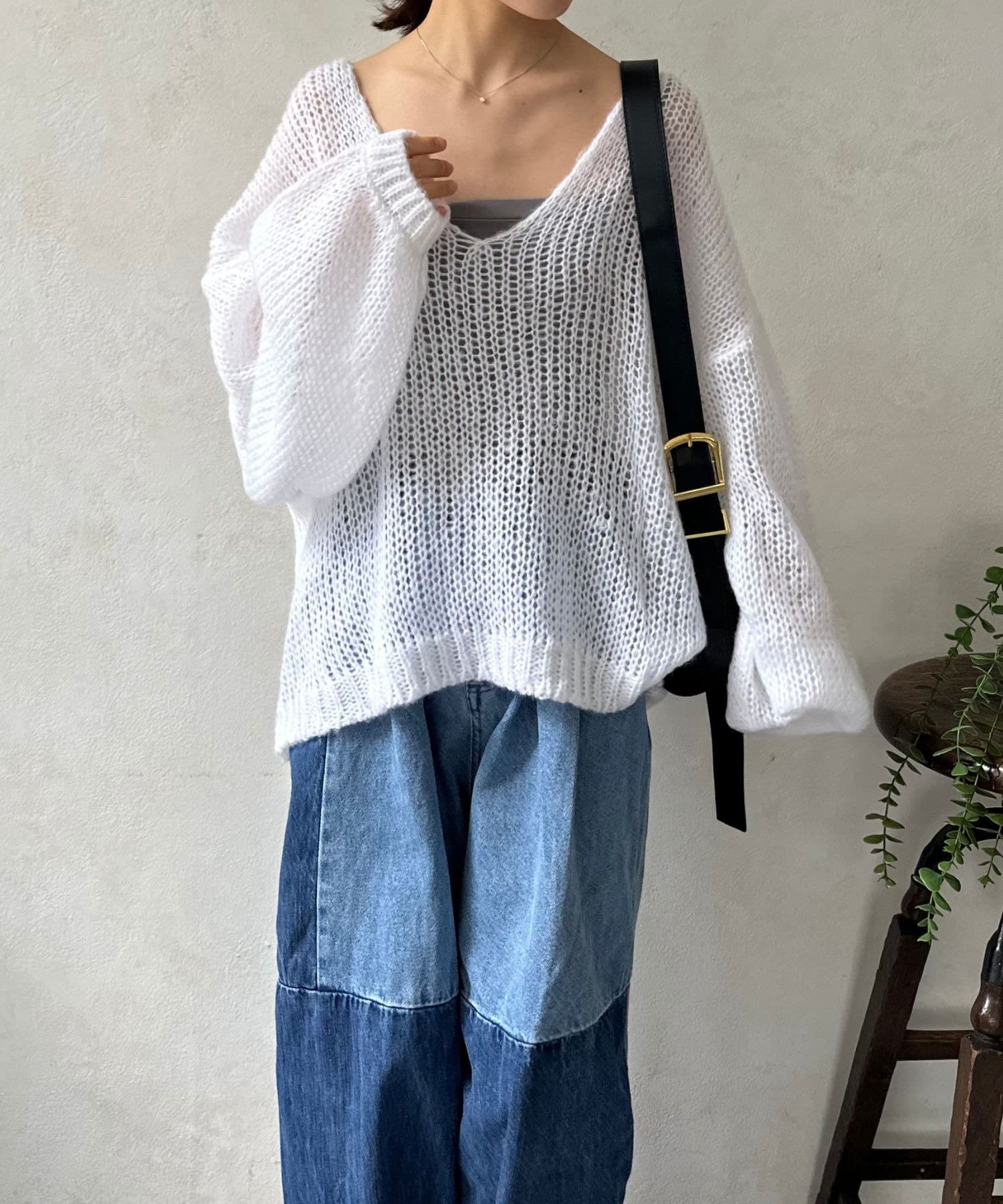 着るだけでこなれ感と華奢見えが叶う、大人のための透かし編みVネックプルオーバー