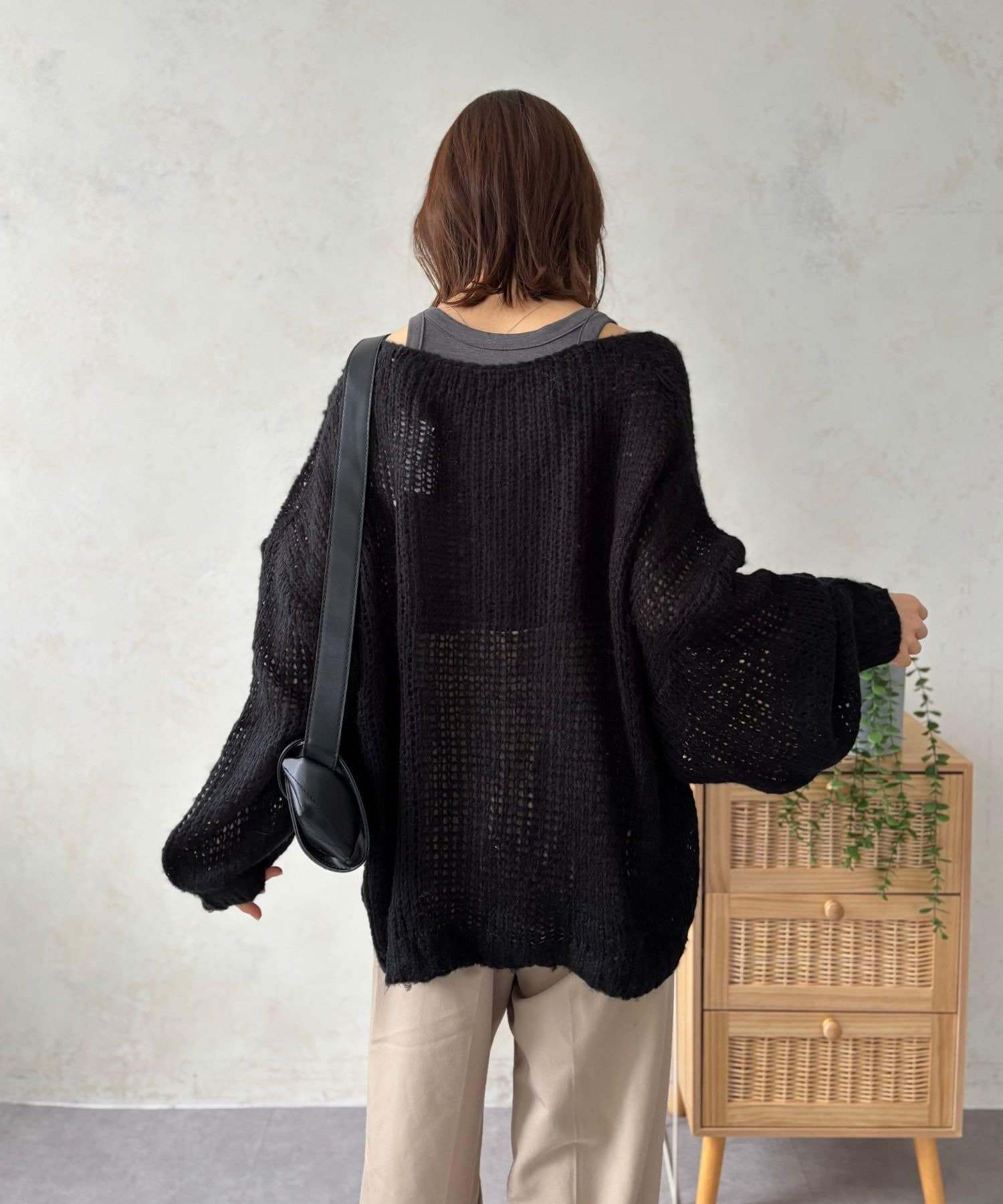 程よいシアー感がトレンド感を演出し、インナーとのレイヤードスタイルを存分に楽しめる一枚です。