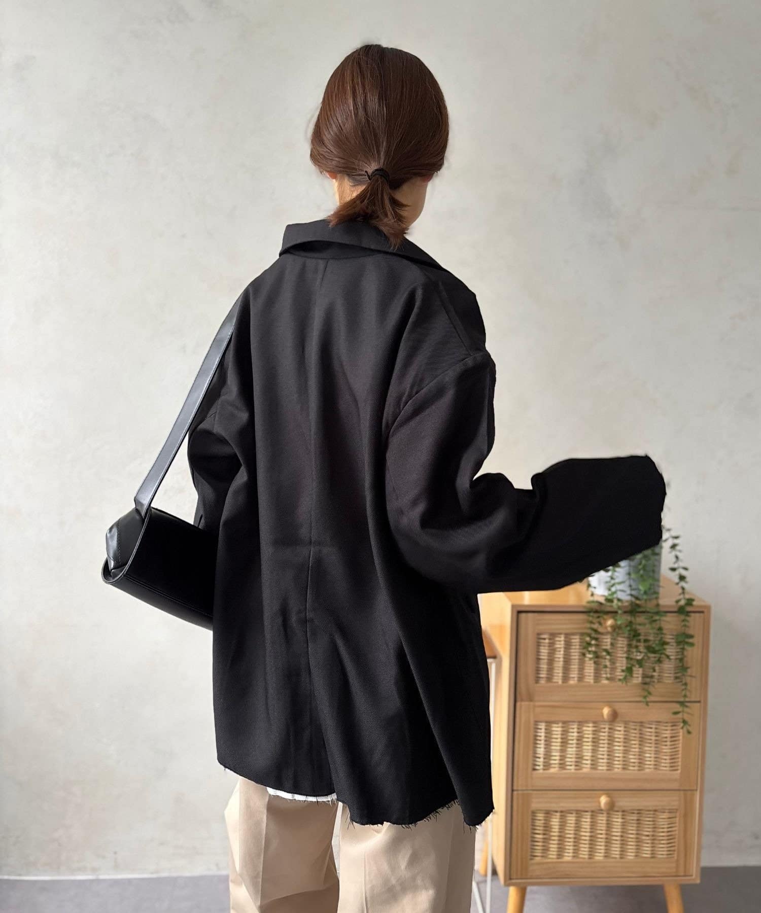 ダボっとした大きめシルエットですが、洋服に着られる事なく綺麗に着こなせます!
