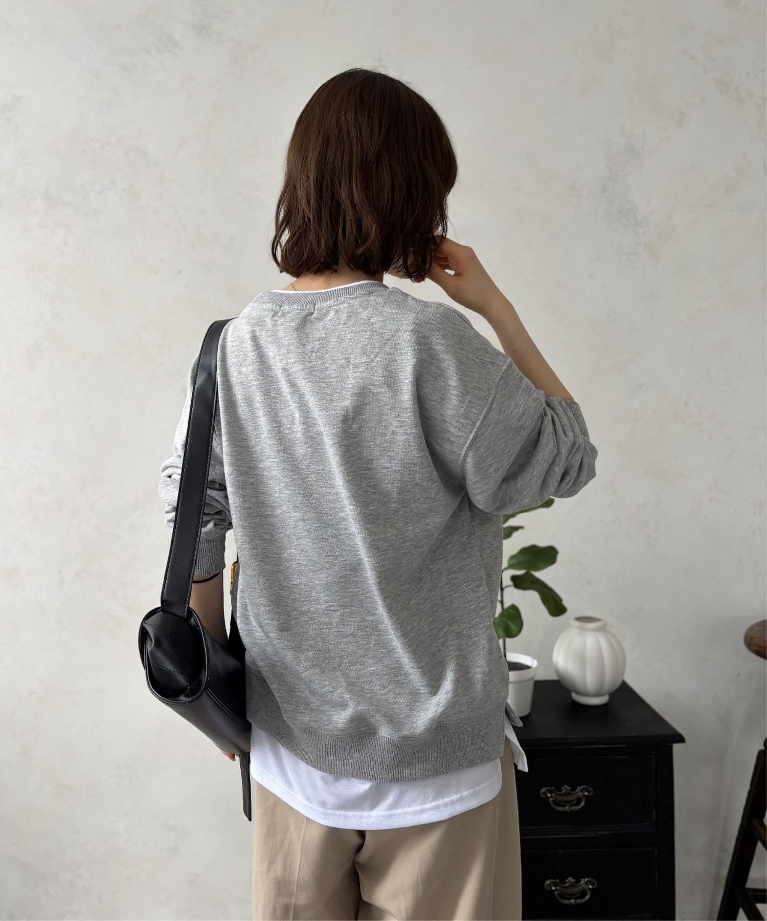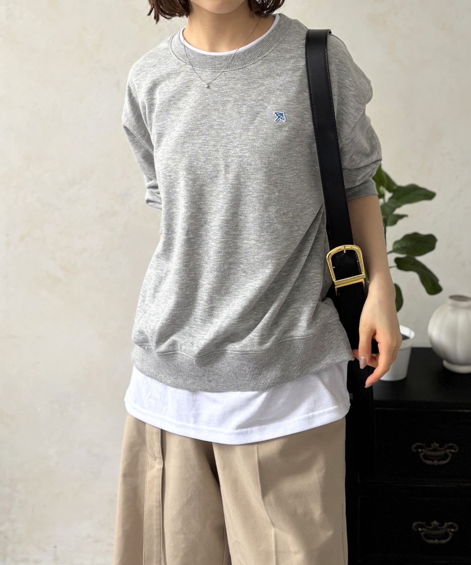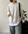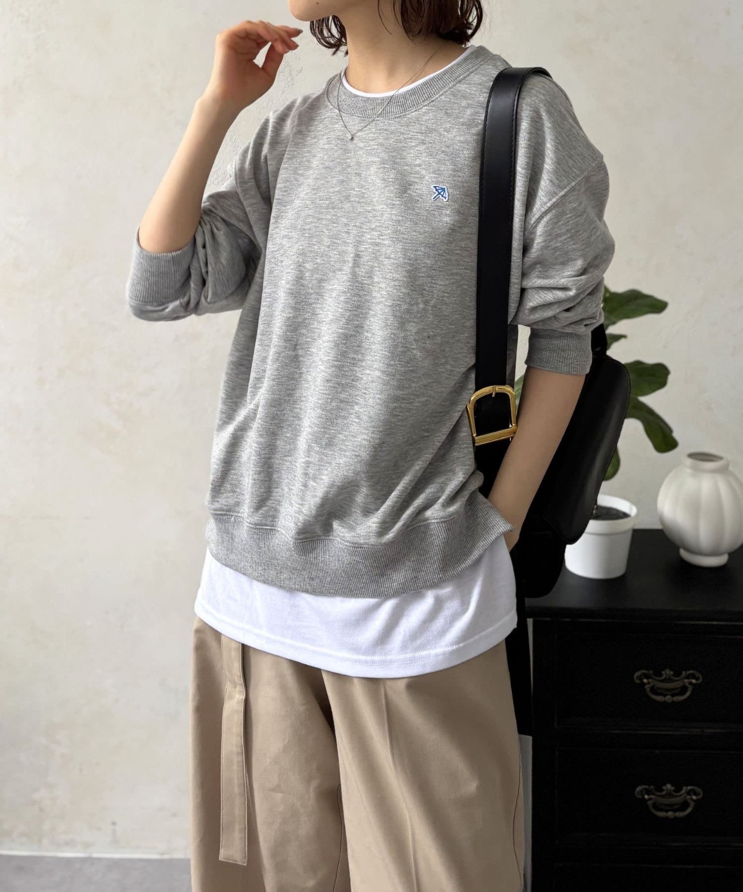 まるでスウェットの下に白Tシャツを重ね着したかのようなデザインで、これ一枚着るだけでトレンド感のあるこなれたスタイルが完成します。