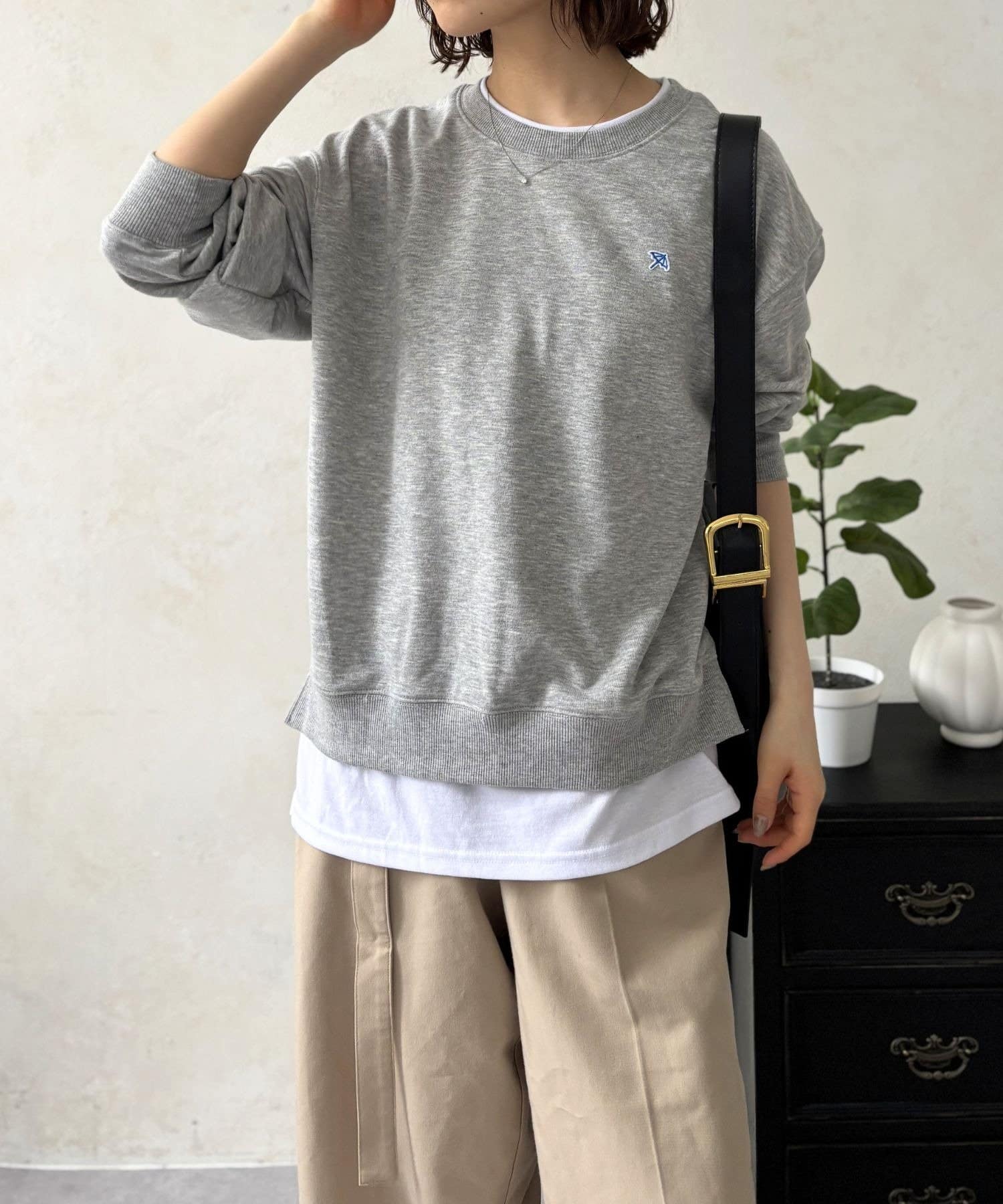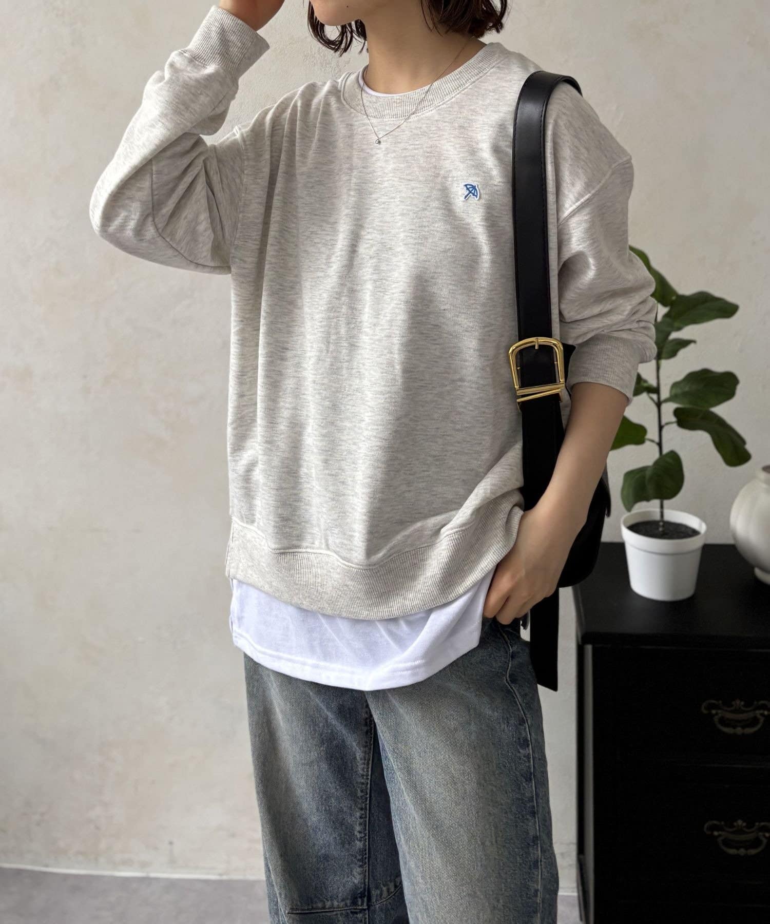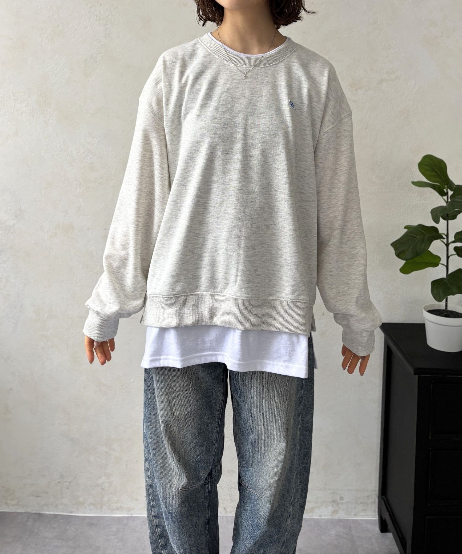 まるでスウェットの下に白Tシャツを重ね着したかのようなデザインで、これ一枚着るだけでトレンド感のあるこなれたスタイルが完成します。