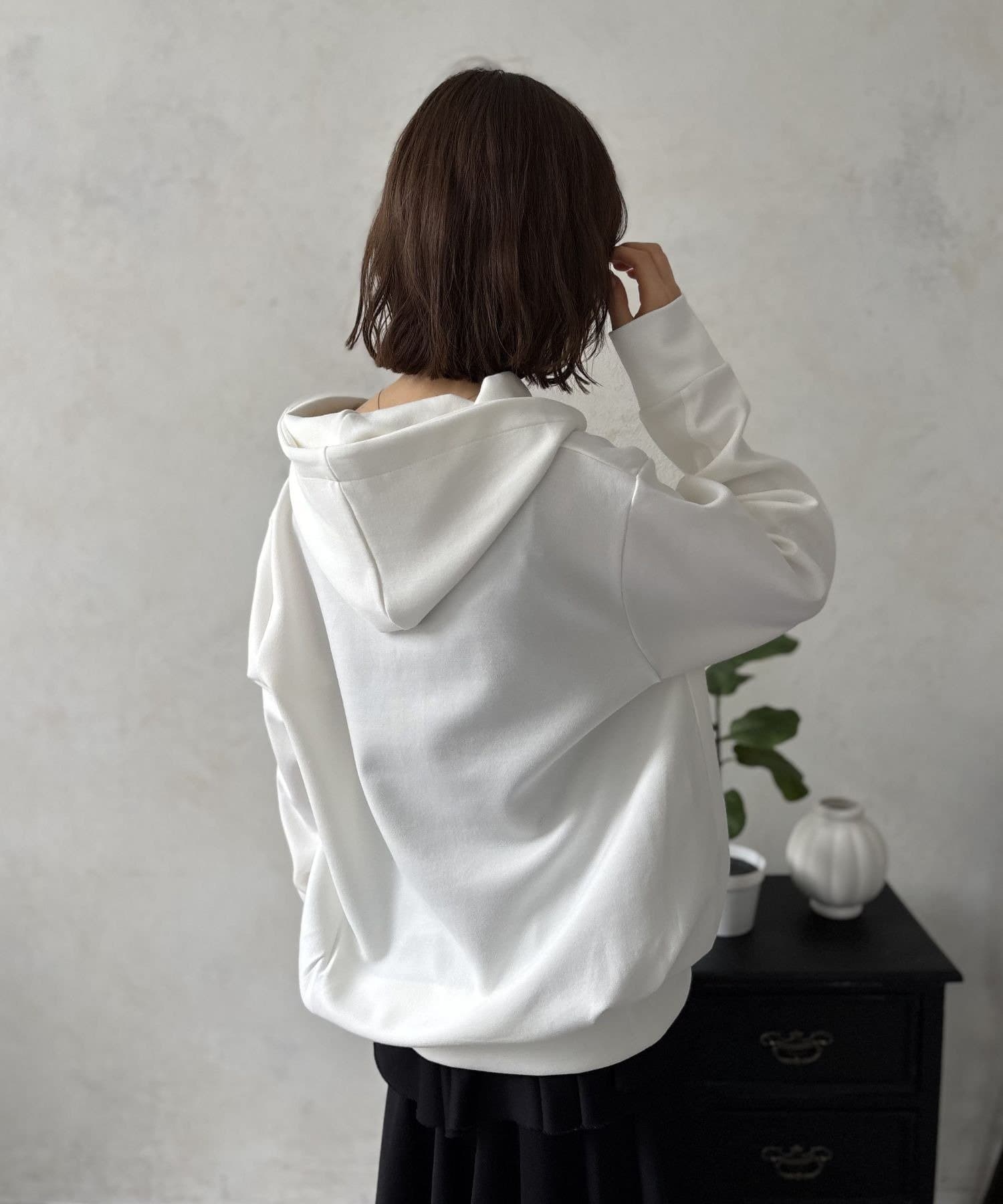 首元は立体的なフードがしっかりと立ち上がり、顔周りをすっきりと見せてくれる嬉しい小顔効果も期待できます。