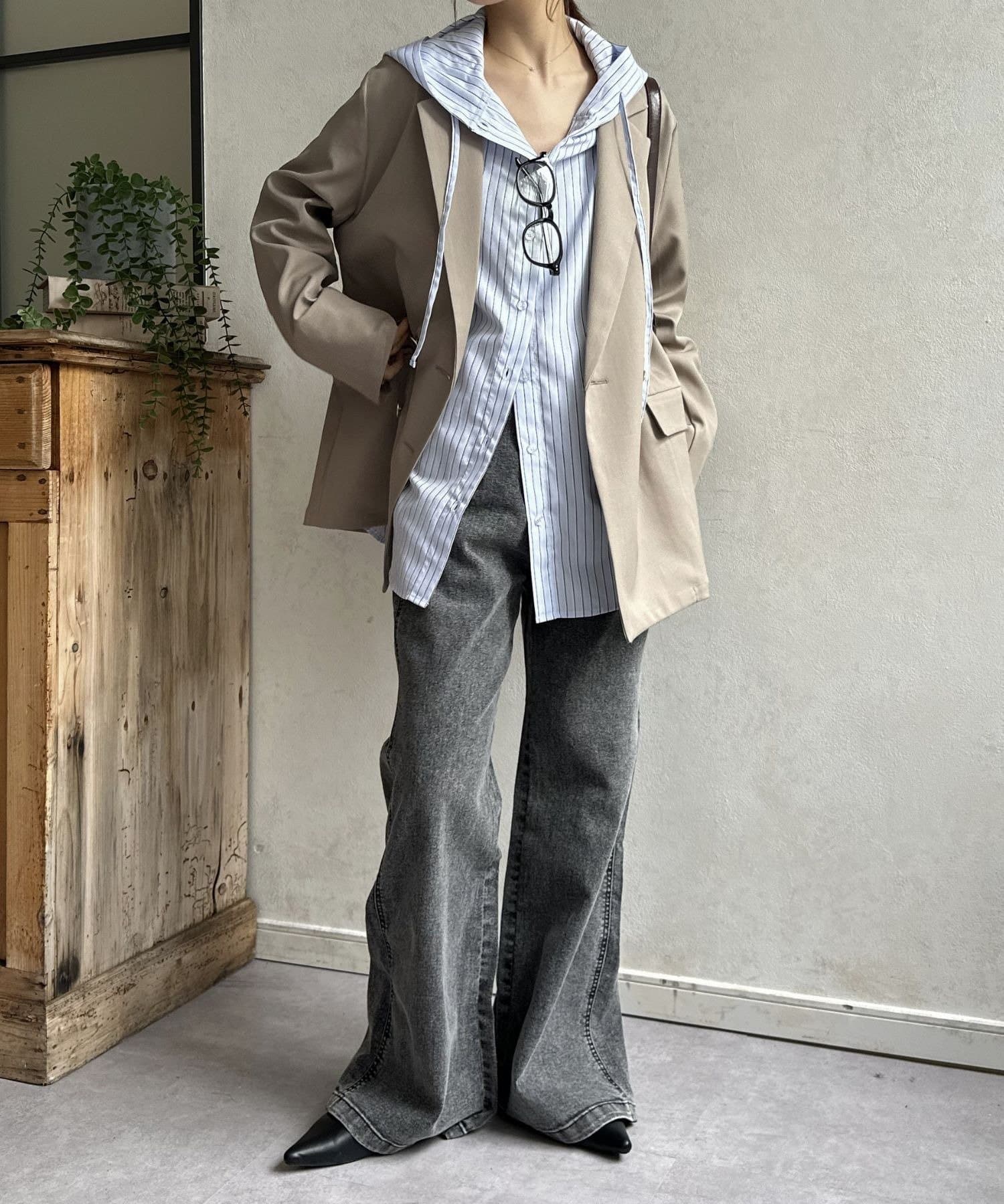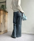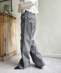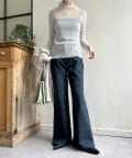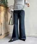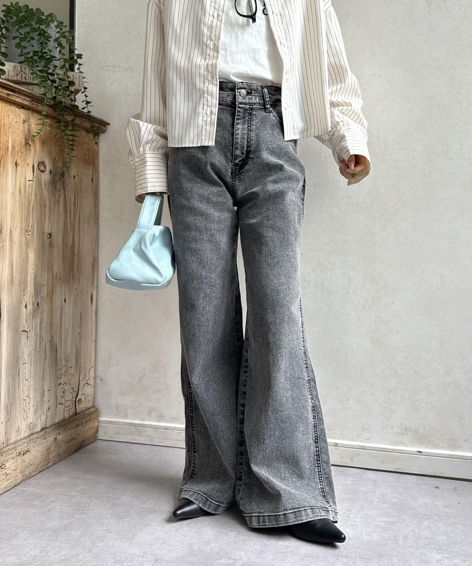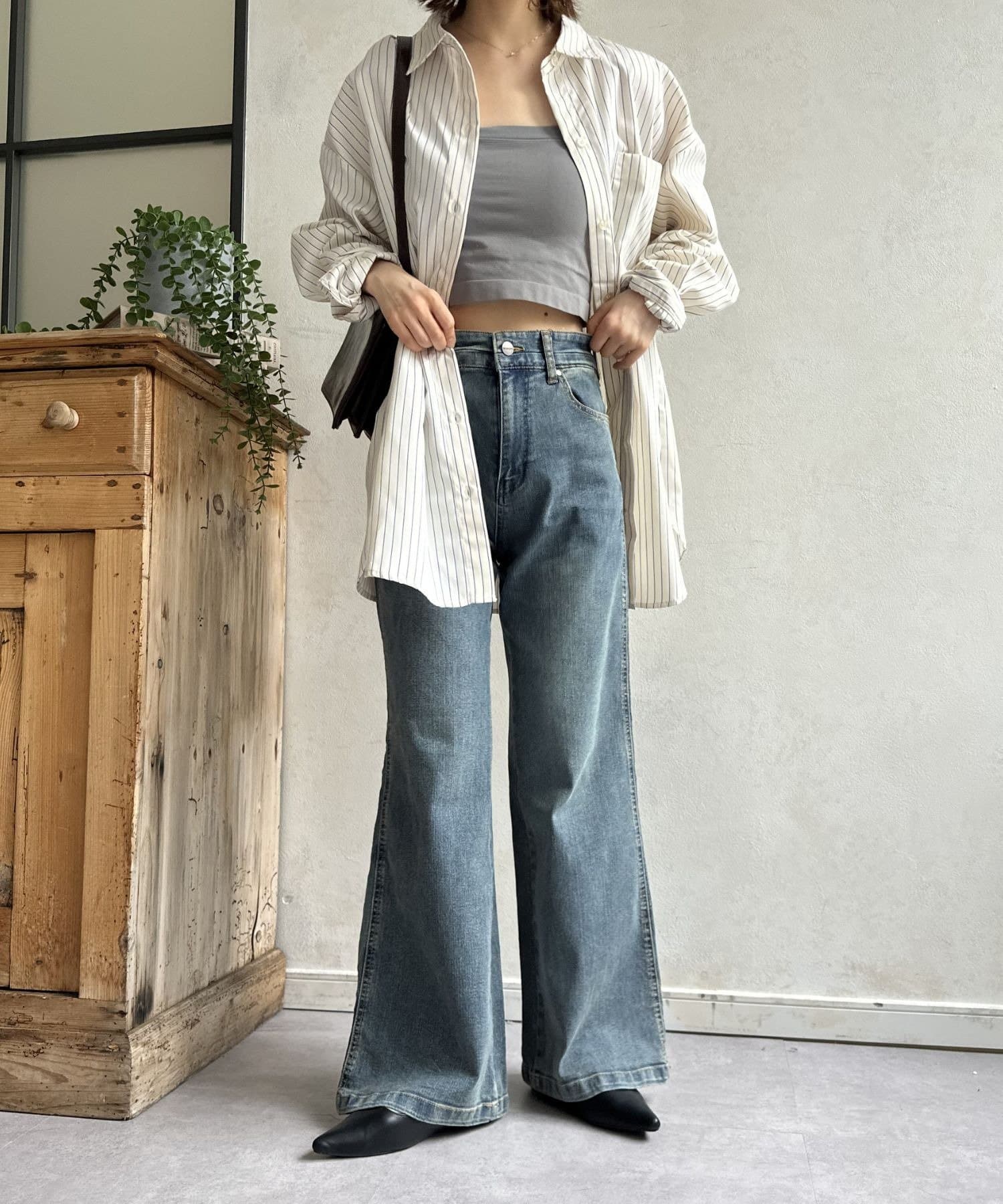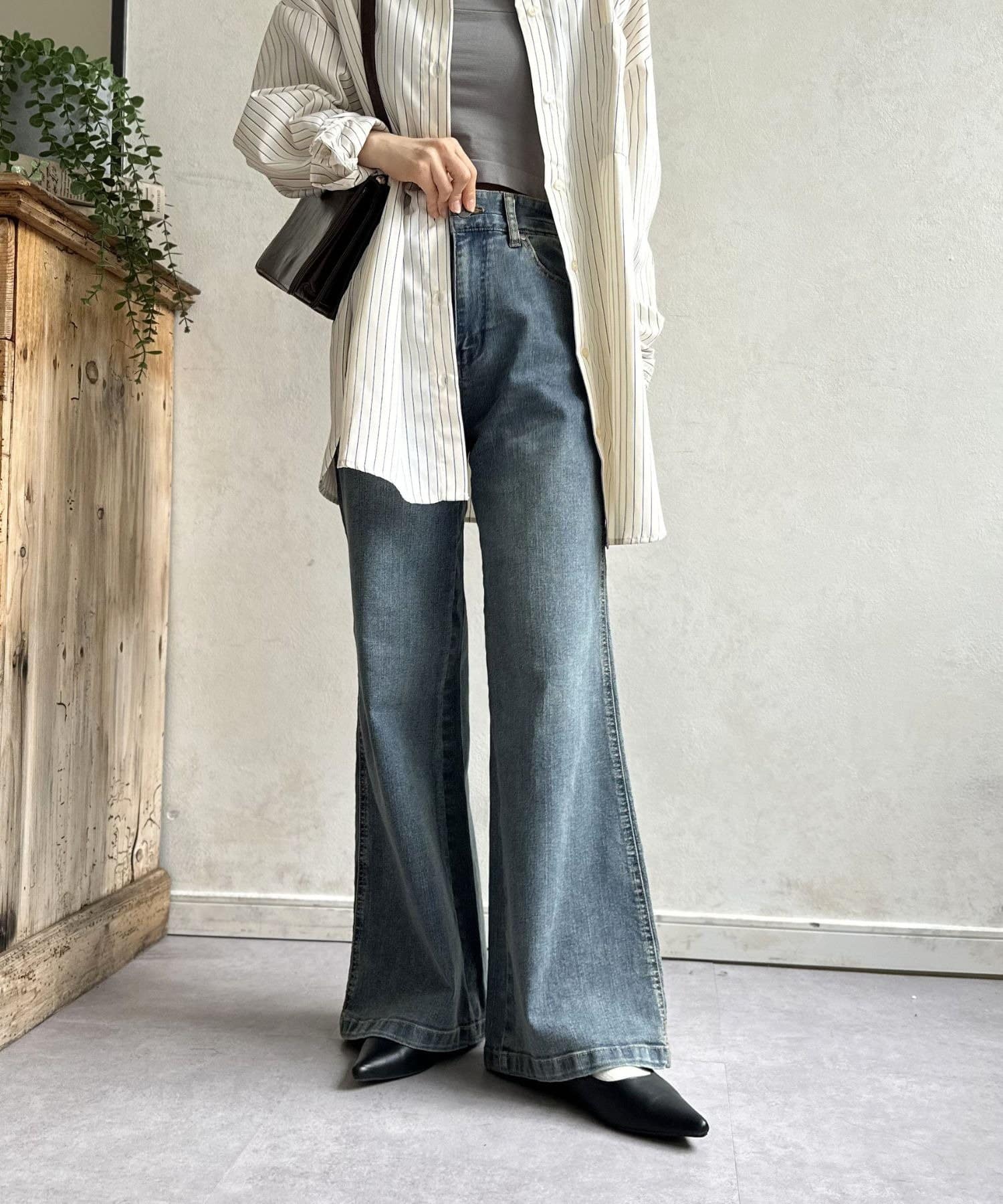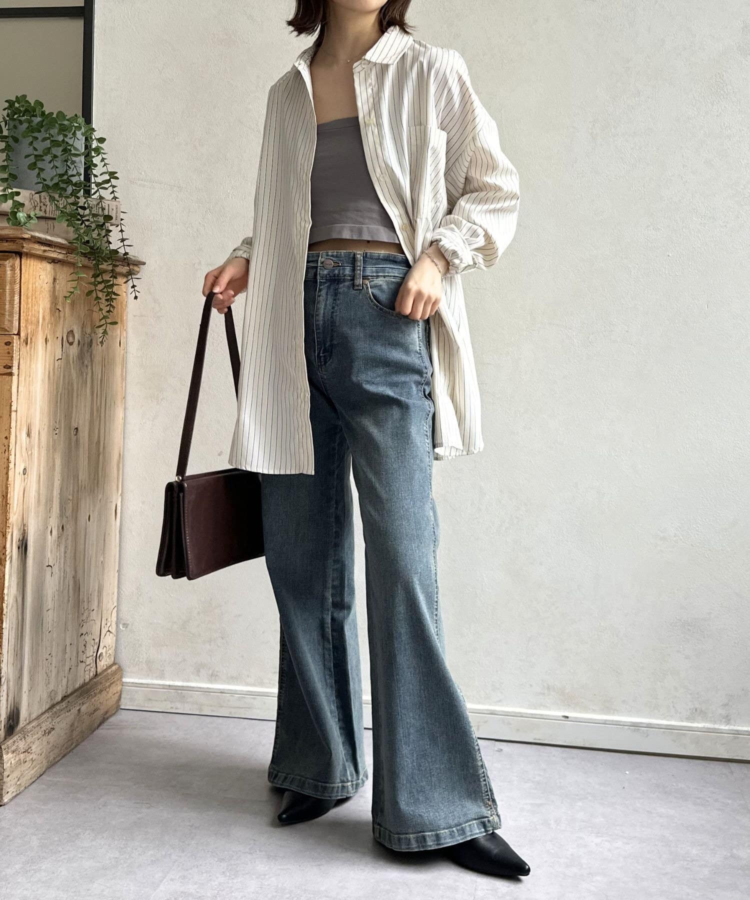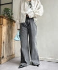 シンプルなTシャツやカットソーを合わせるだけでも、デニムの美しいシルエットが際立ち、こなれた雰囲気に仕上がります。