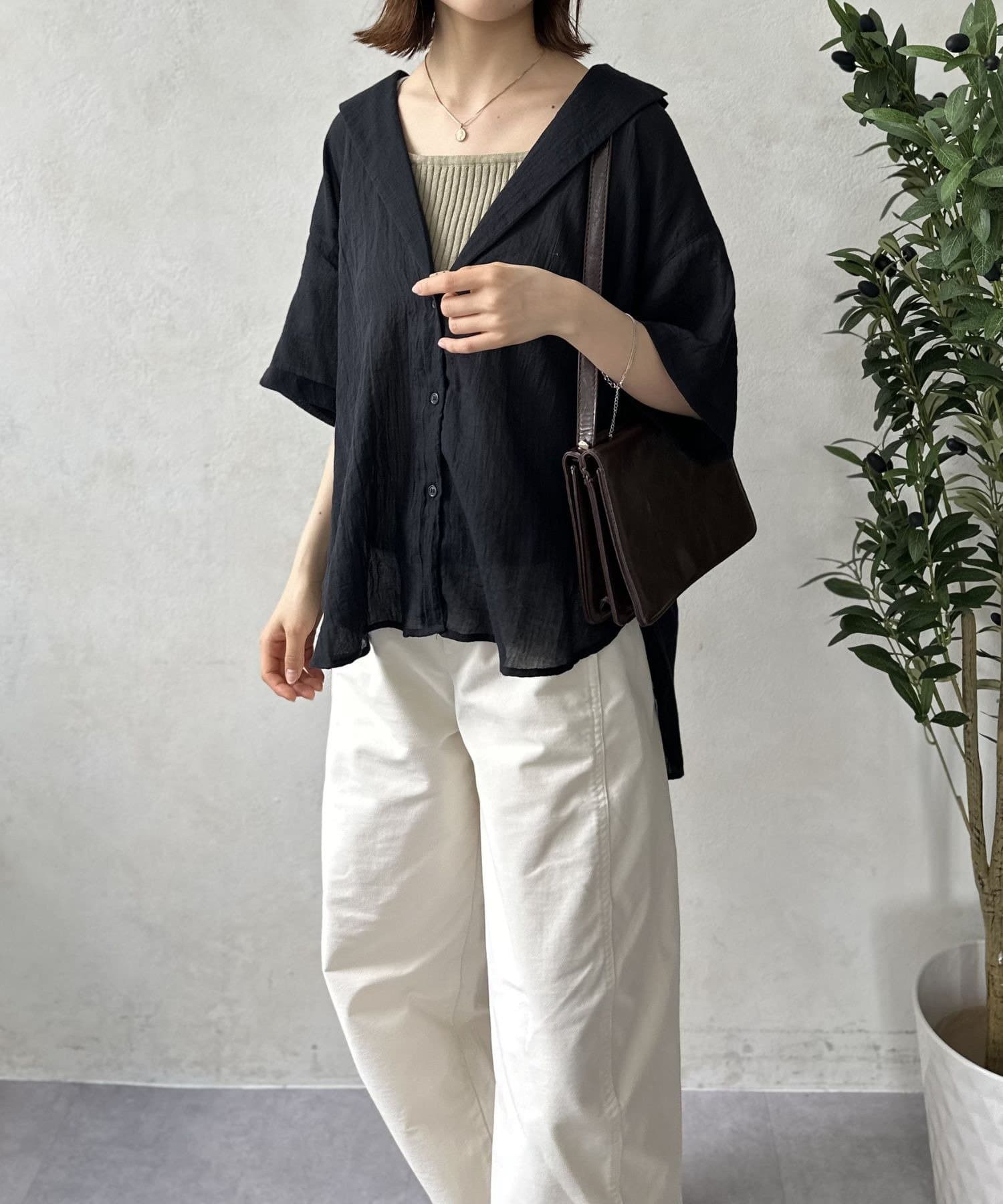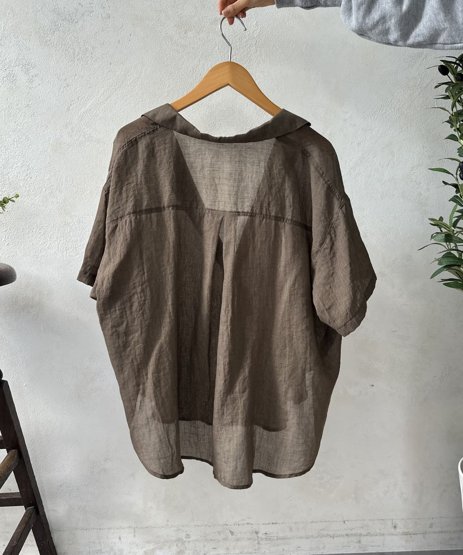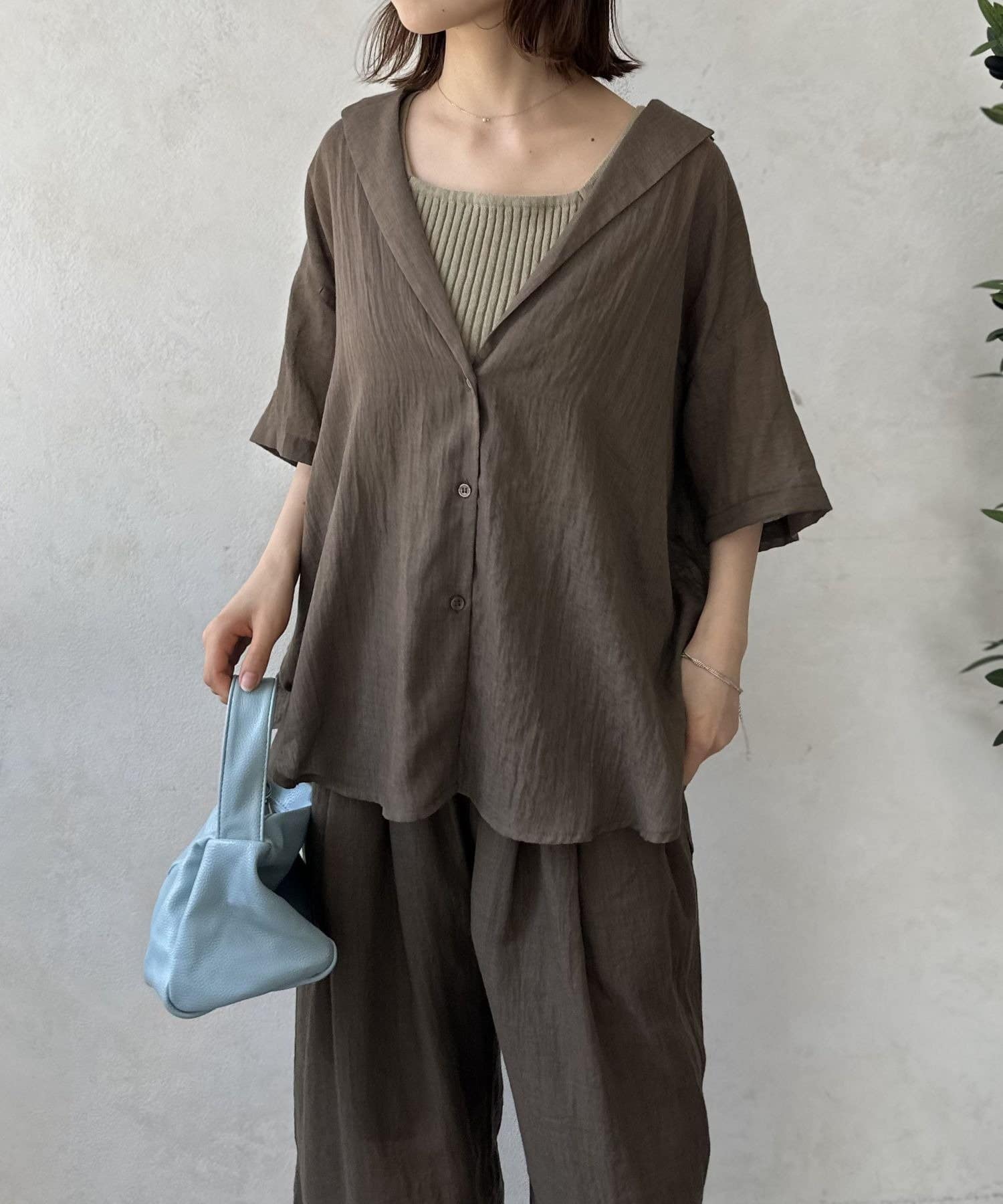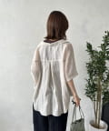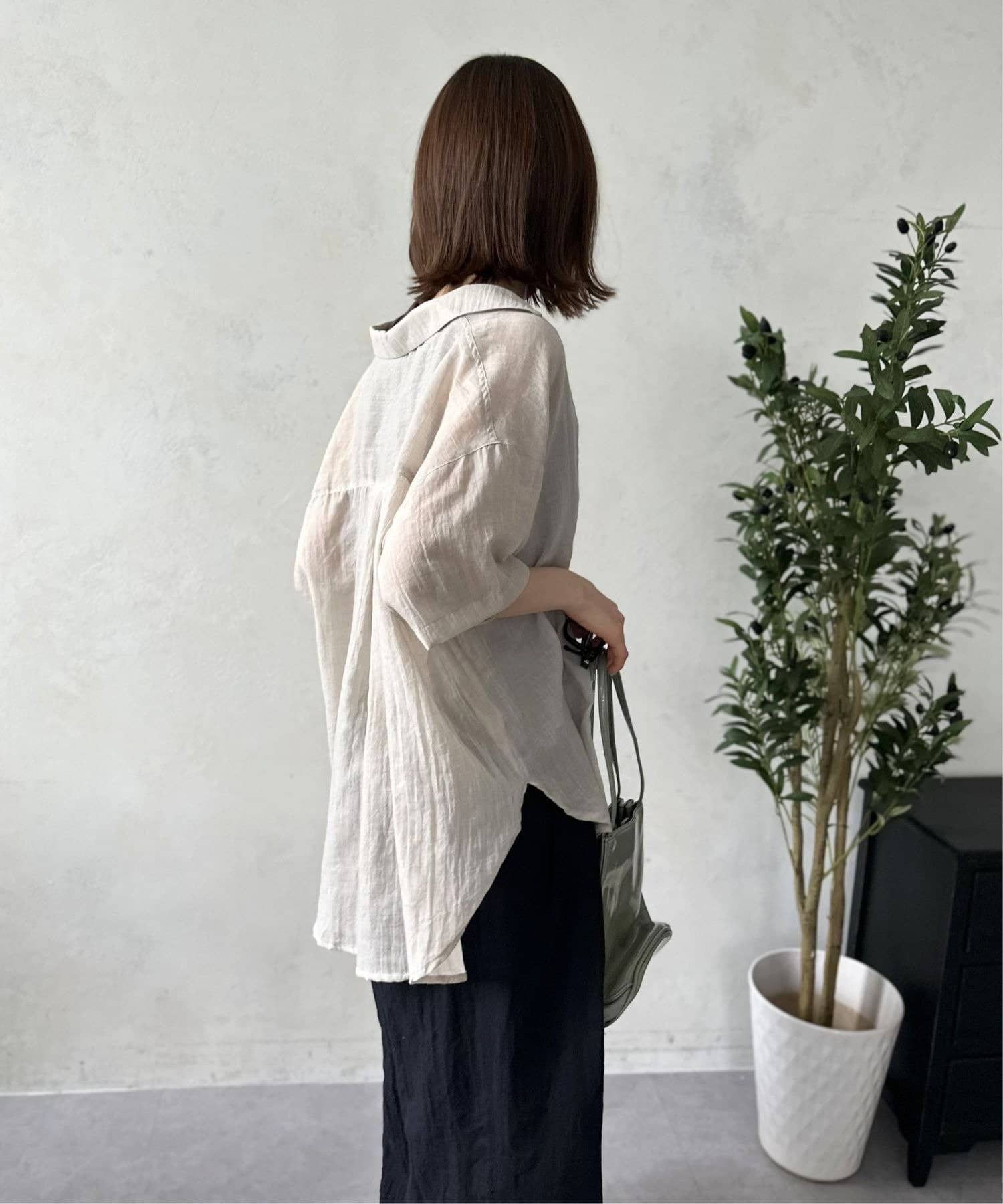 風をはらむようなエアリーな生地感で、肌寒い朝晩や冷房が効いた室内でさっと羽織るのにまさに最適。シャツのきちんと感とカーディガンの手軽さを両立した、万能アイテム。
