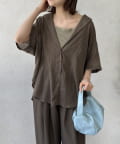 ボタンを全て開けてラフに羽織るのはもちろん、いくつか留めてカシュクールのように着こなすのもおすすめです。