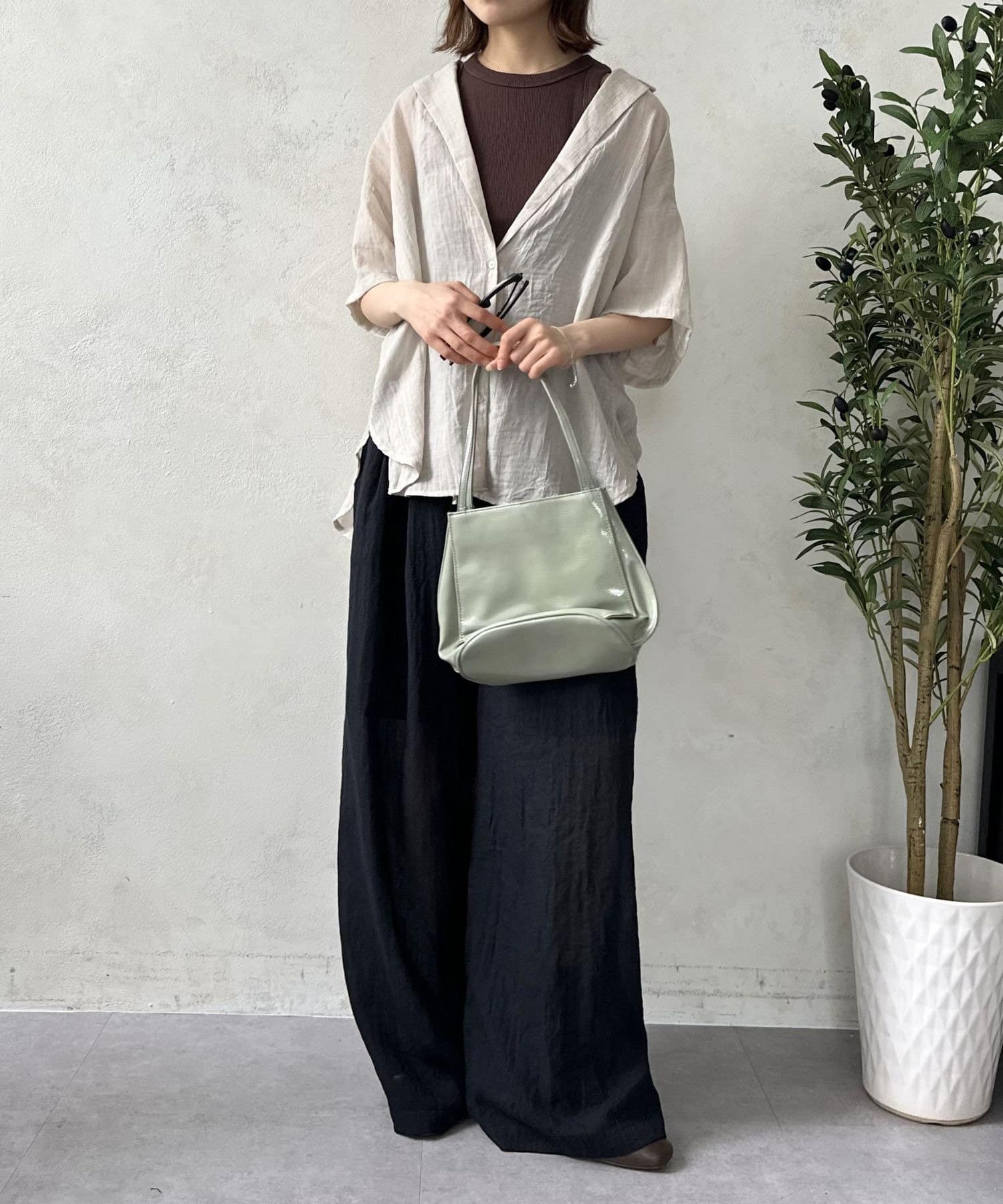 インナーにシンプルなキャミソールやタンクトップを合わせれば、ヘルシーな肌見せが叶うきれいめカジュアルスタイルに。
