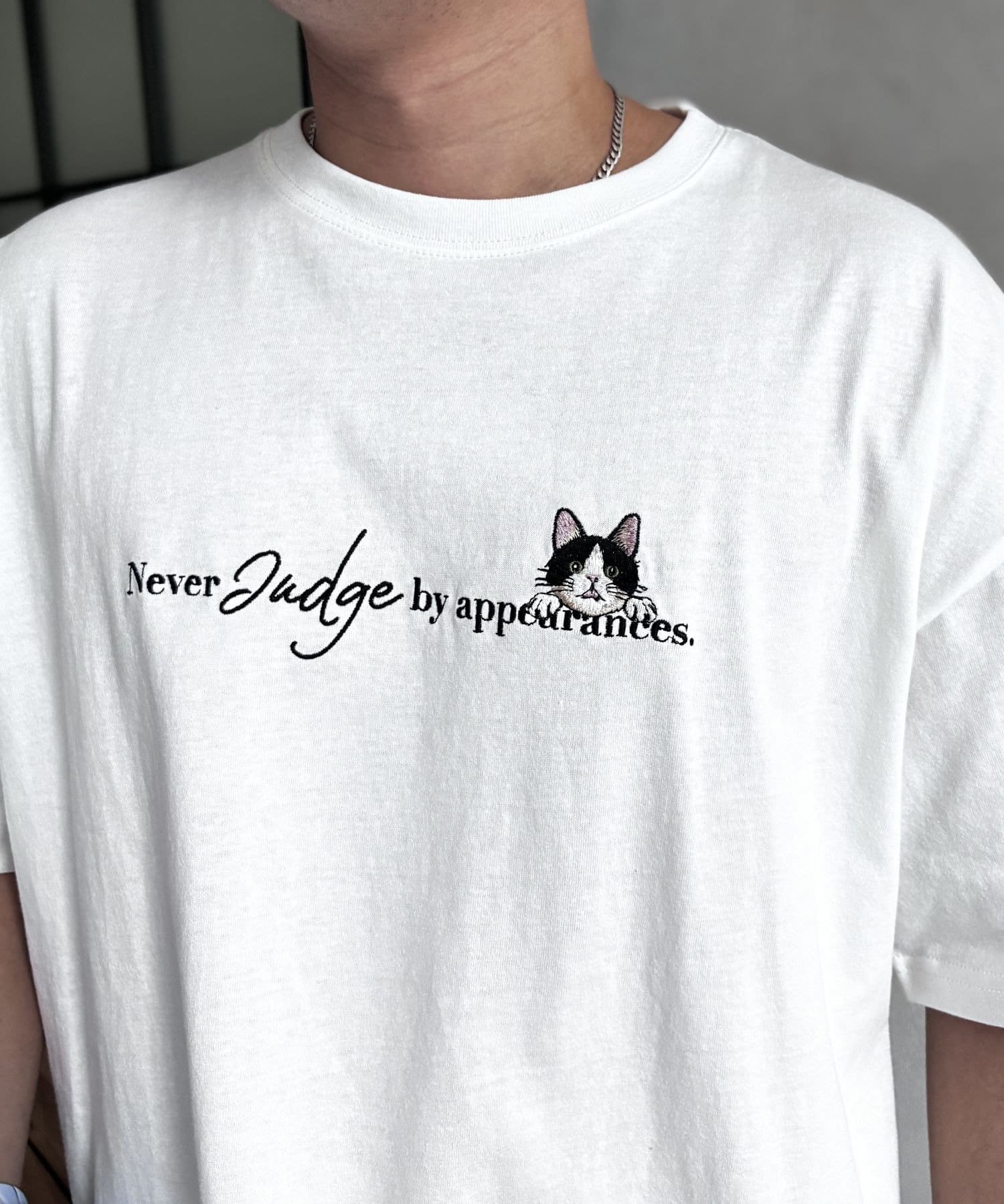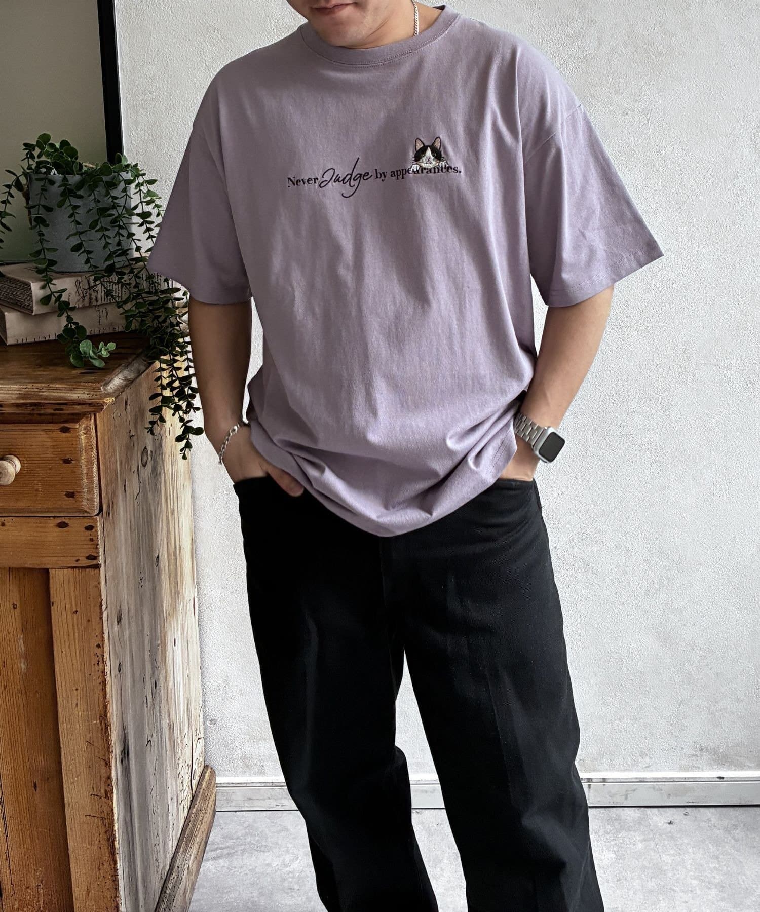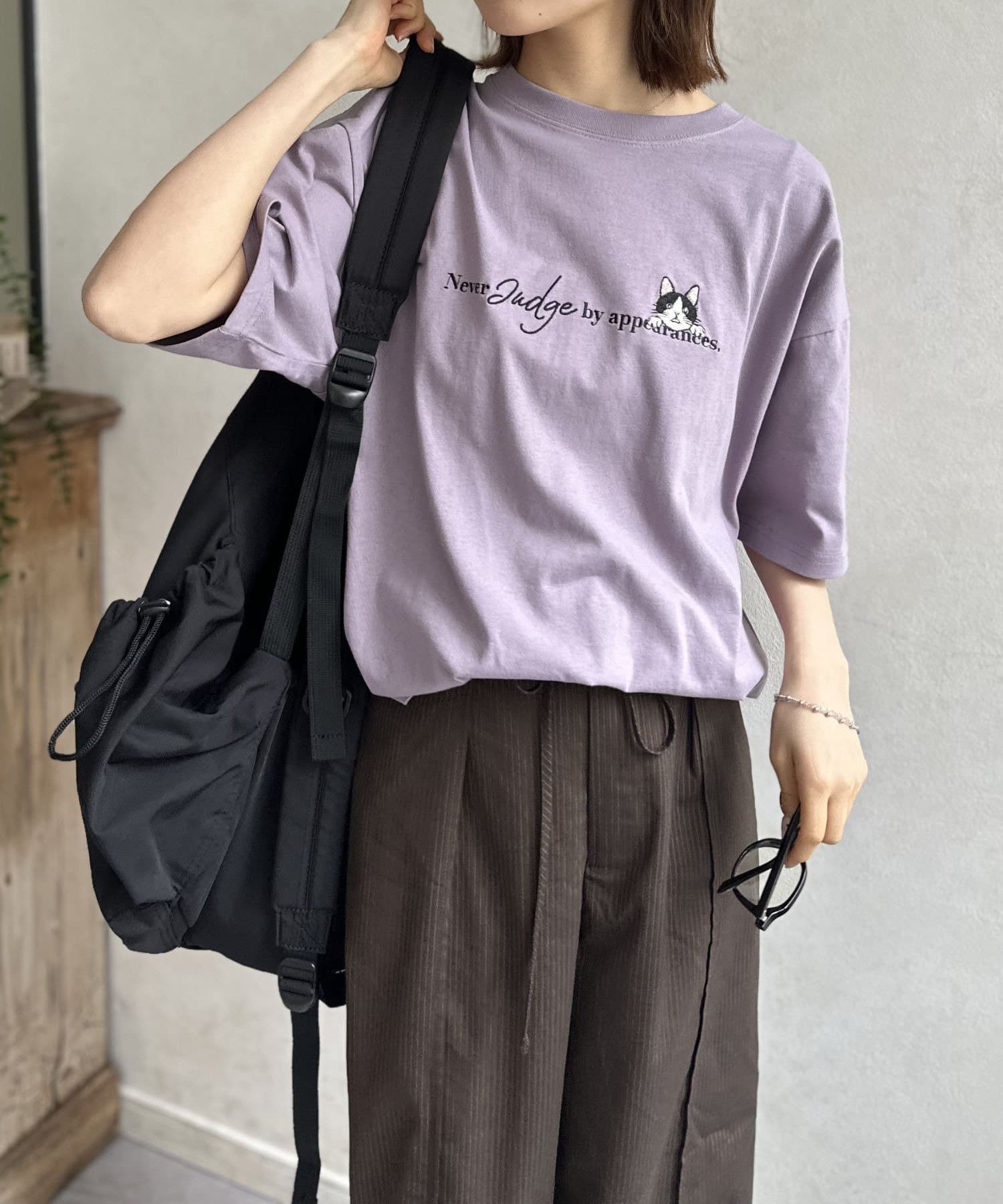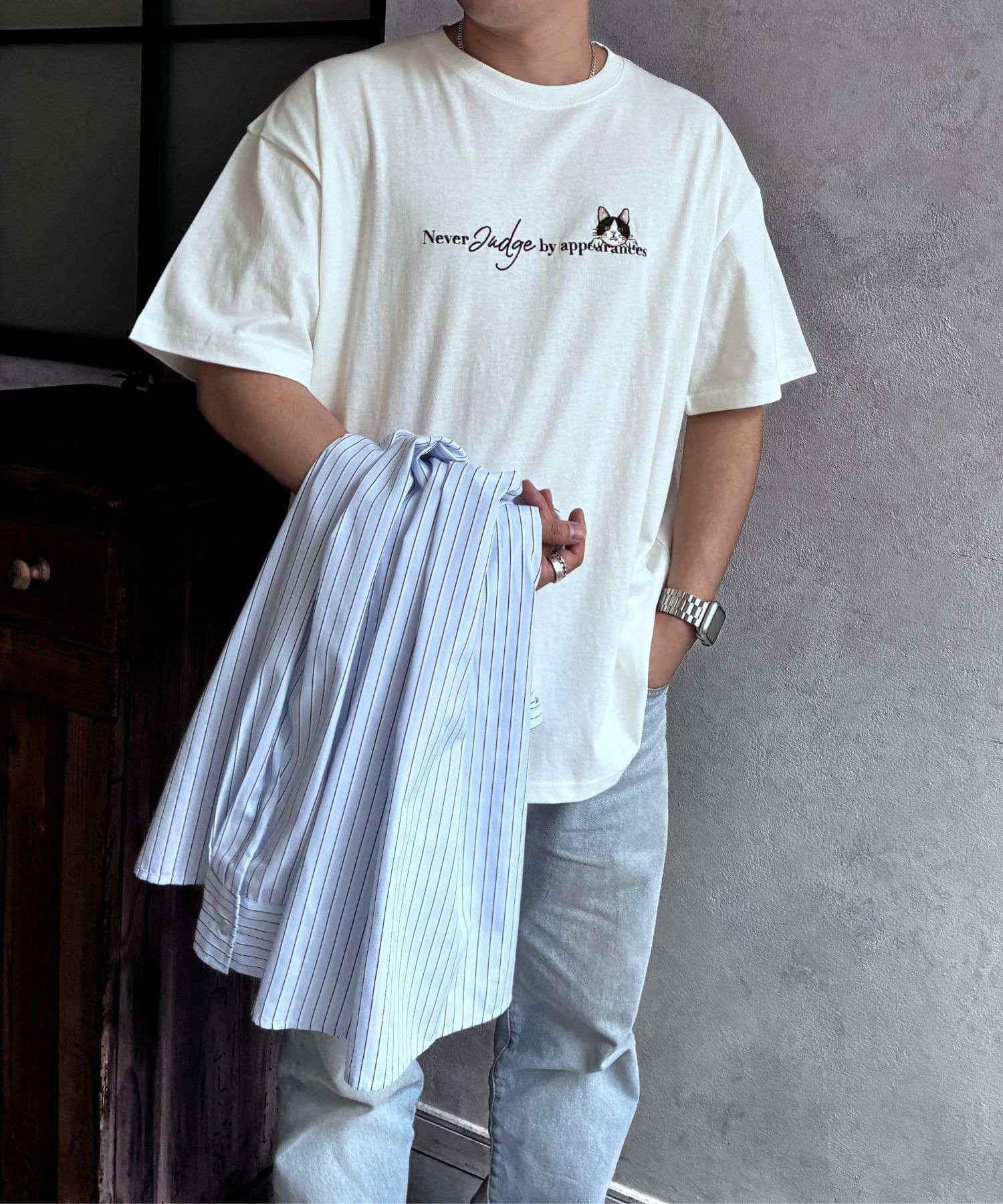 ジャケットやシャツ、カーディガンのインナーとして着用すれば、胸元の猫ちゃんがちらりと覗いてコーディネートの可愛いアクセントになってくれます。