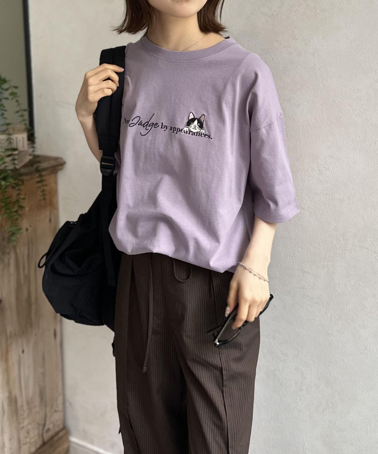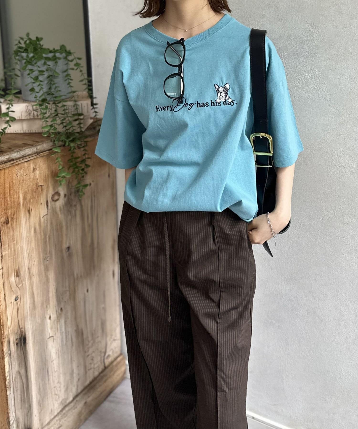 TOP > LOCUST > レディース > トップス > Tシャツ/カットソー > 【ユニセックス】【接触冷感】DOG&CAT 刺繍T