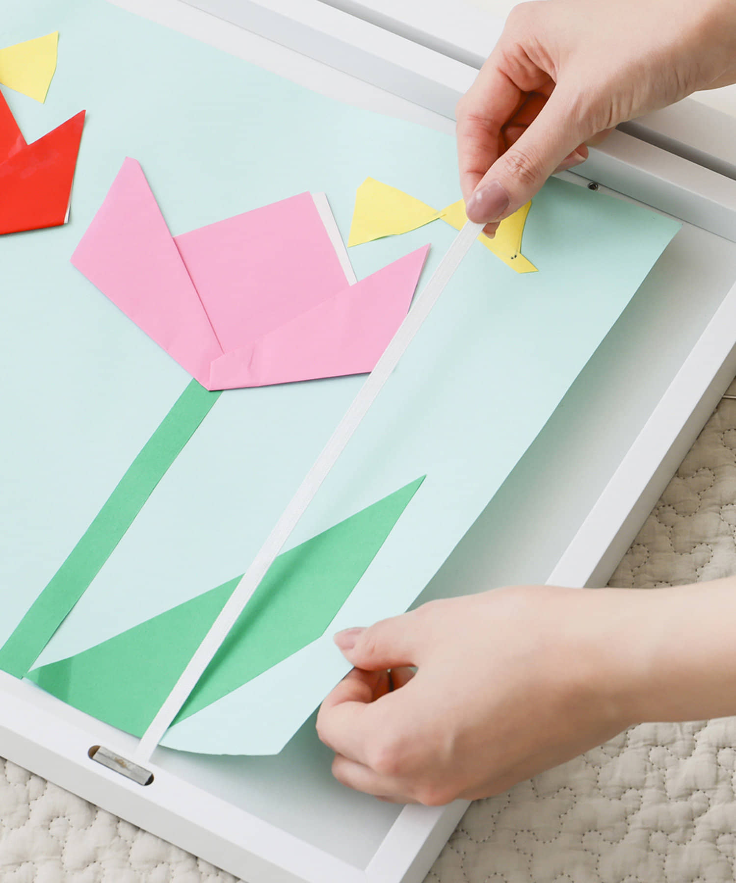 白色の枠のため作品の邪魔することなく飾り付けができています。