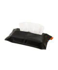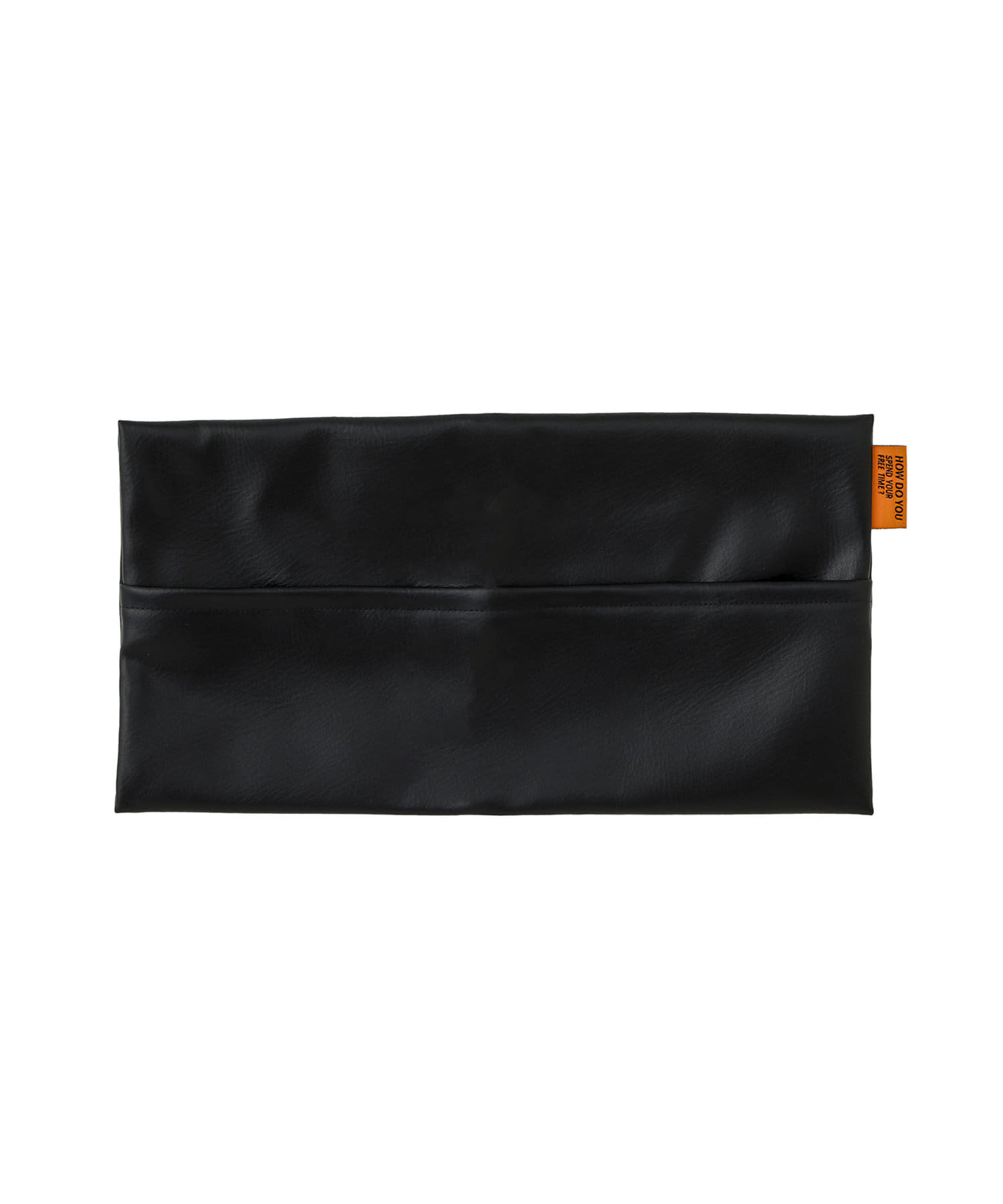 ●落ち着いたカラーにオレンジのタグがよく映えるティッシュケース。